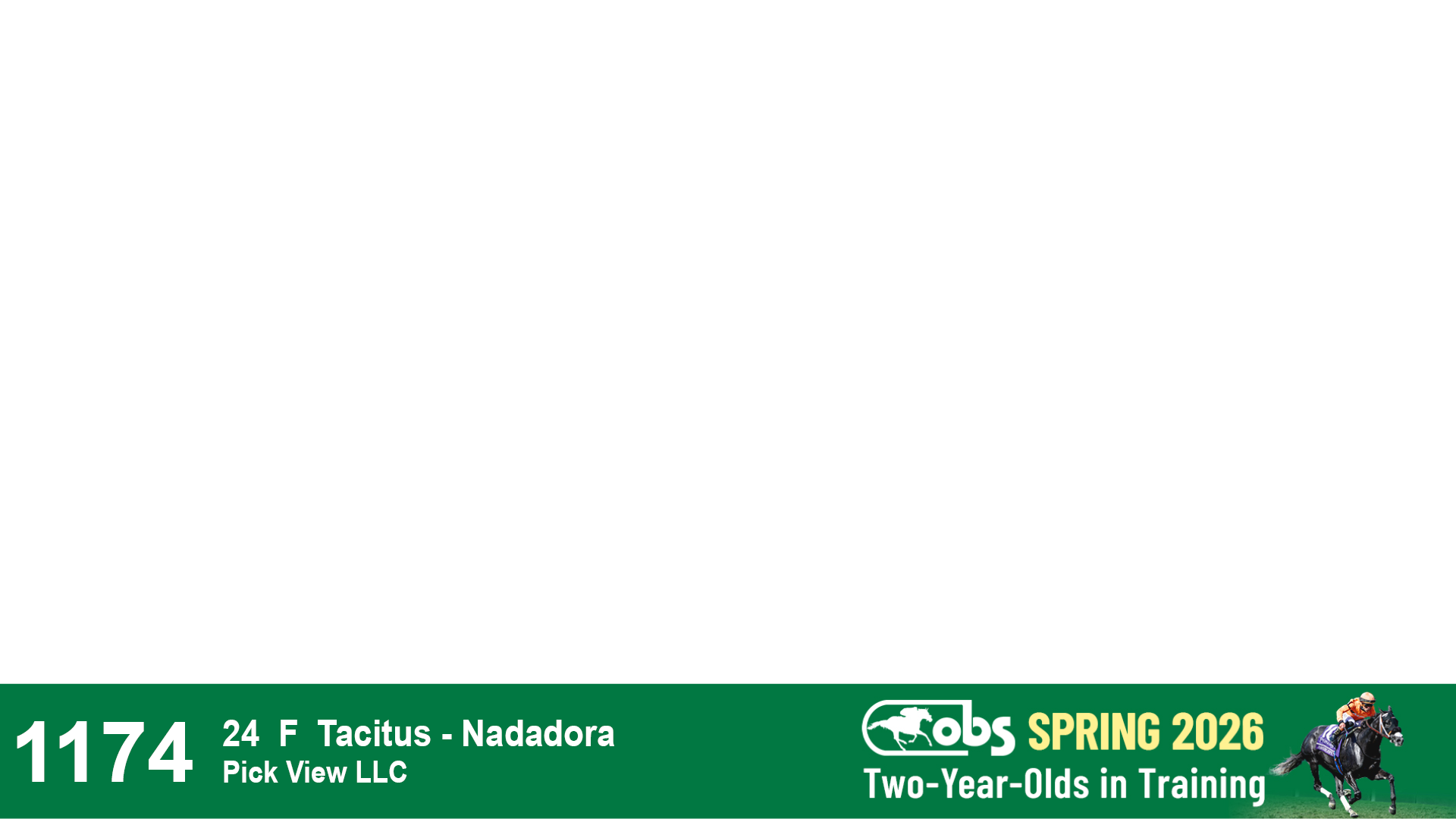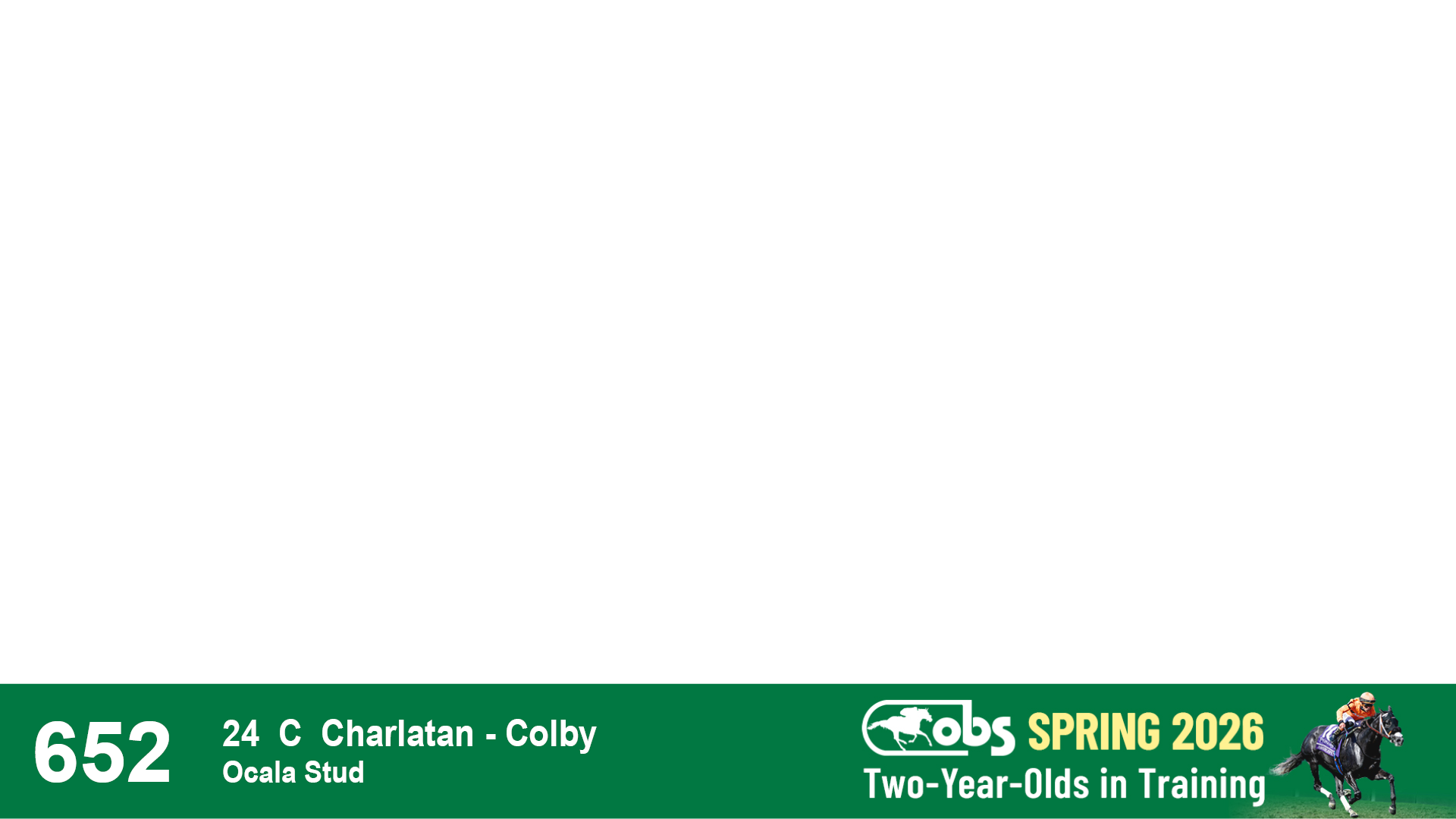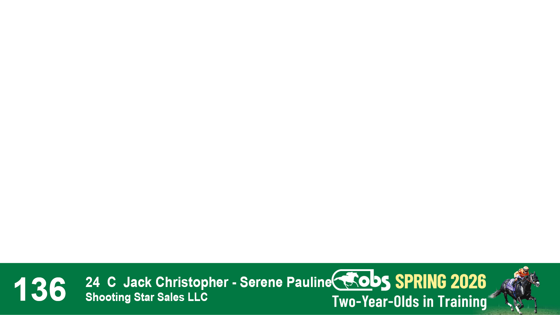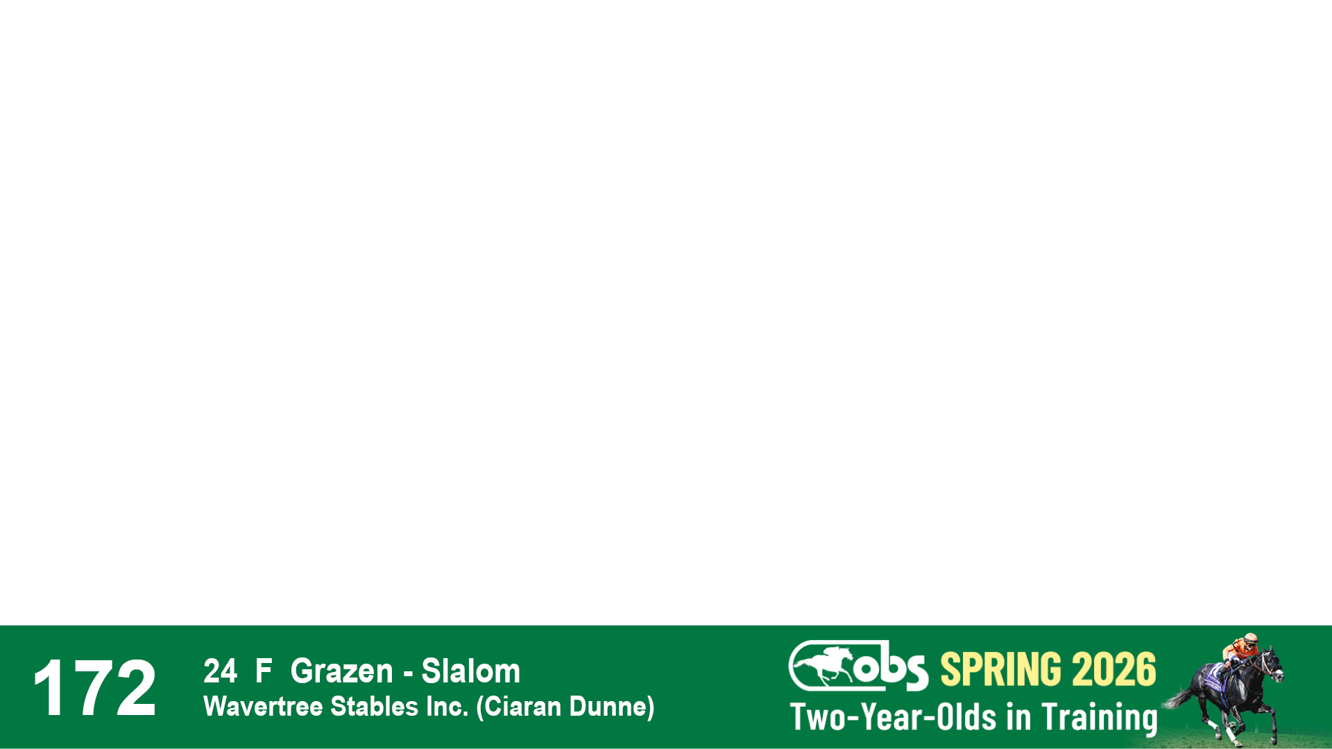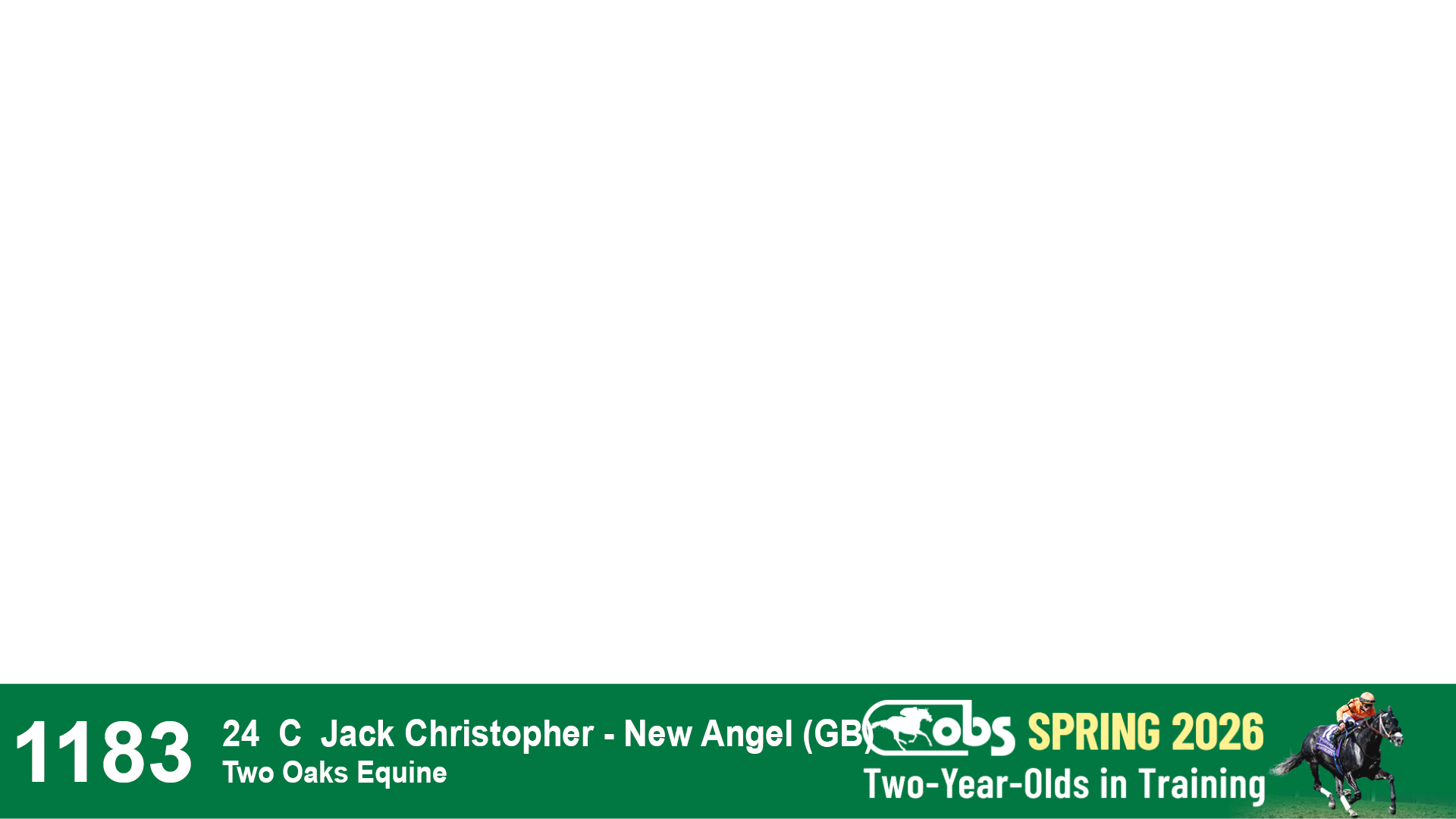 | 1183 | Slate | Lower-Third | 3/25/2024 | C | Jack Christopher | New Angel (GB) | Two Oaks Equine, Agent | 1186 | 589 | 770 | 1174 | |