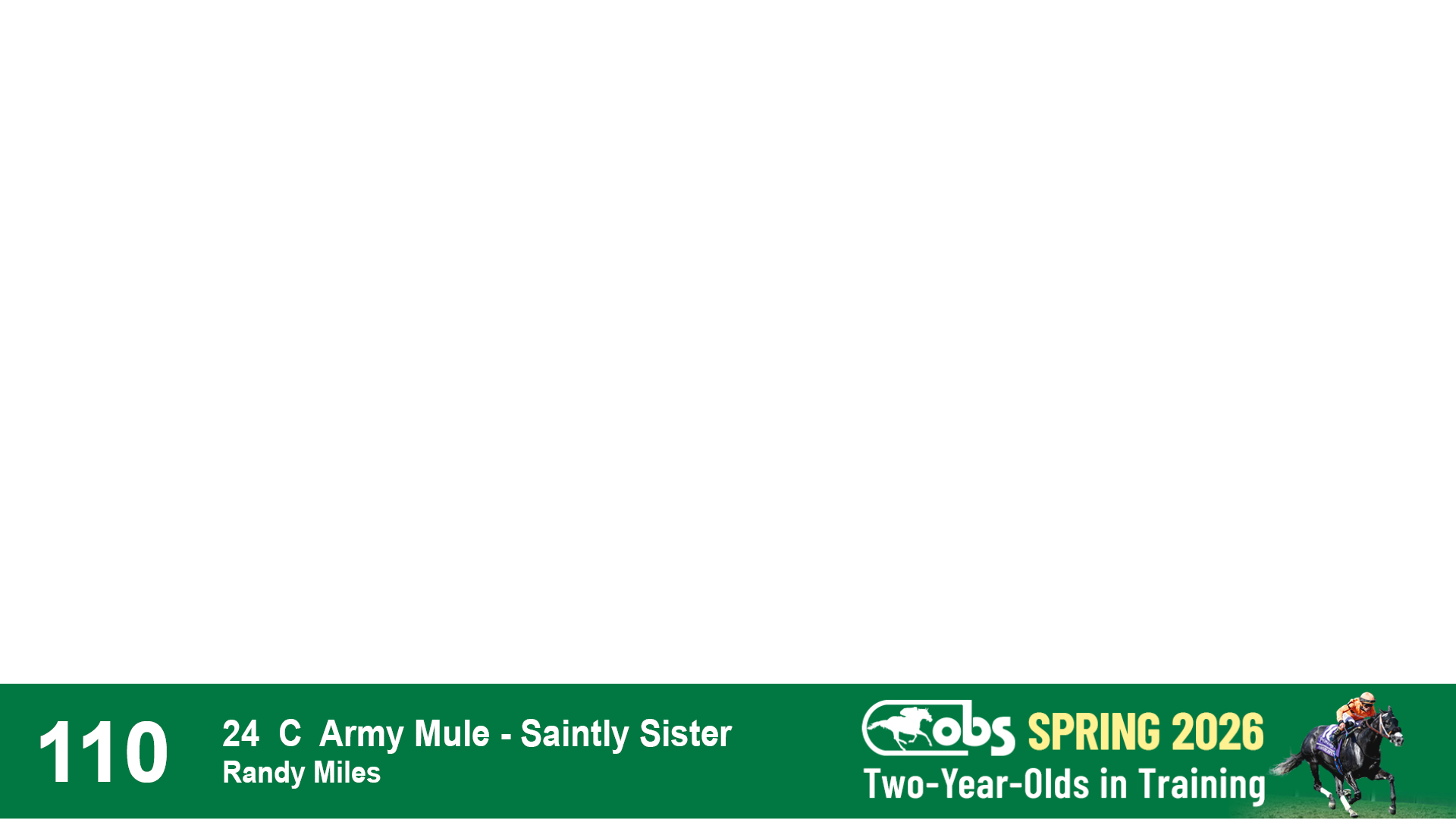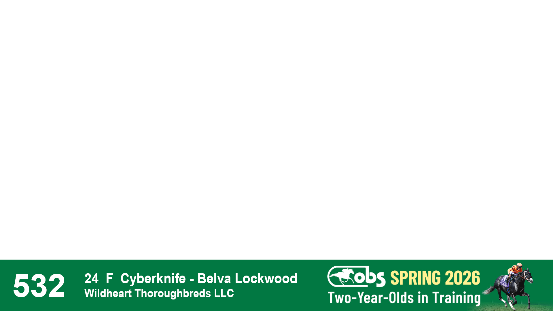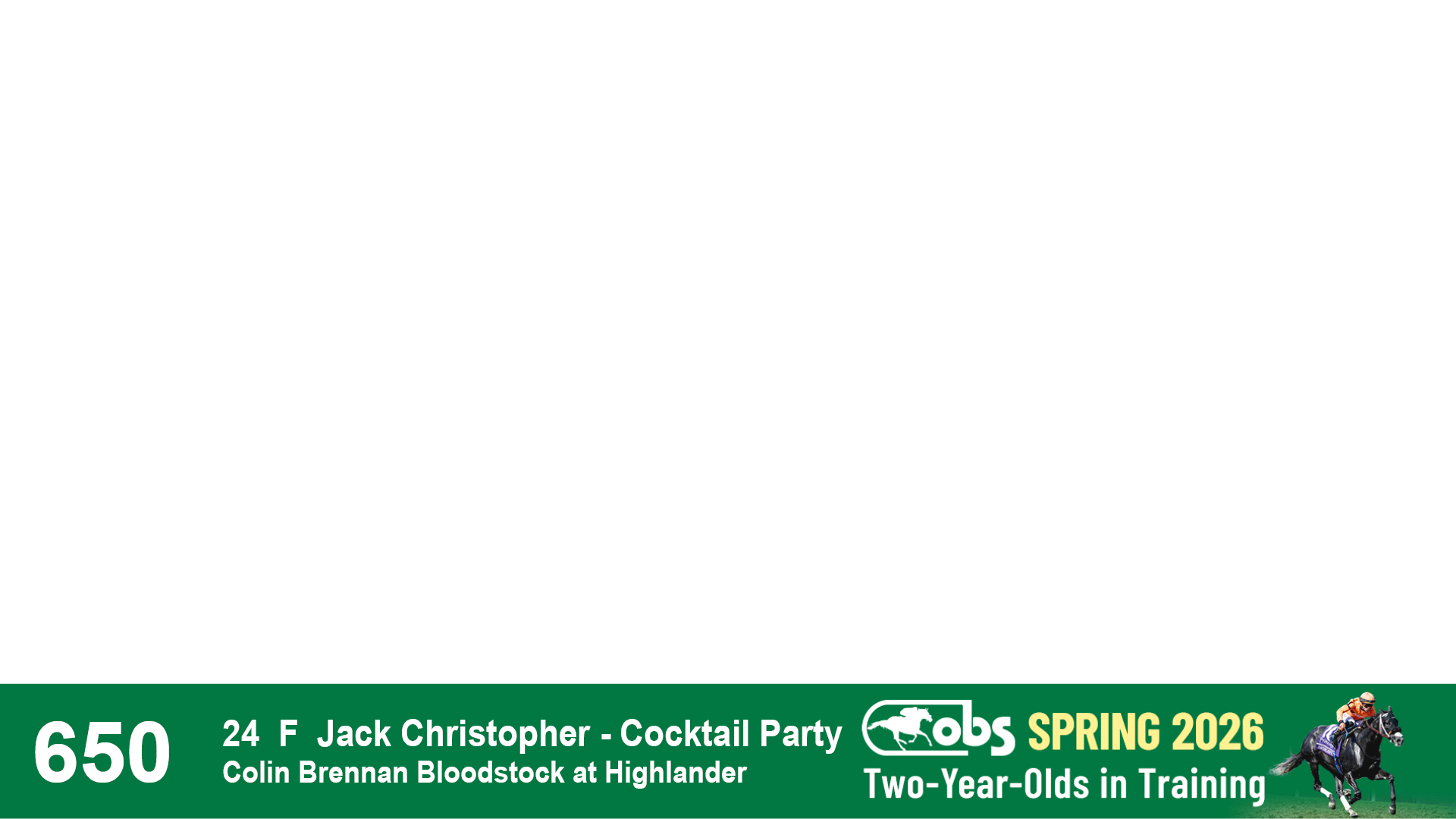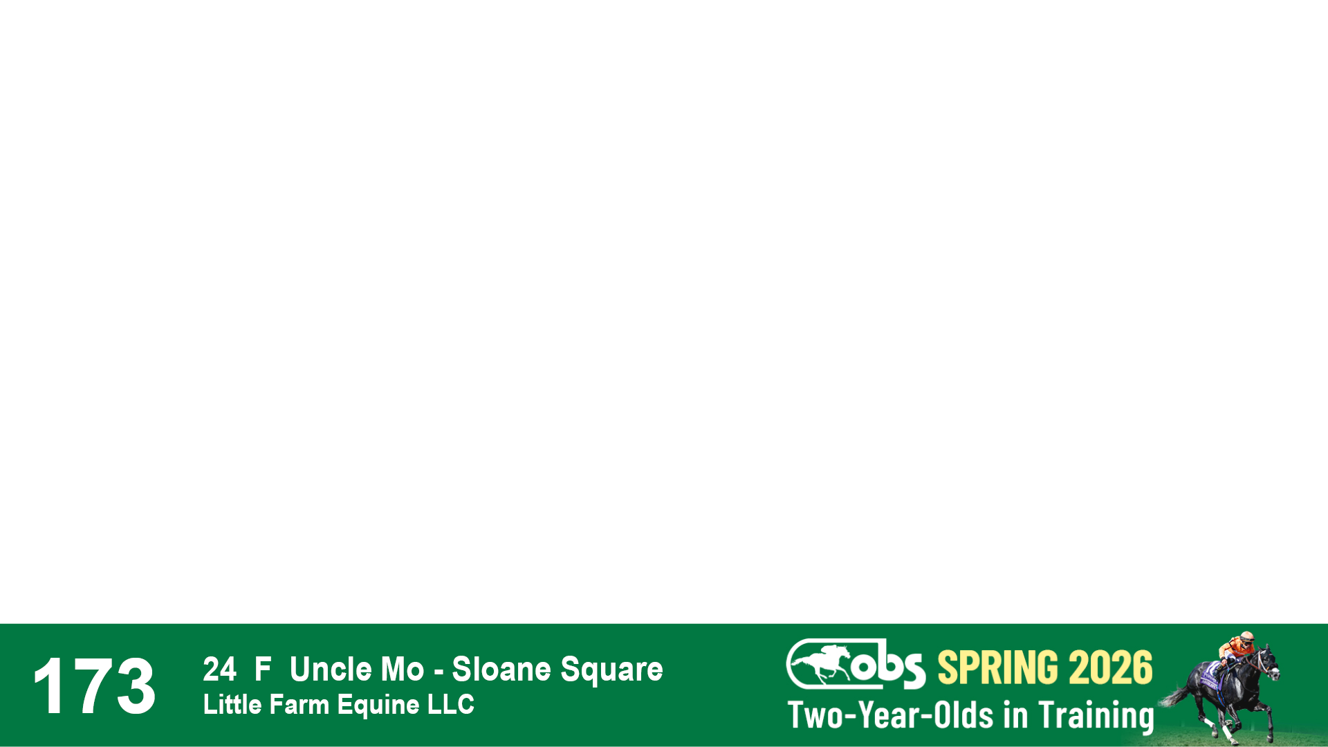 | 1183 | Slate | Lower-Third | 3/25/2024 | C | Jack Christopher | New Angel (GB) | Two Oaks Equine, Agent | 1186 | 589 | 770 | 1174 | |