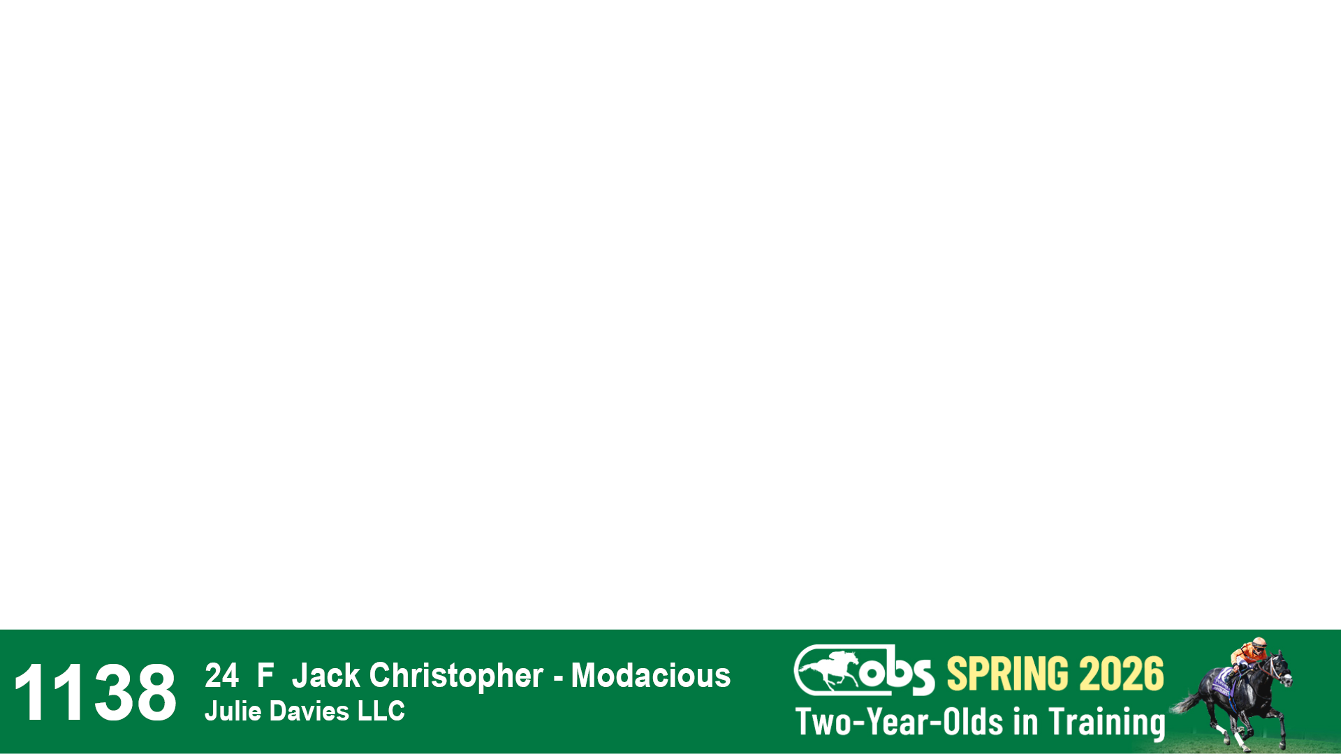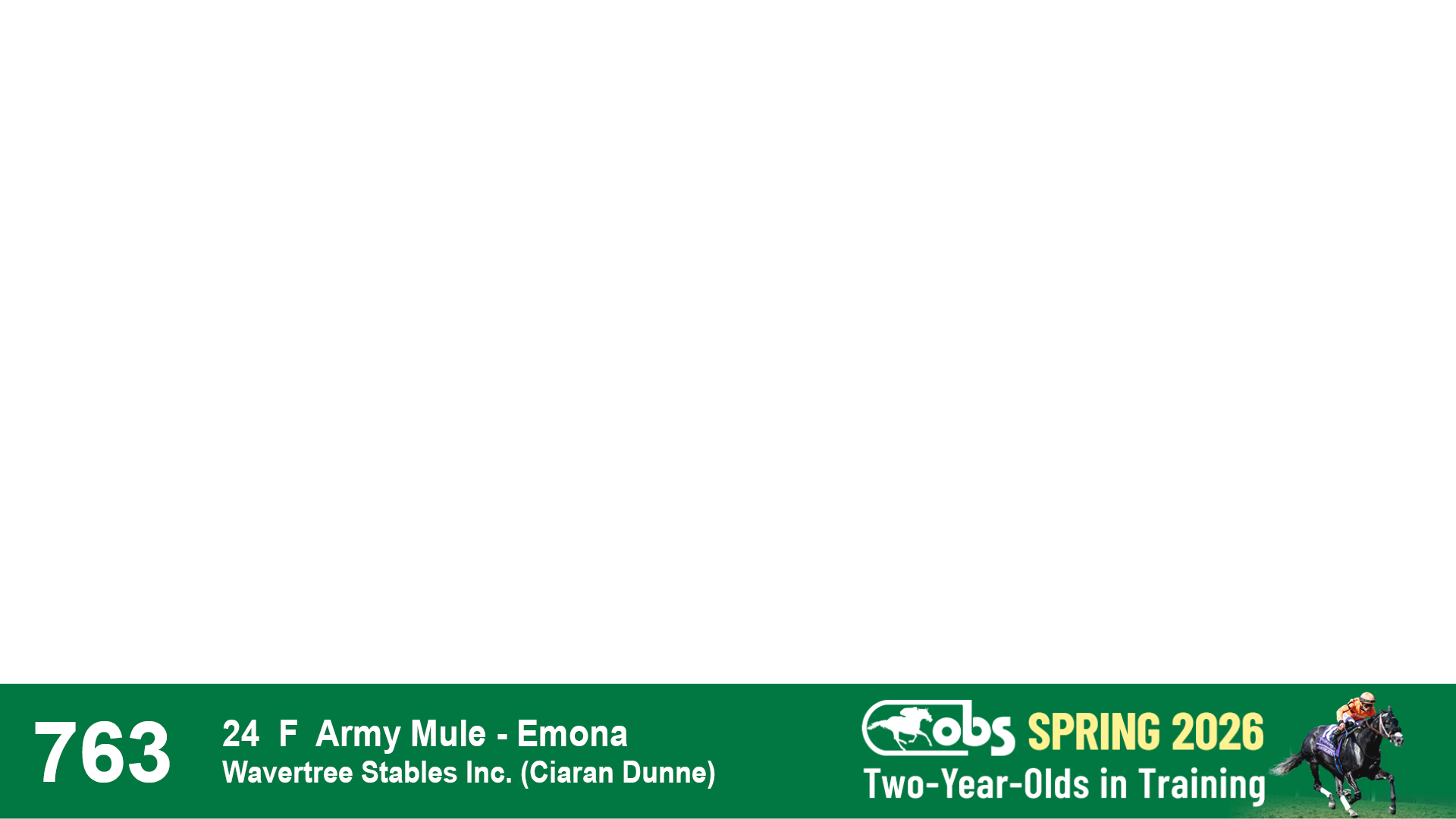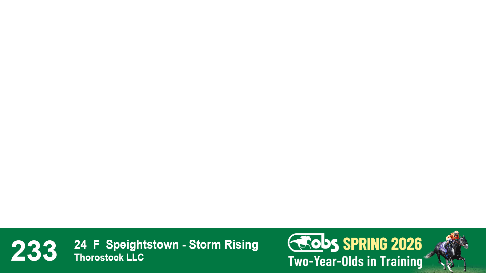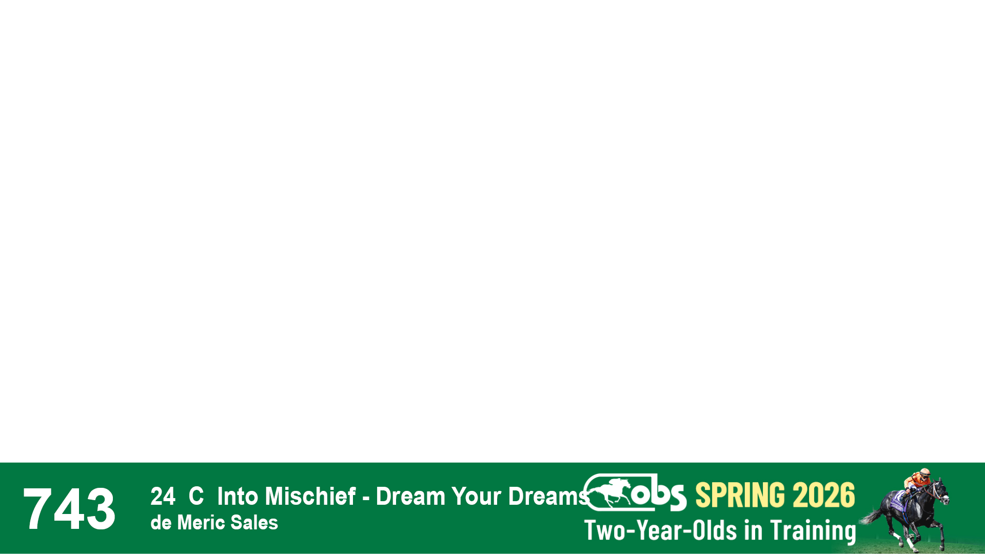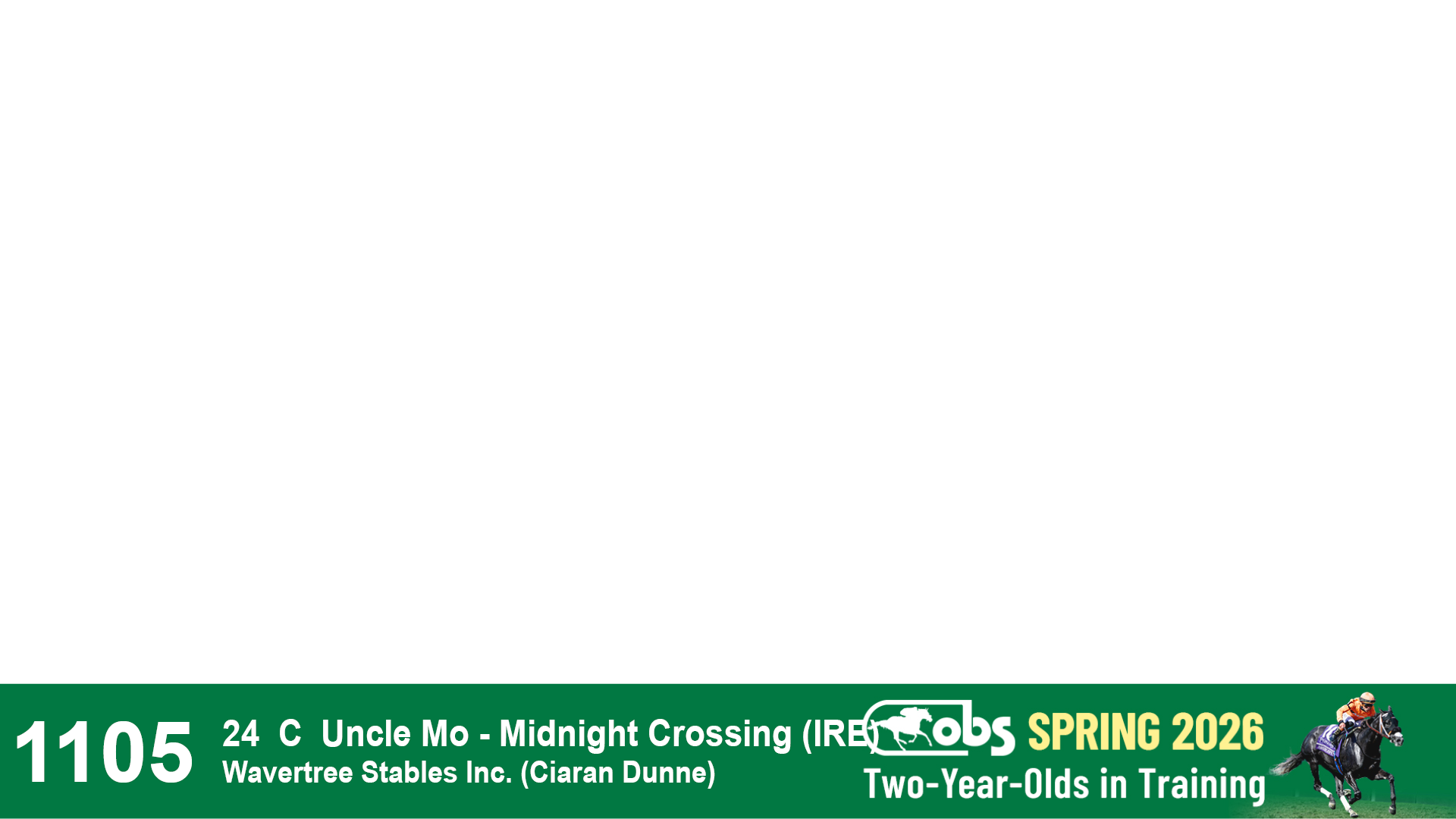 | 1183 | Slate | Lower-Third | 3/25/2024 | C | Jack Christopher | New Angel (GB) | Two Oaks Equine, Agent | 1186 | 589 | 770 | 1174 | |