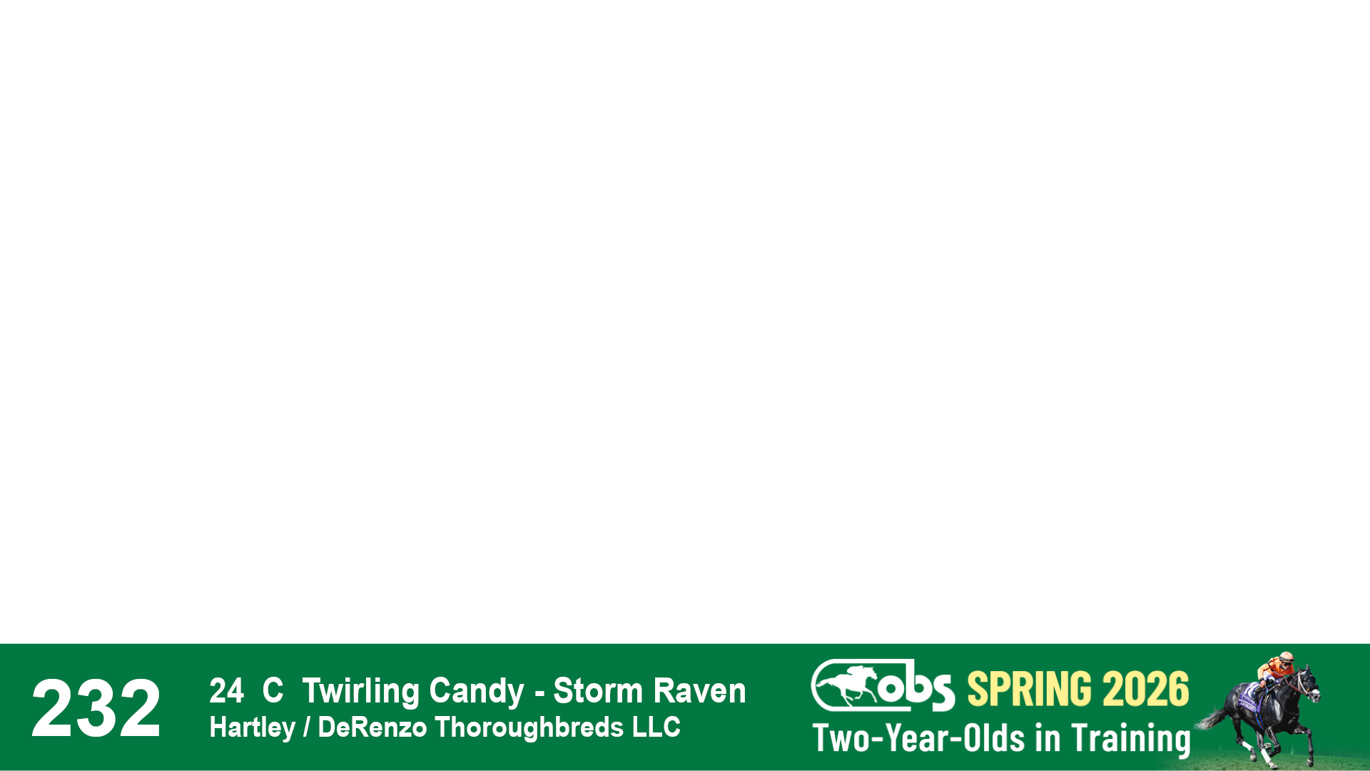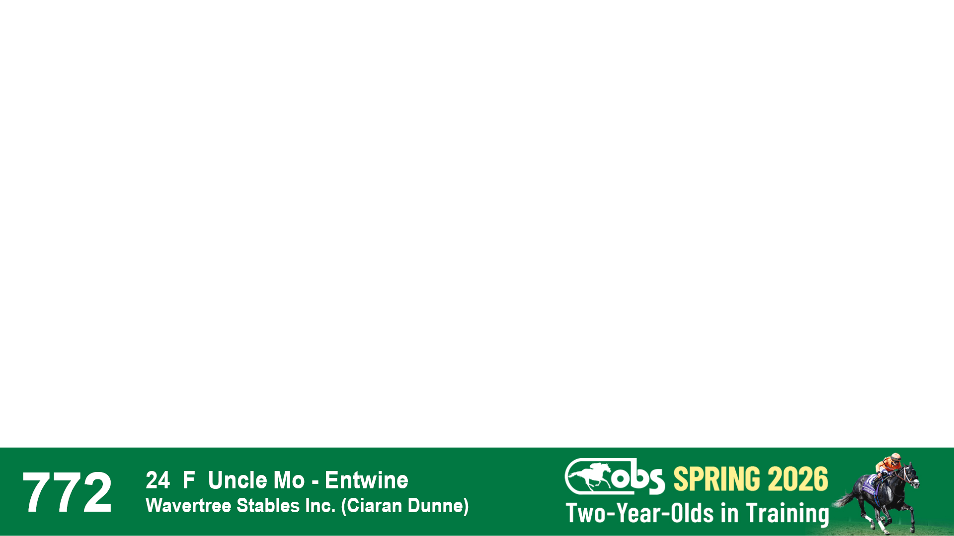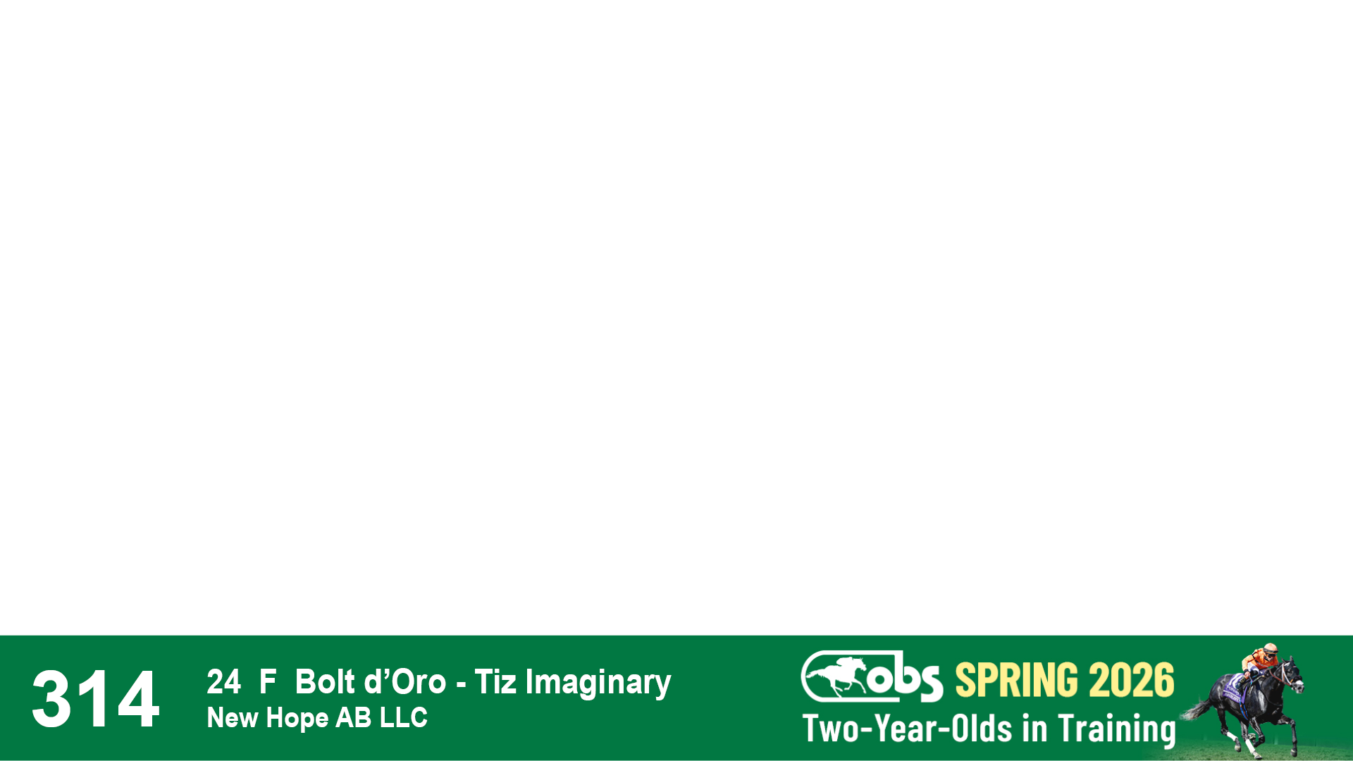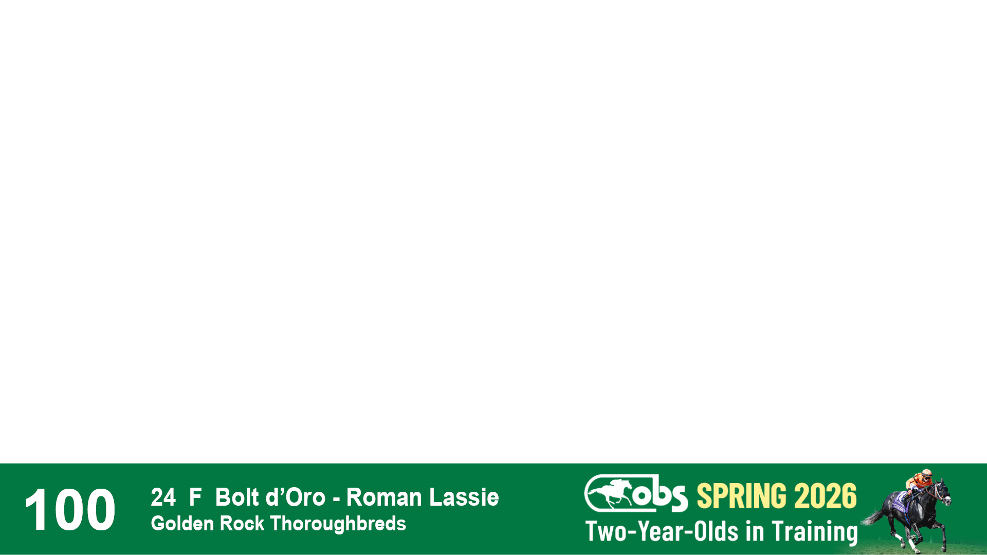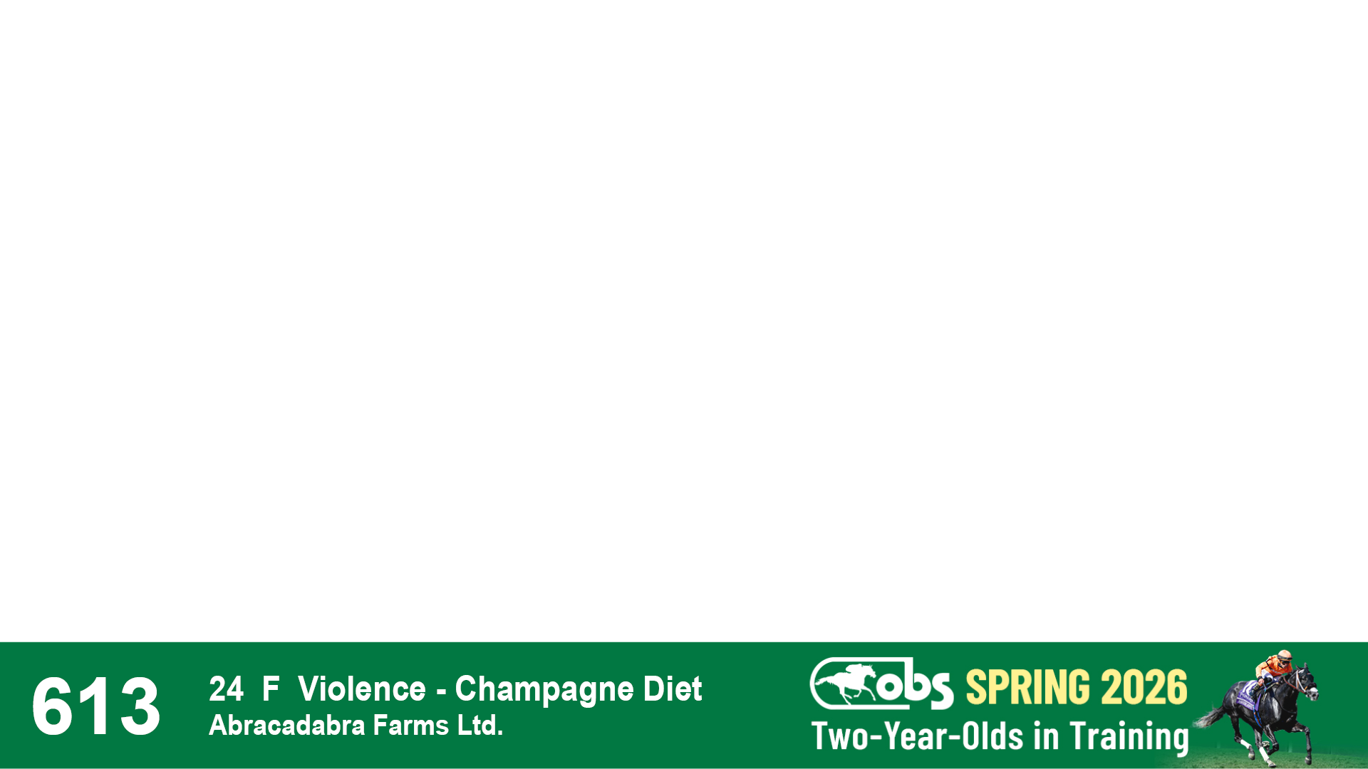 | 1183 | Slate | Lower-Third | 3/25/2024 | C | Jack Christopher | New Angel (GB) | Two Oaks Equine, Agent | 1186 | 589 | 770 | 1174 | |
