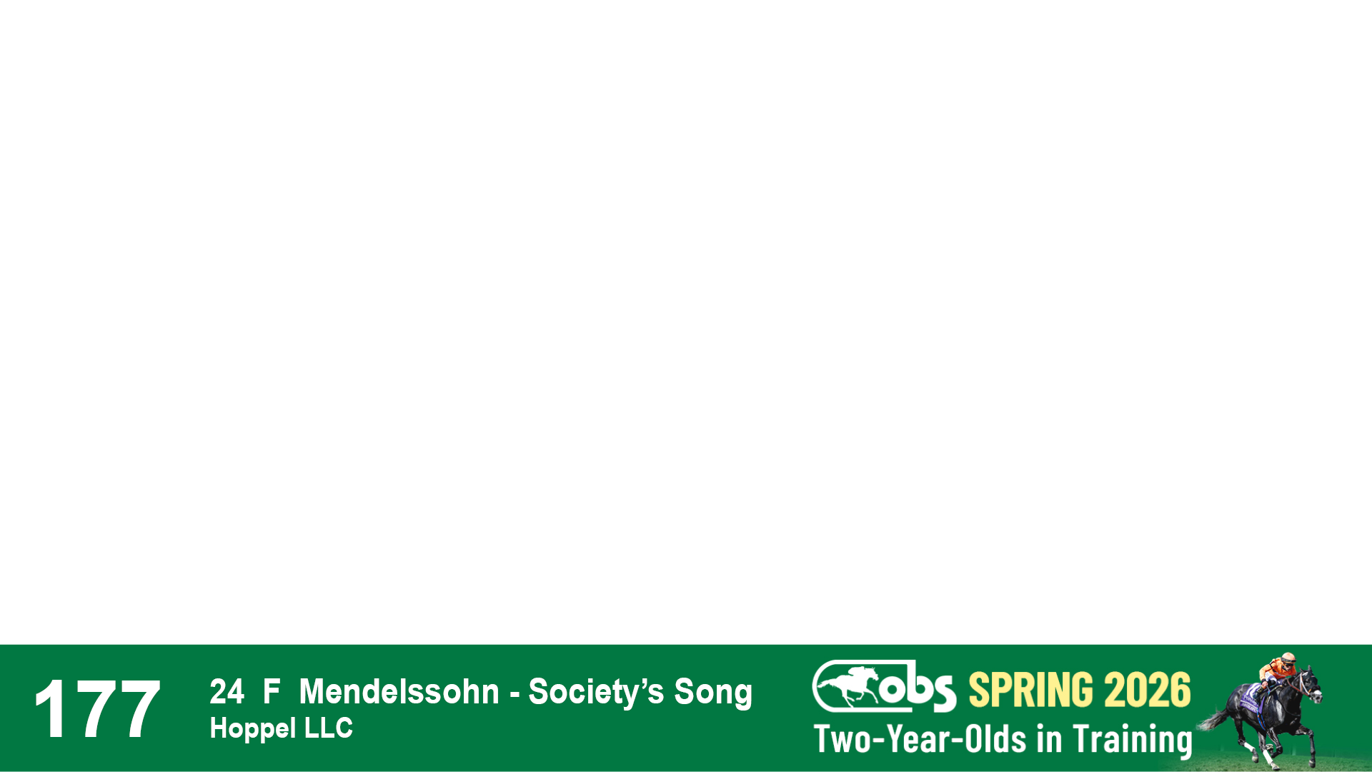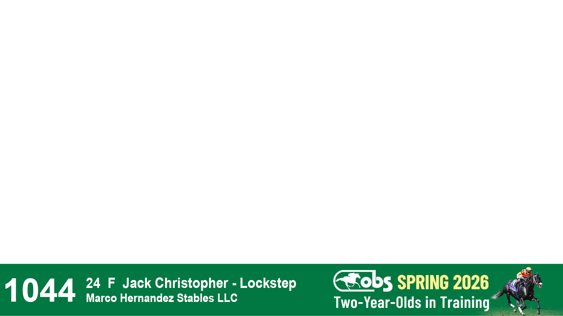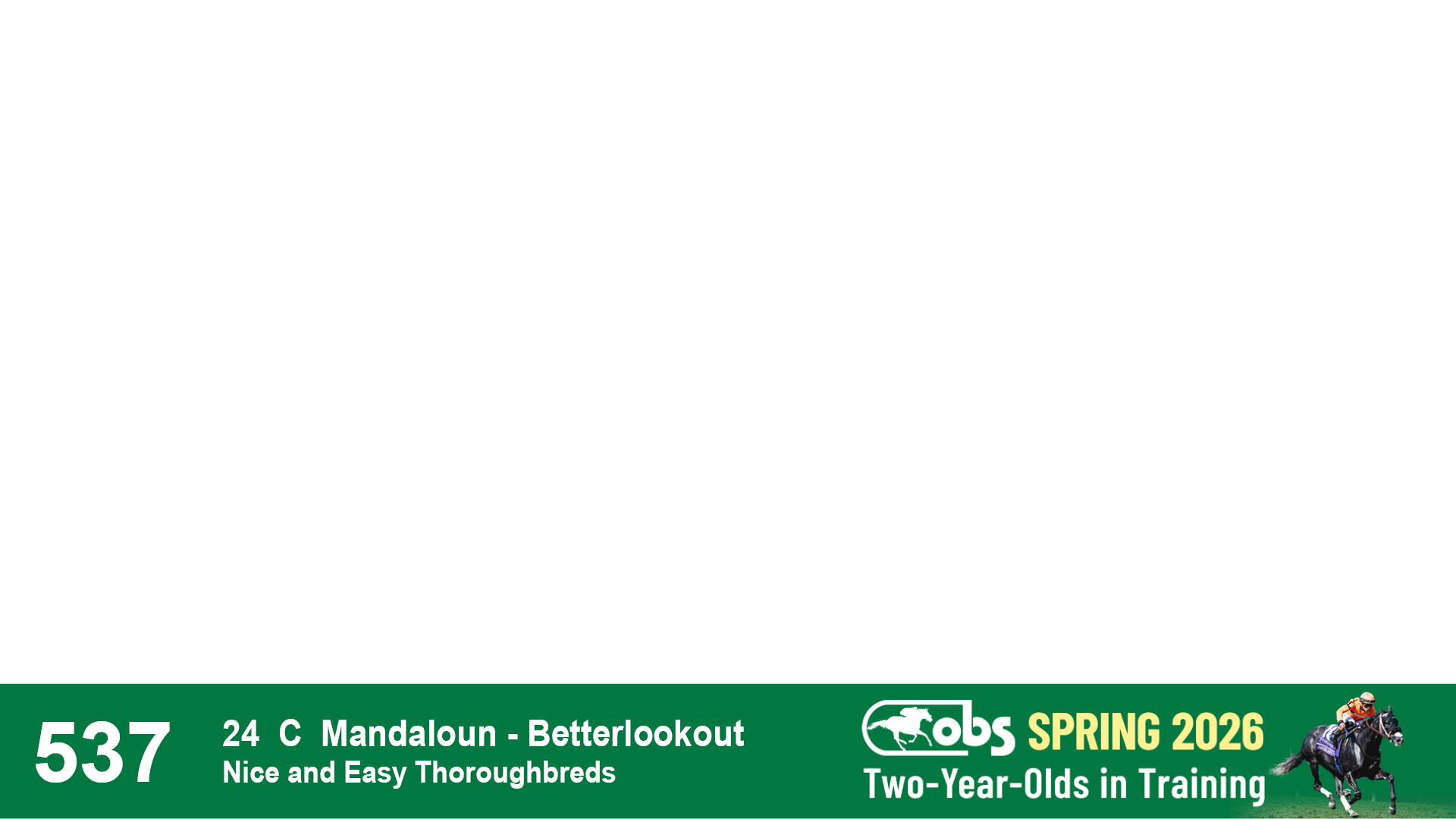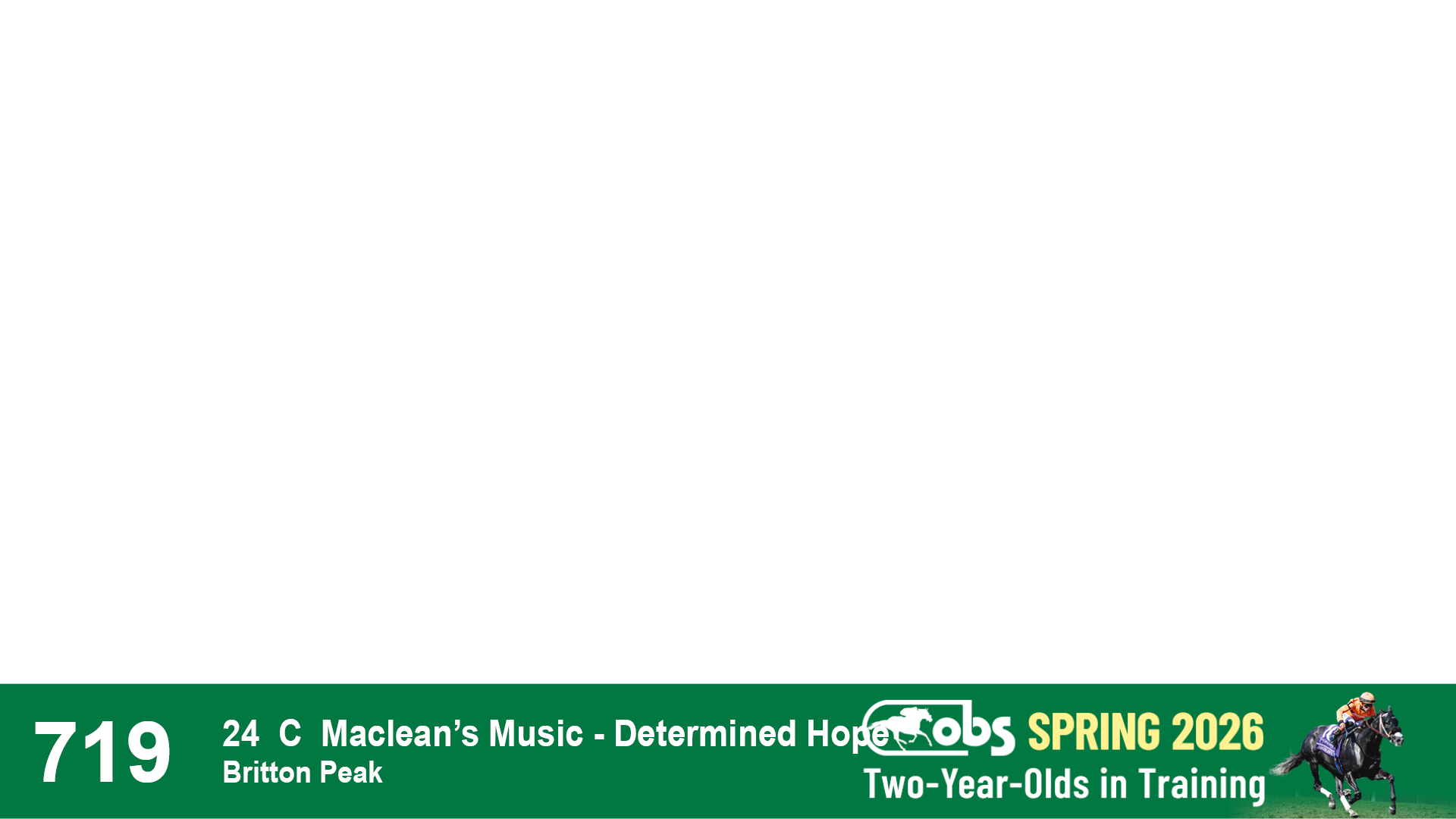 | 1183 | Slate | Lower-Third | 3/25/2024 | C | Jack Christopher | New Angel (GB) | Two Oaks Equine, Agent | 1186 | 589 | 770 | 1174 | |