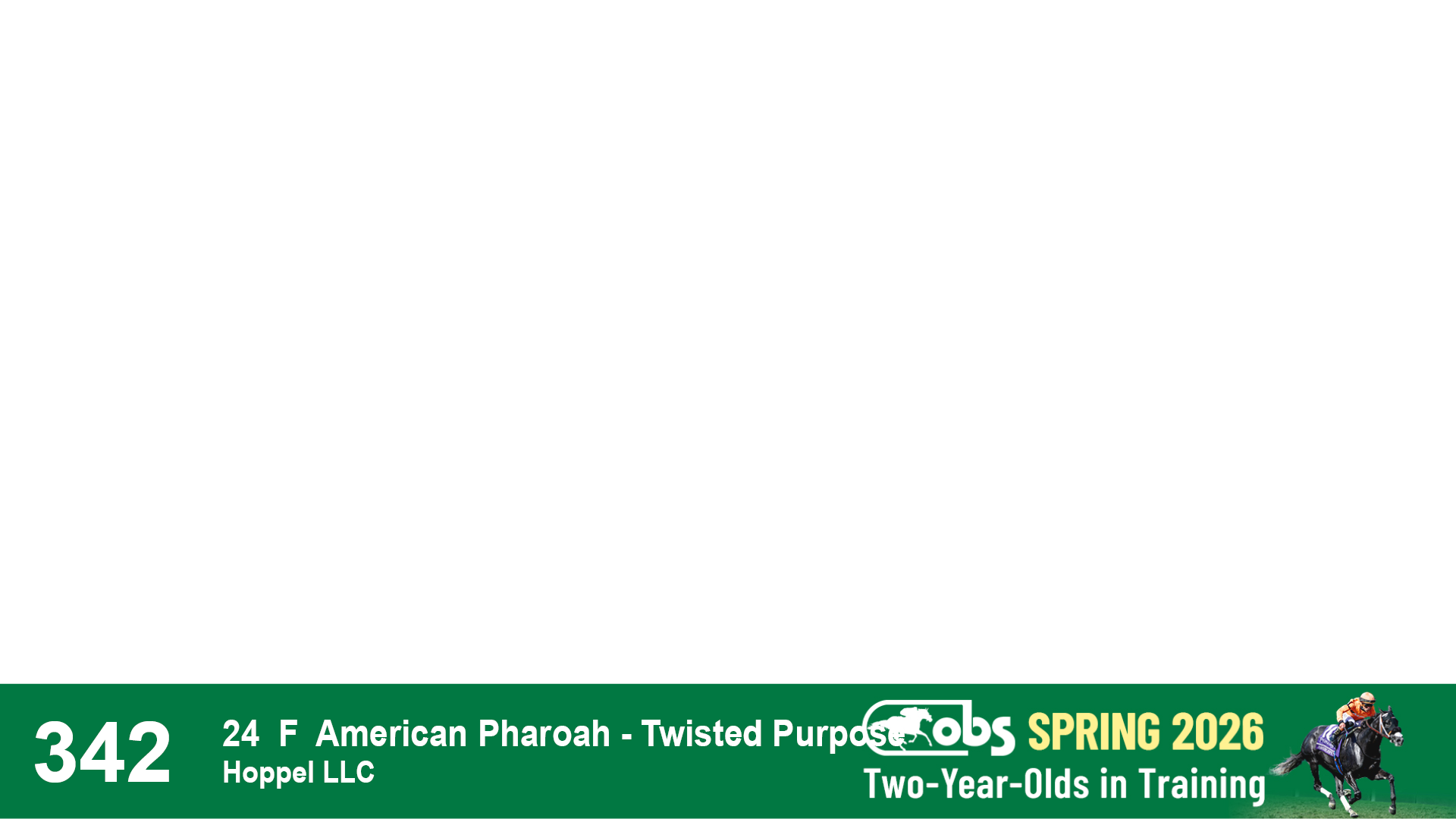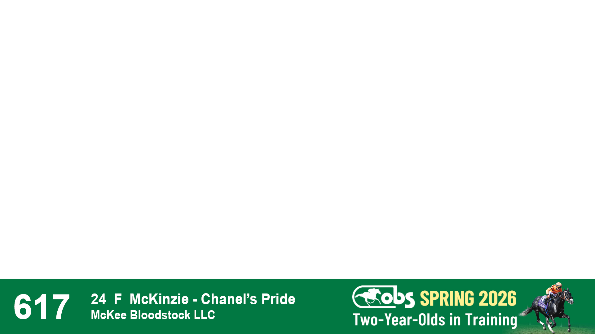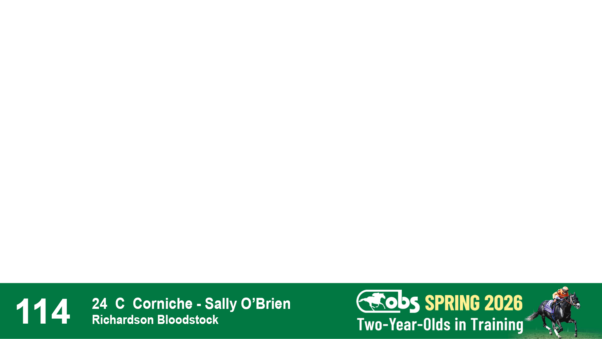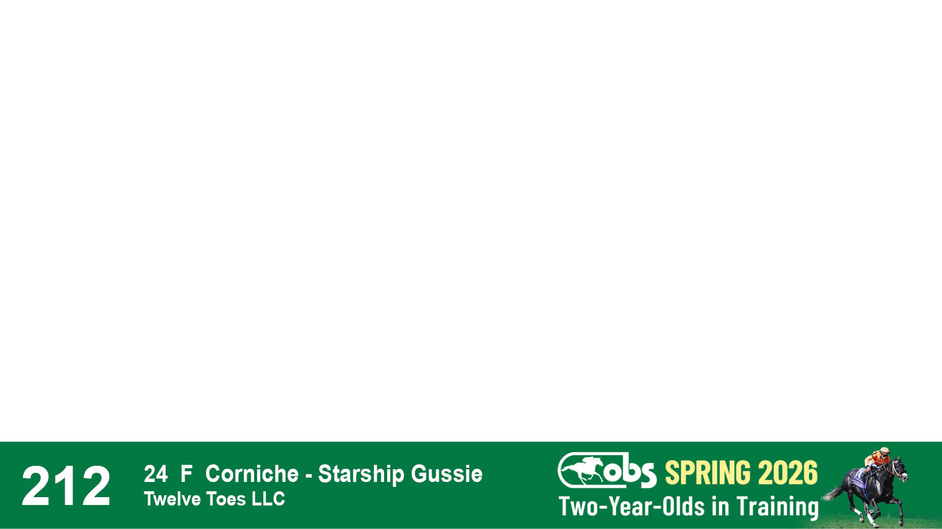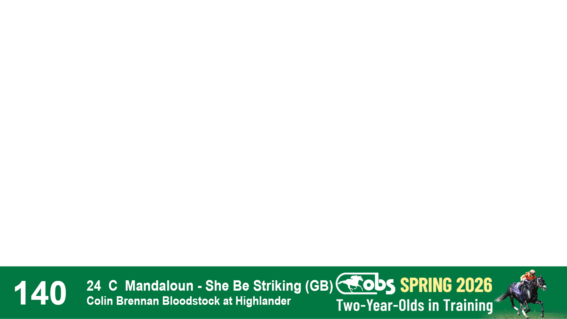 | 1183 | Slate | Lower-Third | 3/25/2024 | C | Jack Christopher | New Angel (GB) | Two Oaks Equine, Agent | 1186 | 589 | 770 | 1174 | |
