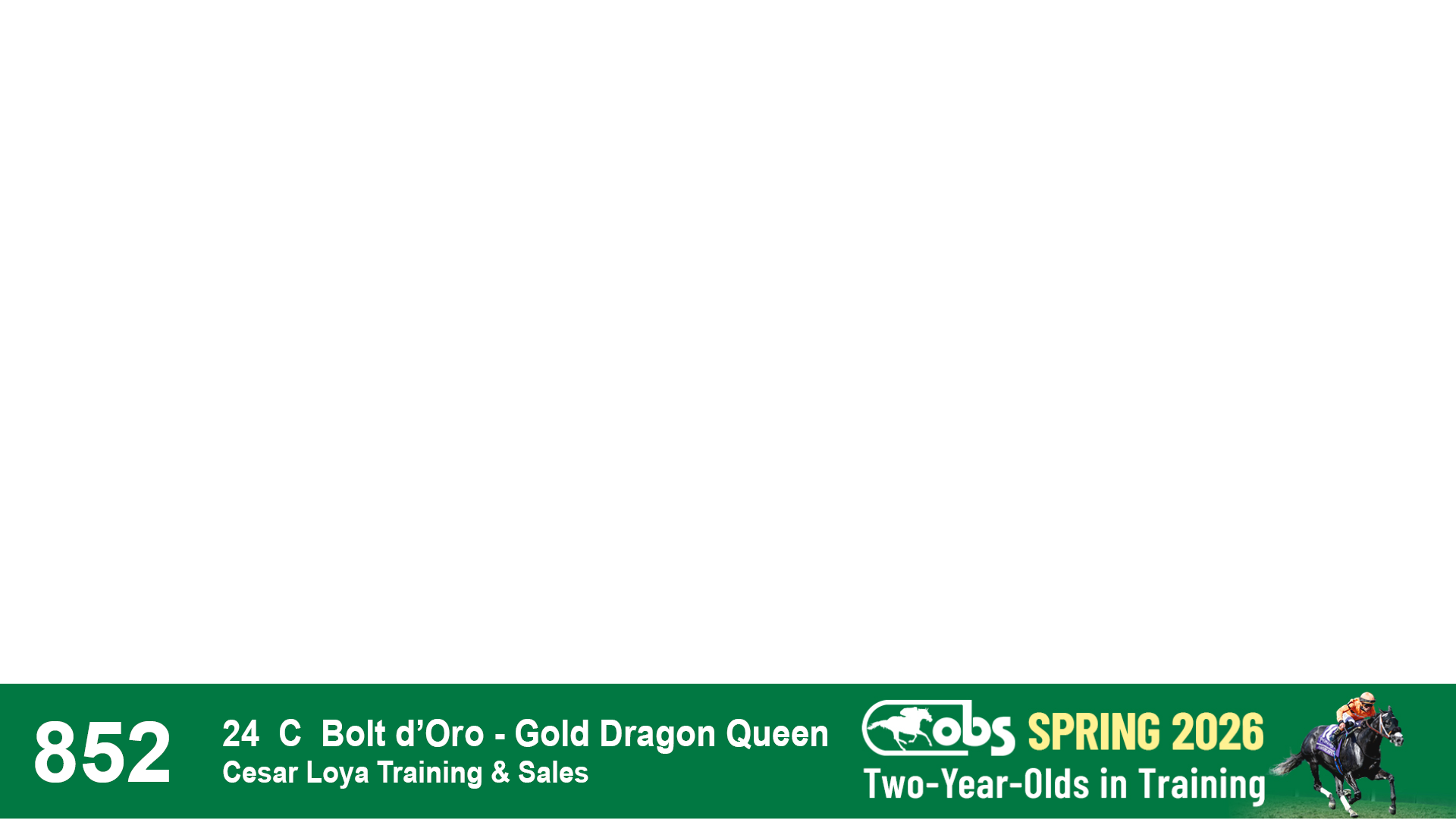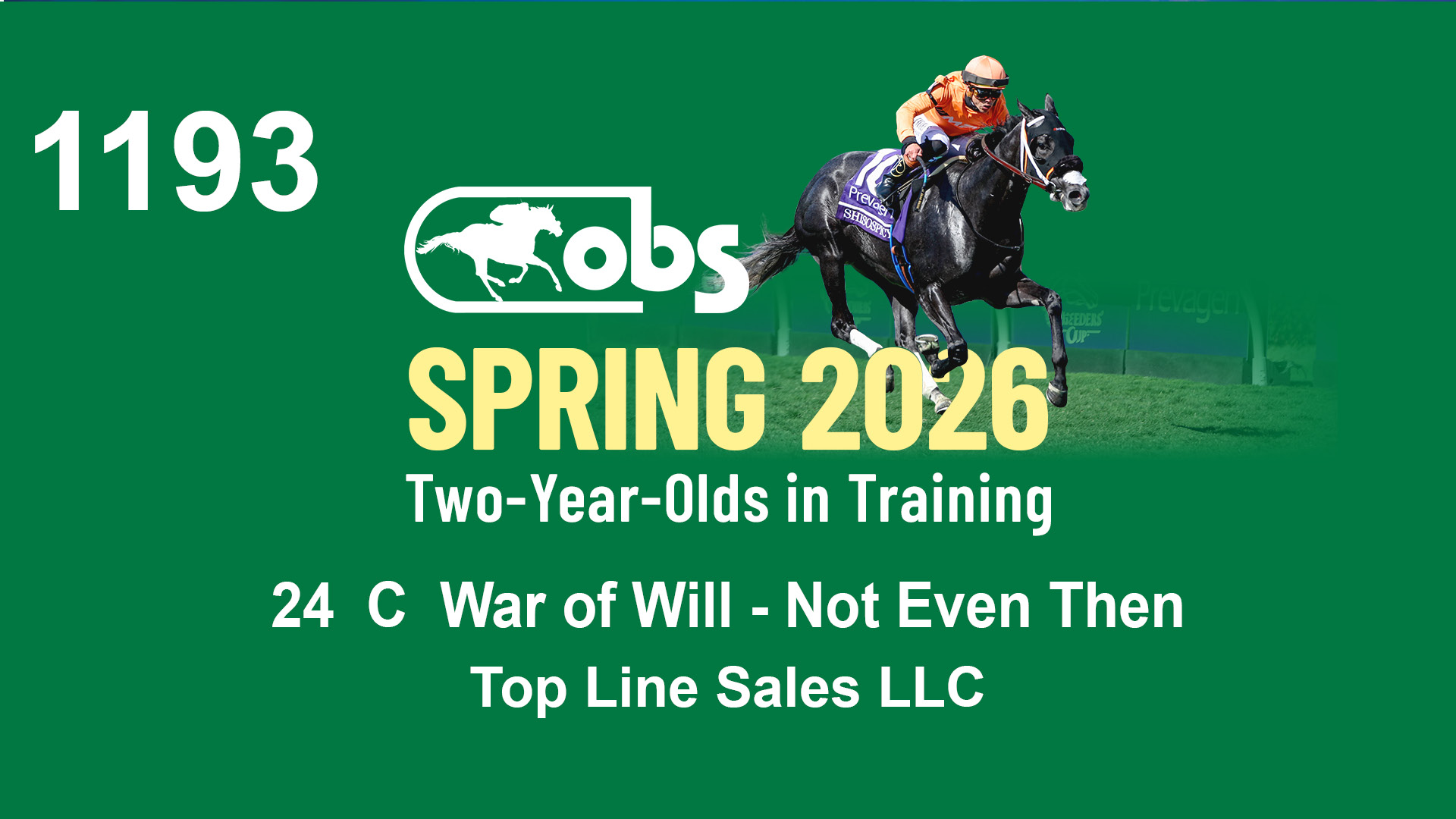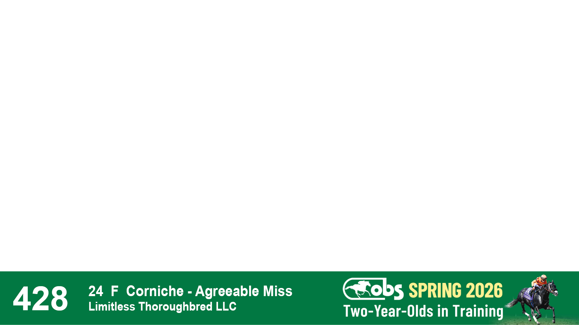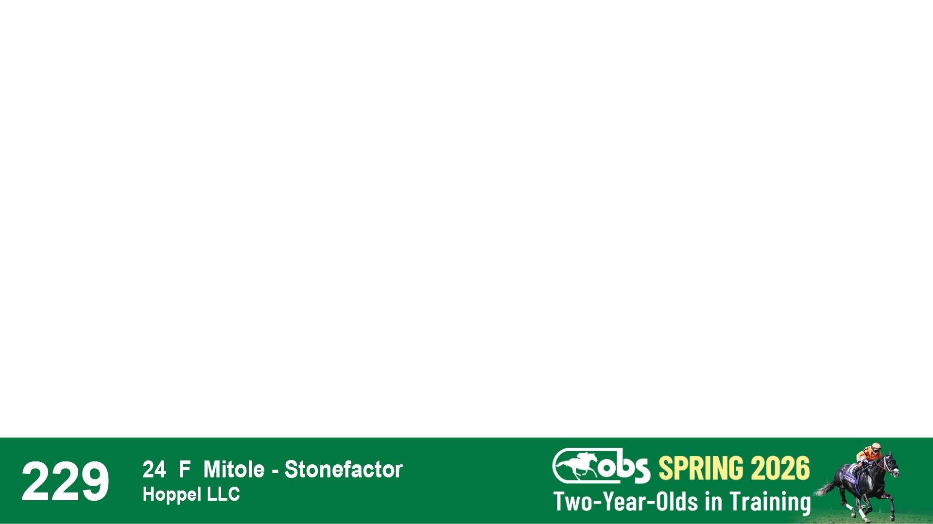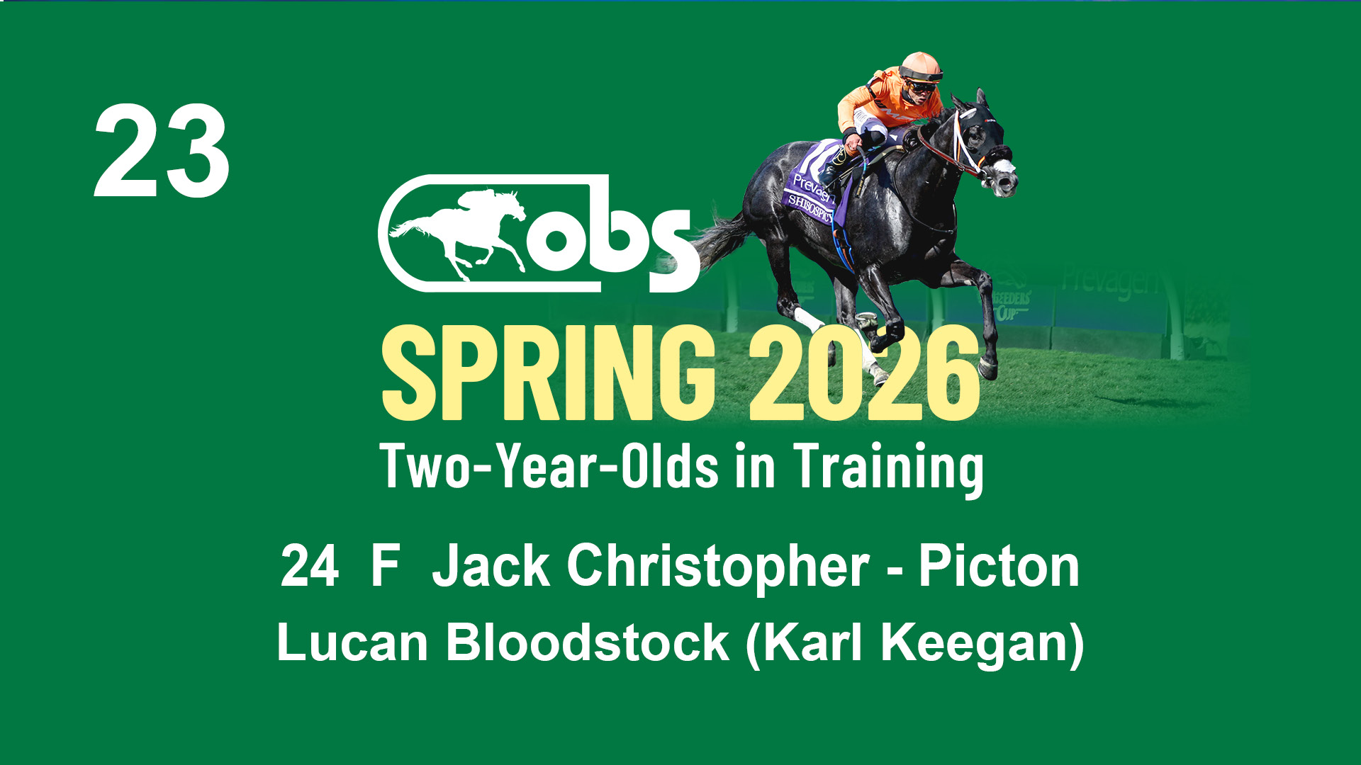 | 1183 | Slate | Lower-Third | 3/25/2024 | C | Jack Christopher | New Angel (GB) | Two Oaks Equine, Agent | 1186 | 589 | 770 | 1174 | |