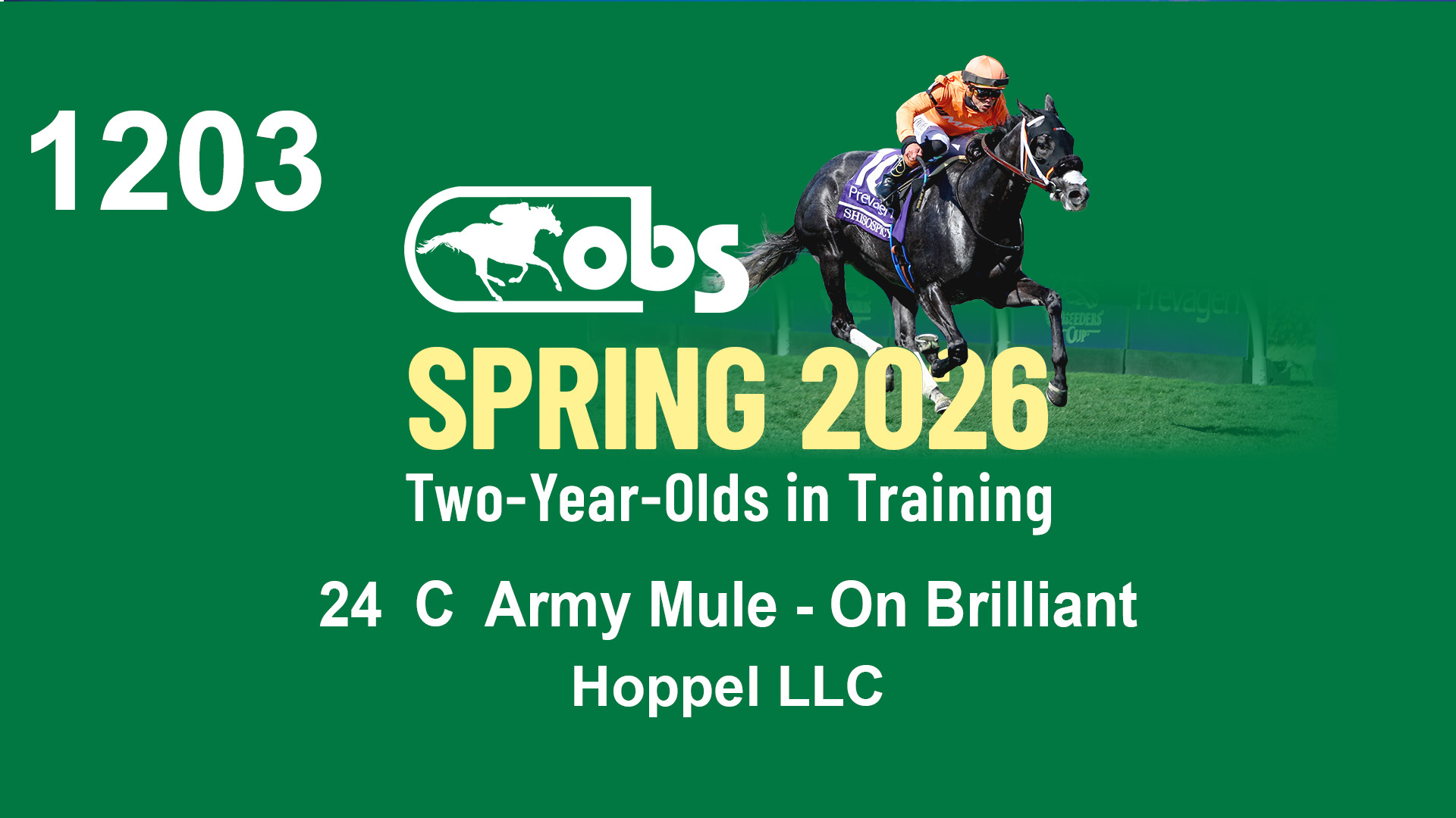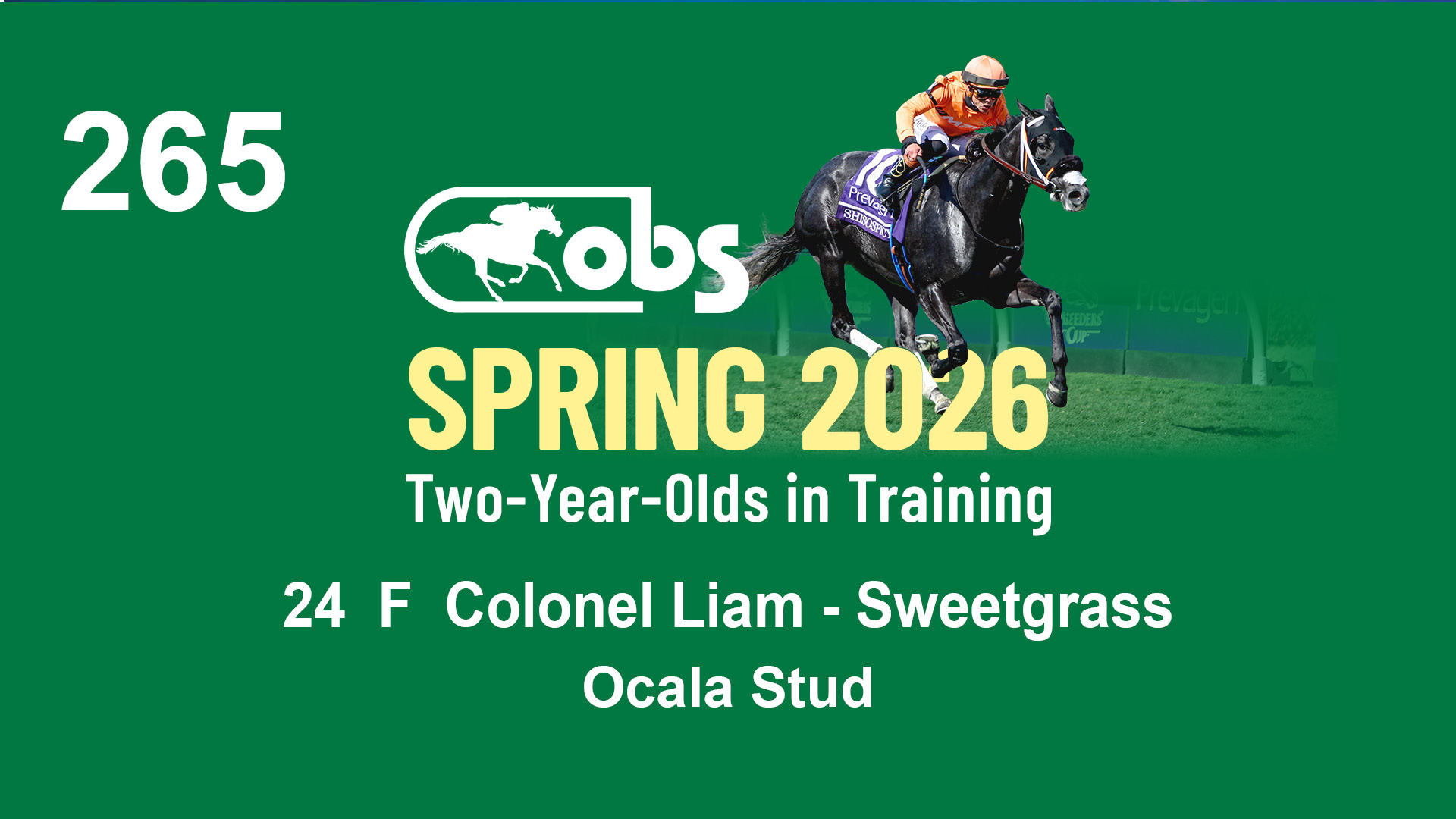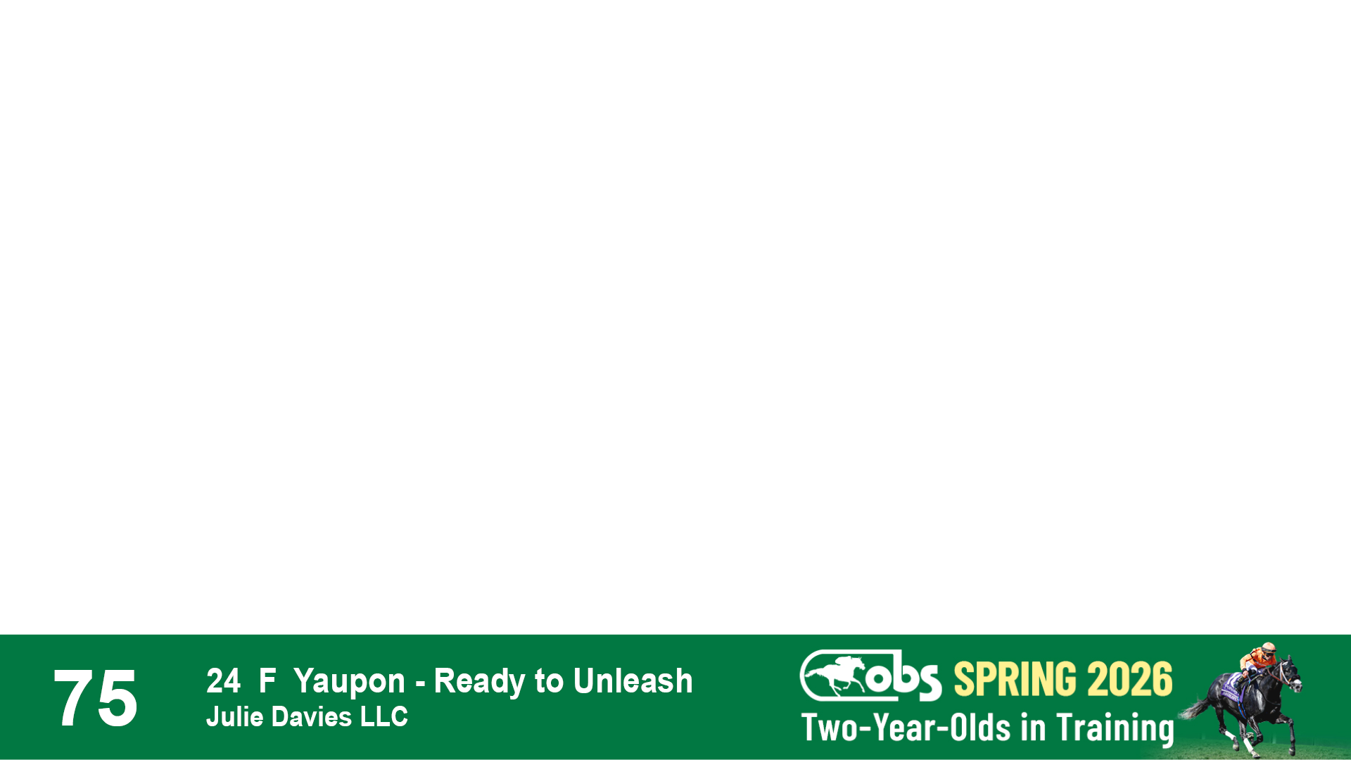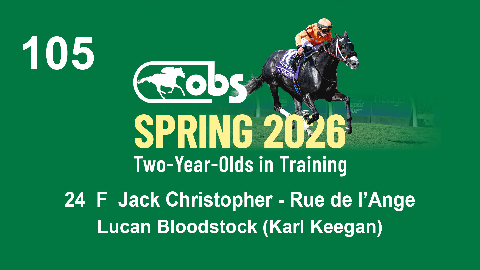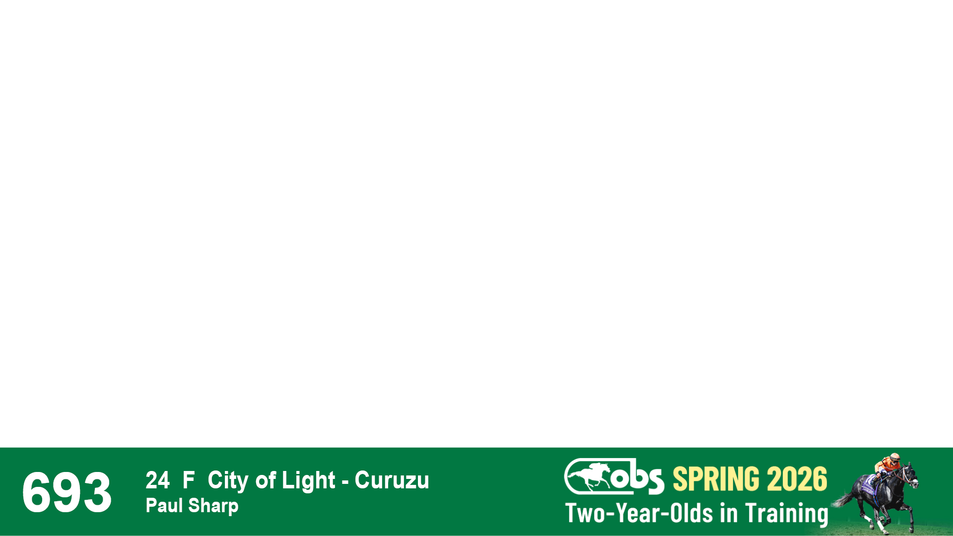 | 1183 | Slate | Lower-Third | 3/25/2024 | C | Jack Christopher | New Angel (GB) | Two Oaks Equine, Agent | 1186 | 589 | 770 | 1174 | |