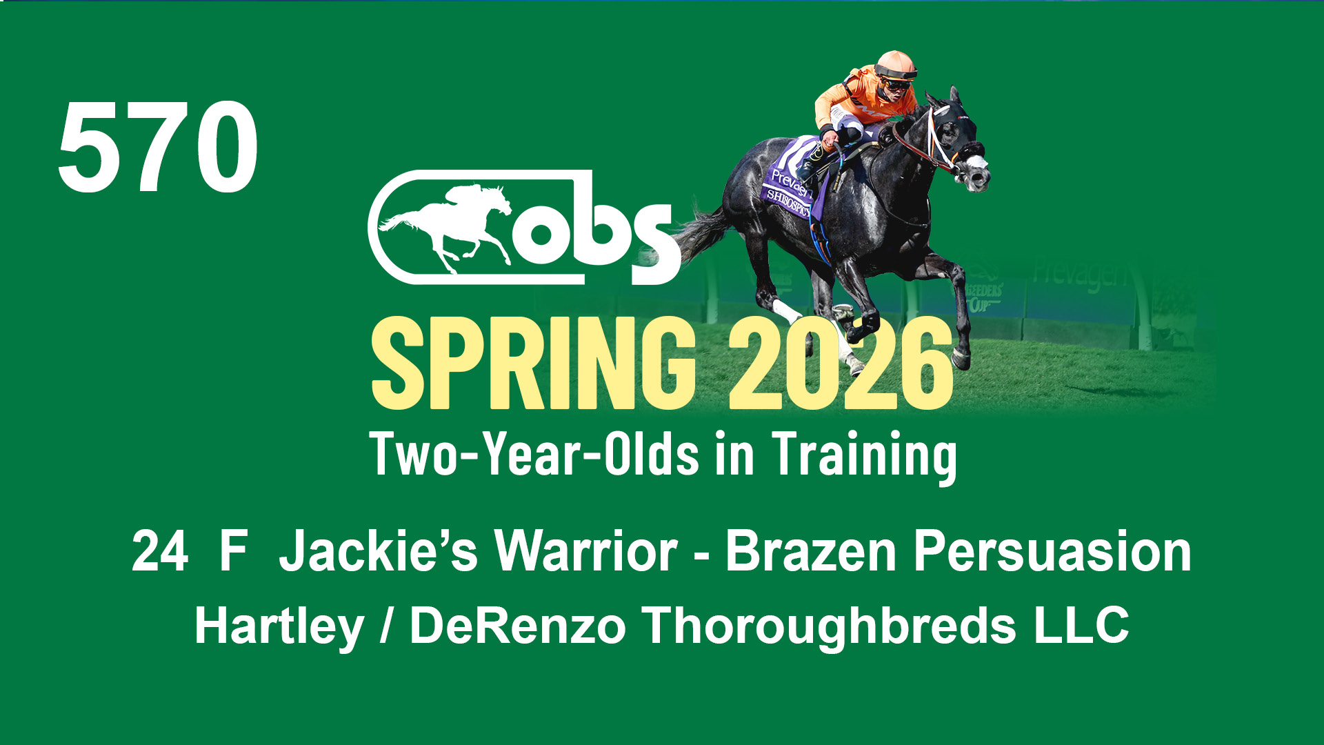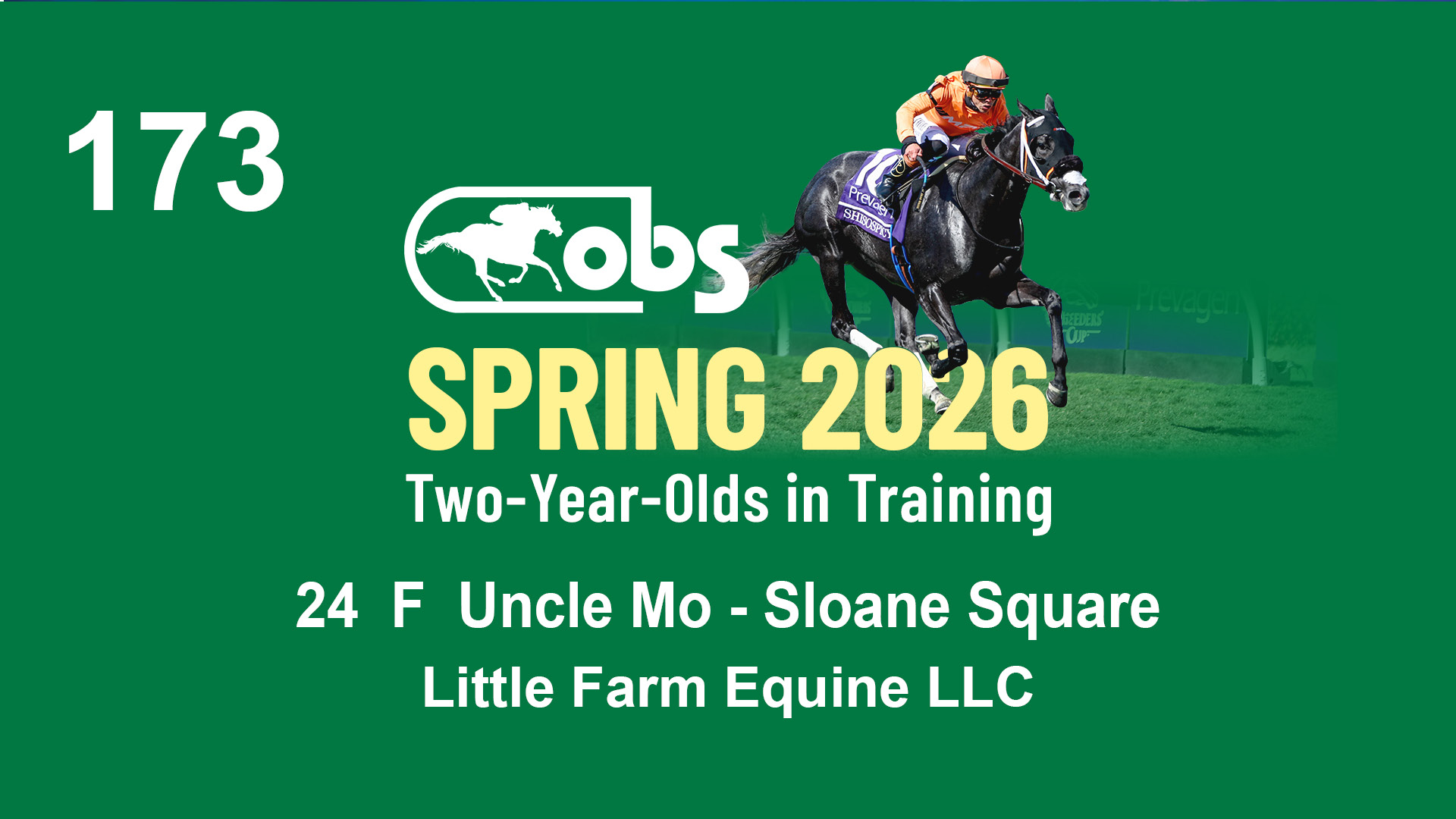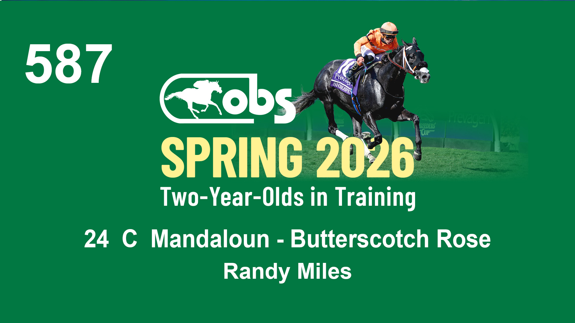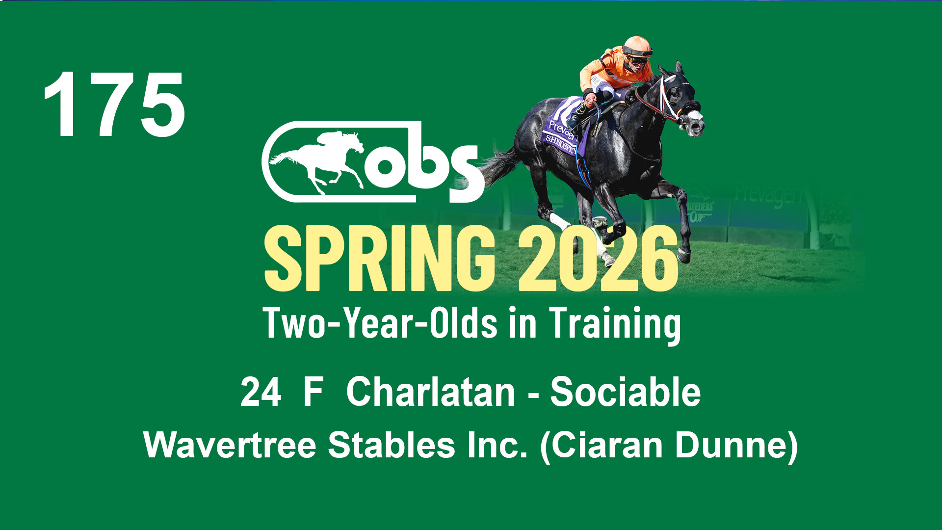 | 1183 | Slate | Lower-Third | 3/25/2024 | C | Jack Christopher | New Angel (GB) | Two Oaks Equine, Agent | 1186 | 589 | 770 | 1174 | |