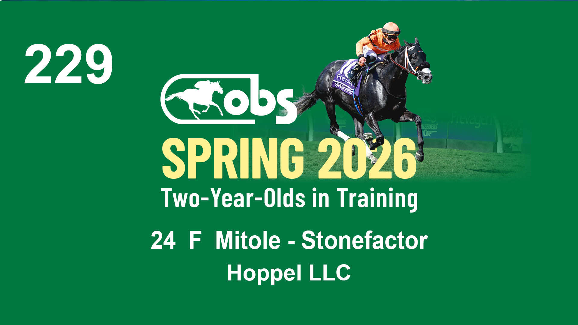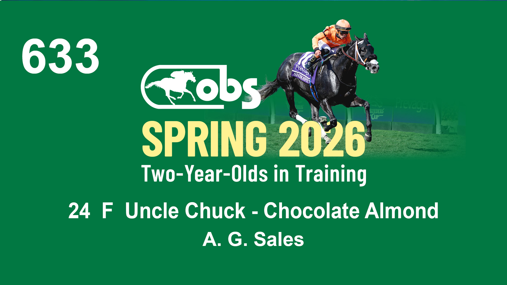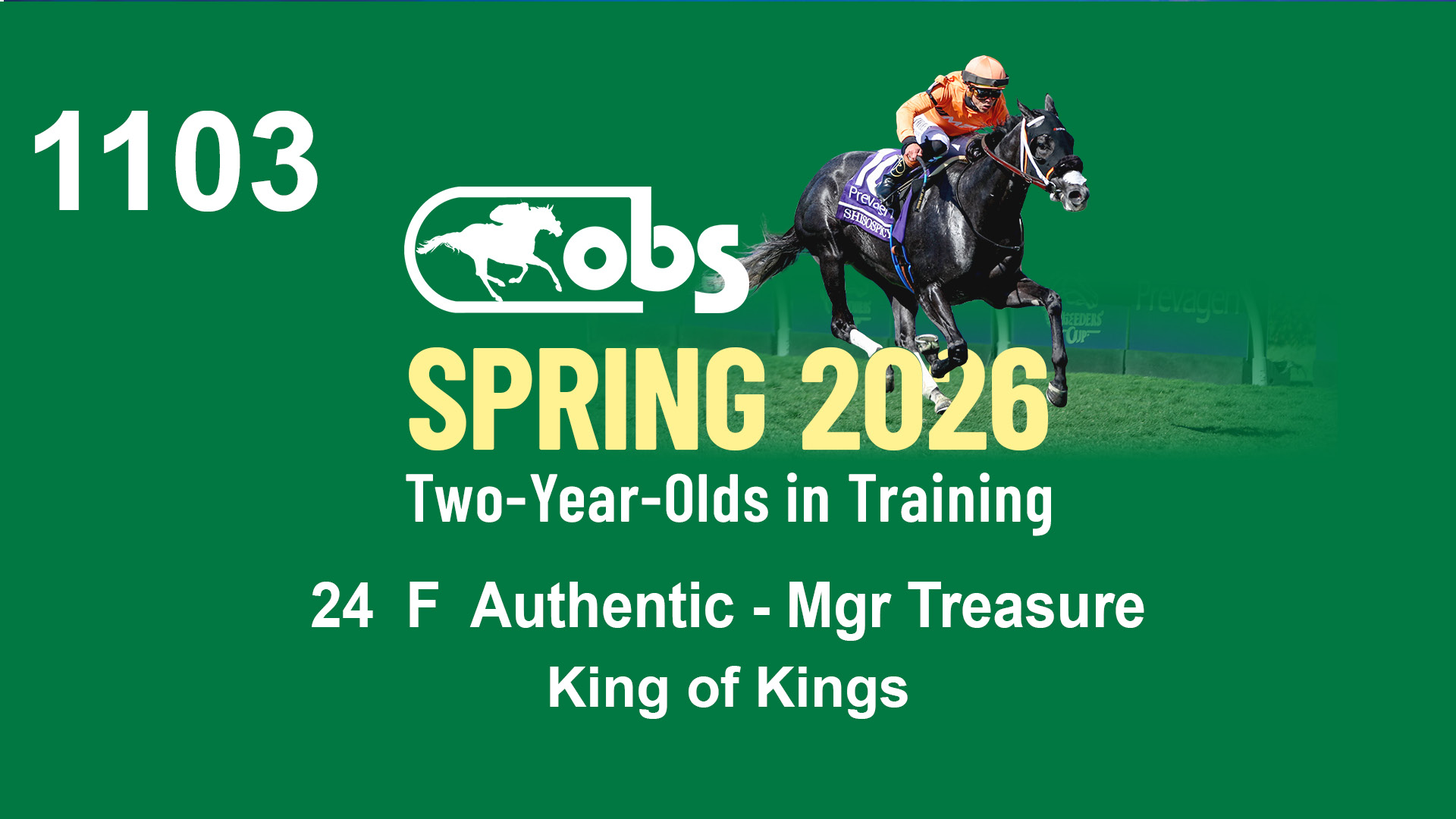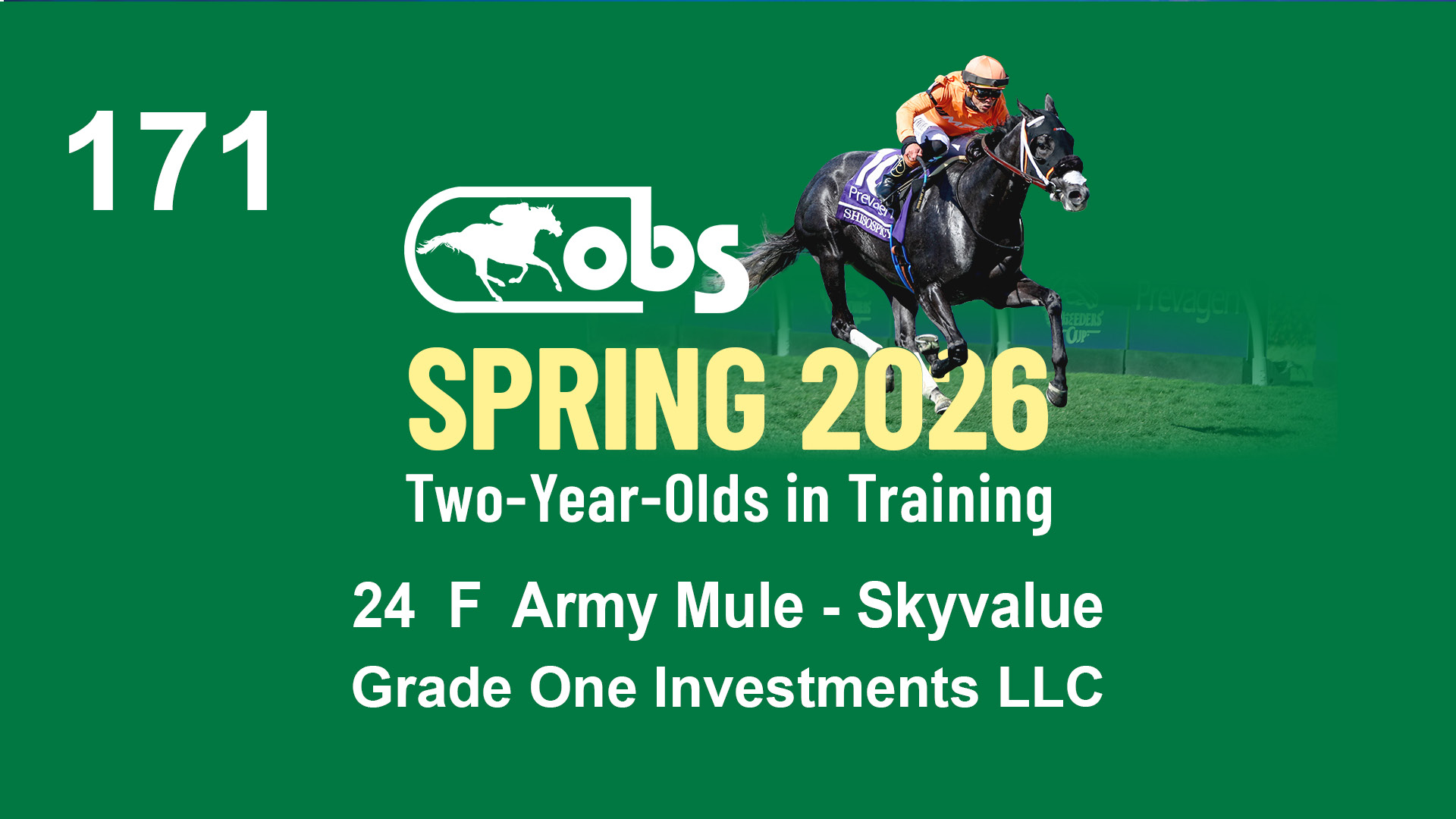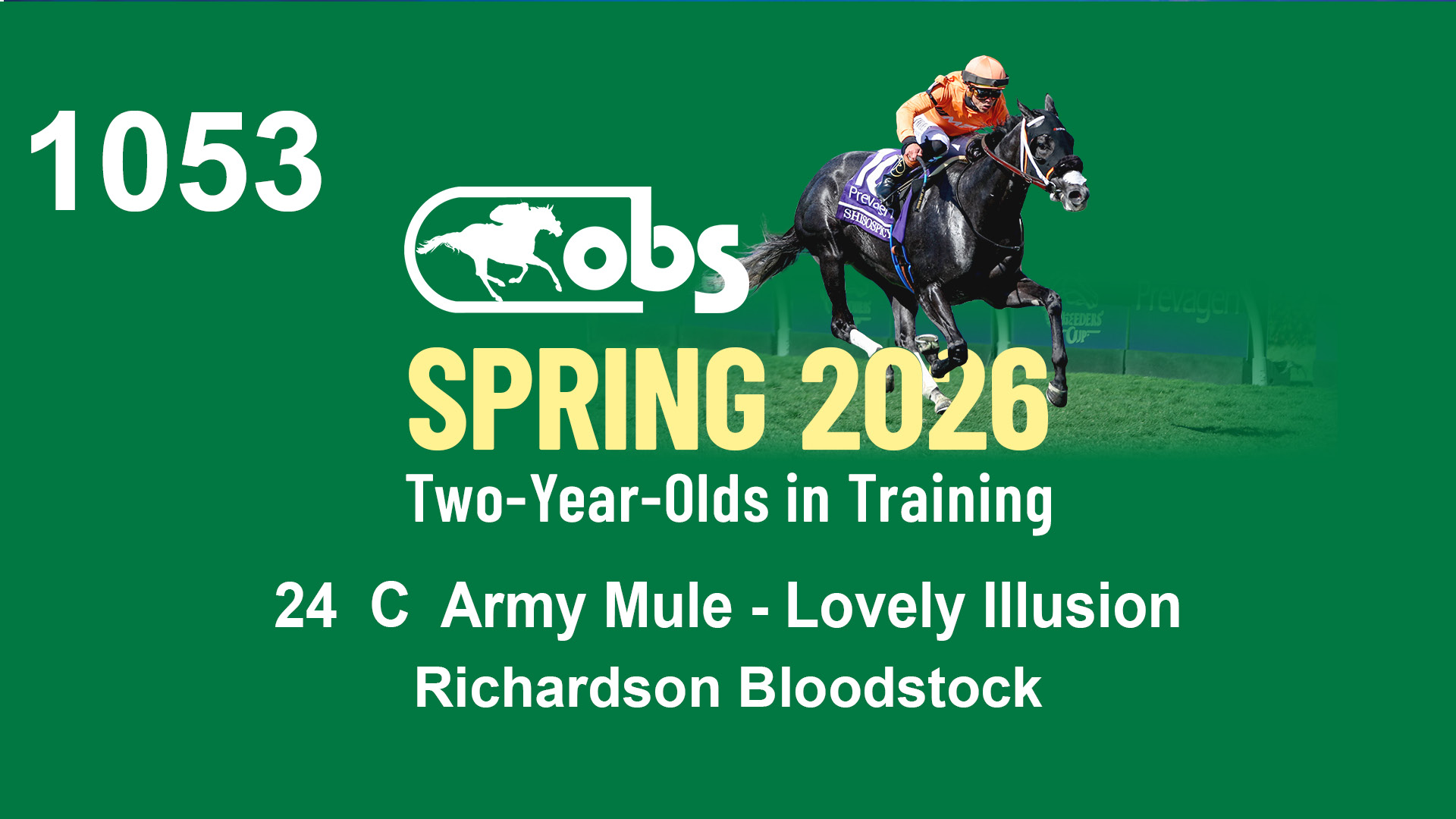 | 1183 | Slate | Lower-Third | 3/25/2024 | C | Jack Christopher | New Angel (GB) | Two Oaks Equine, Agent | 1186 | 589 | 770 | 1174 | |