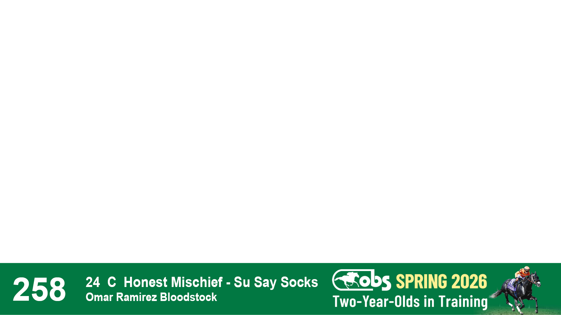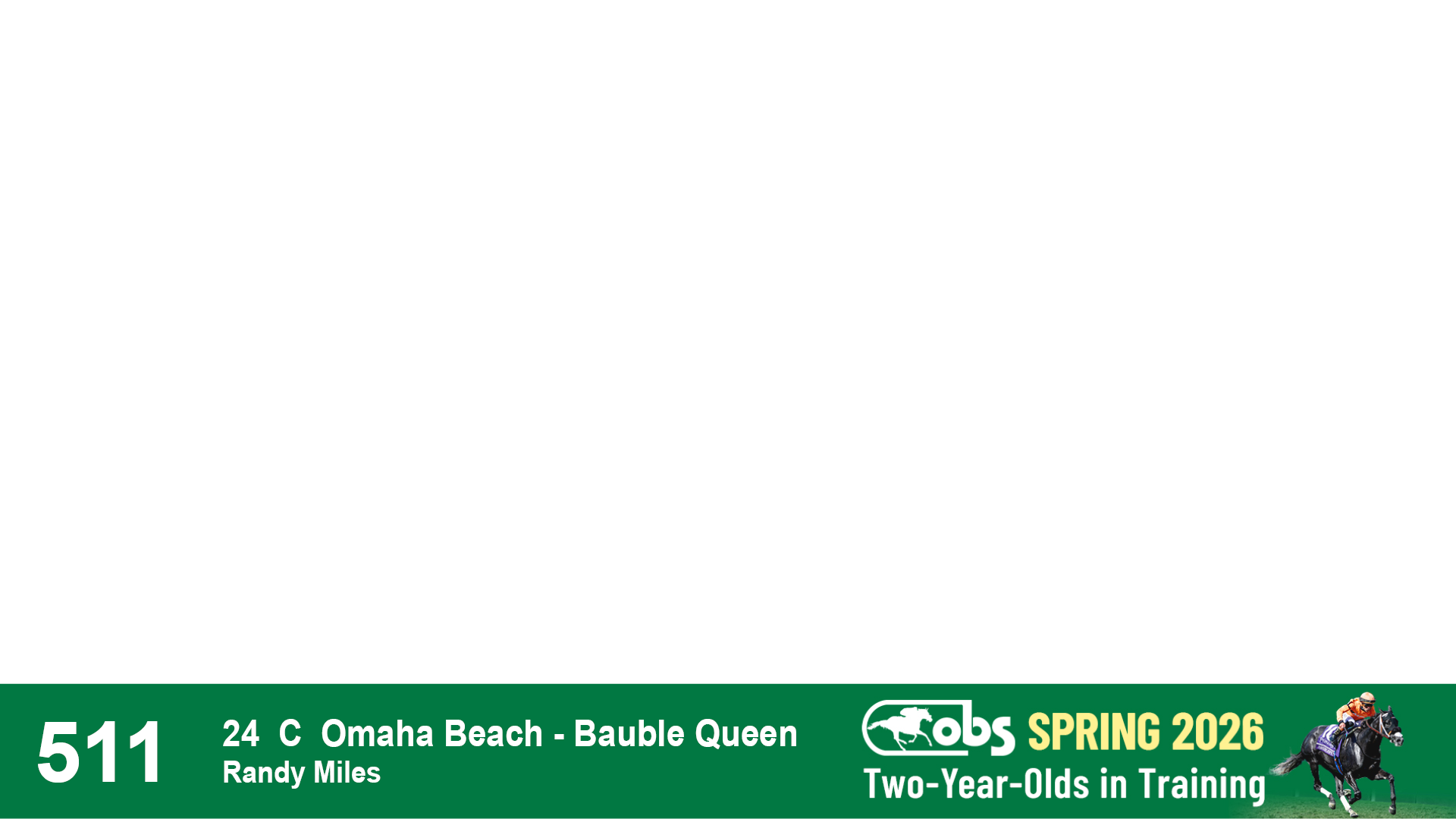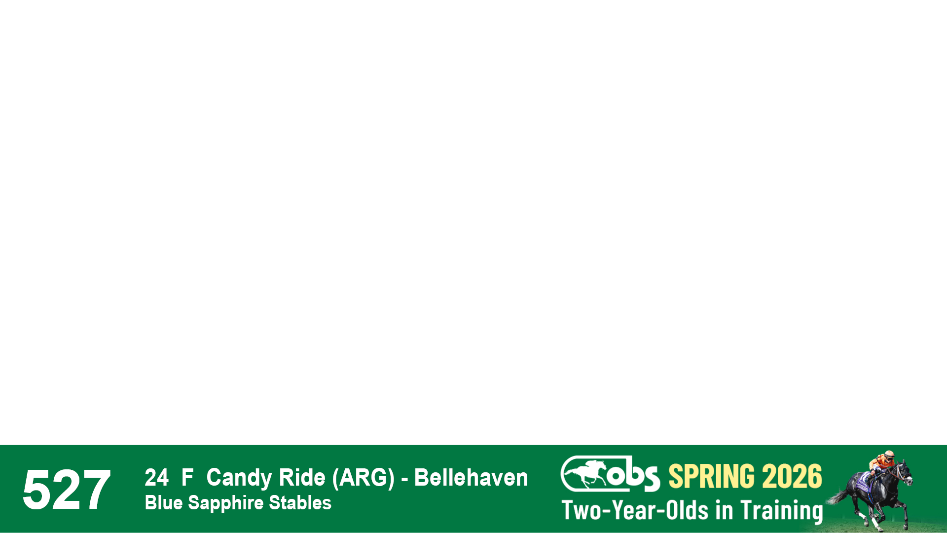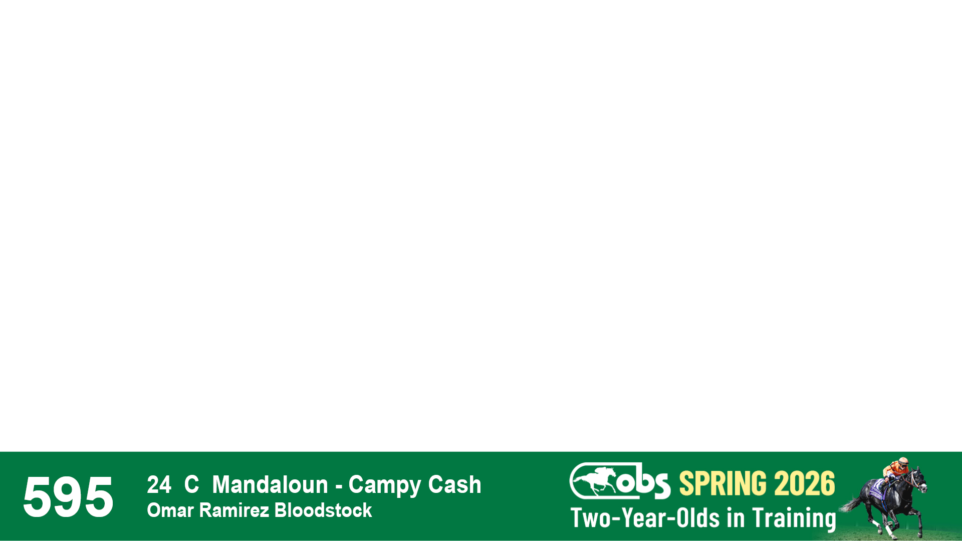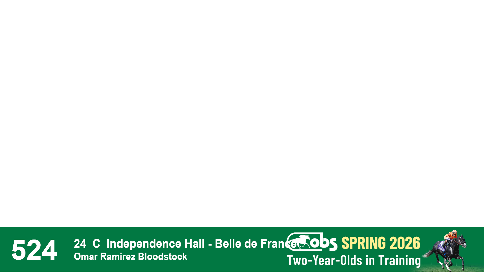 | 53 | Slate | Lower-Third | 5/20/2024 | C | Upstart | Pure Harmony | Omar Ramirez Bloodstock, Agent XXX | 127 | 1116 | 860 | 760 | |