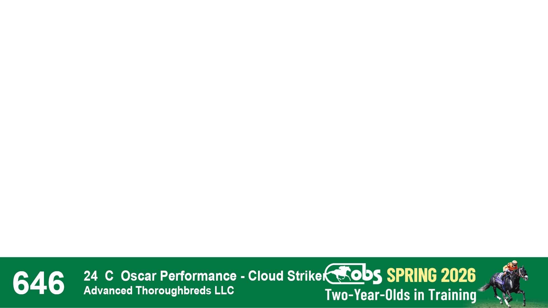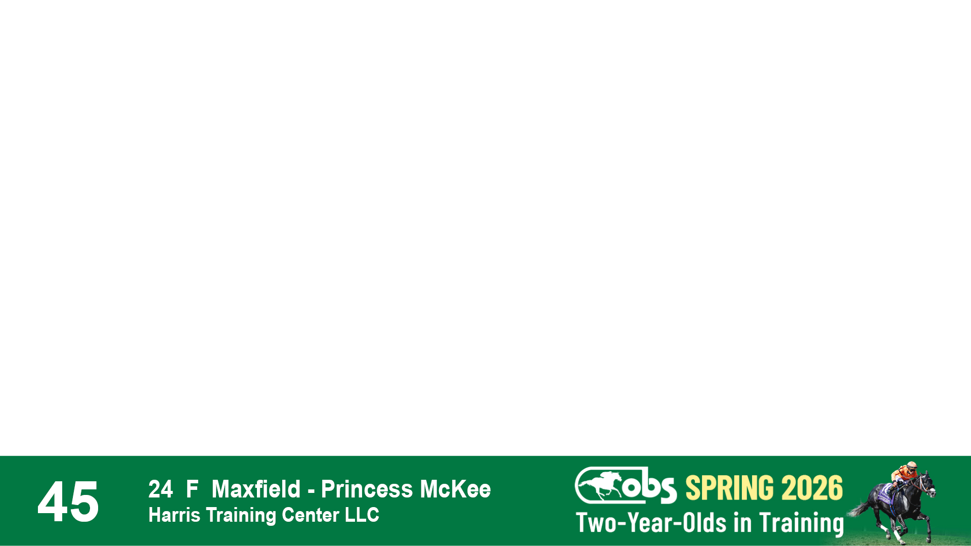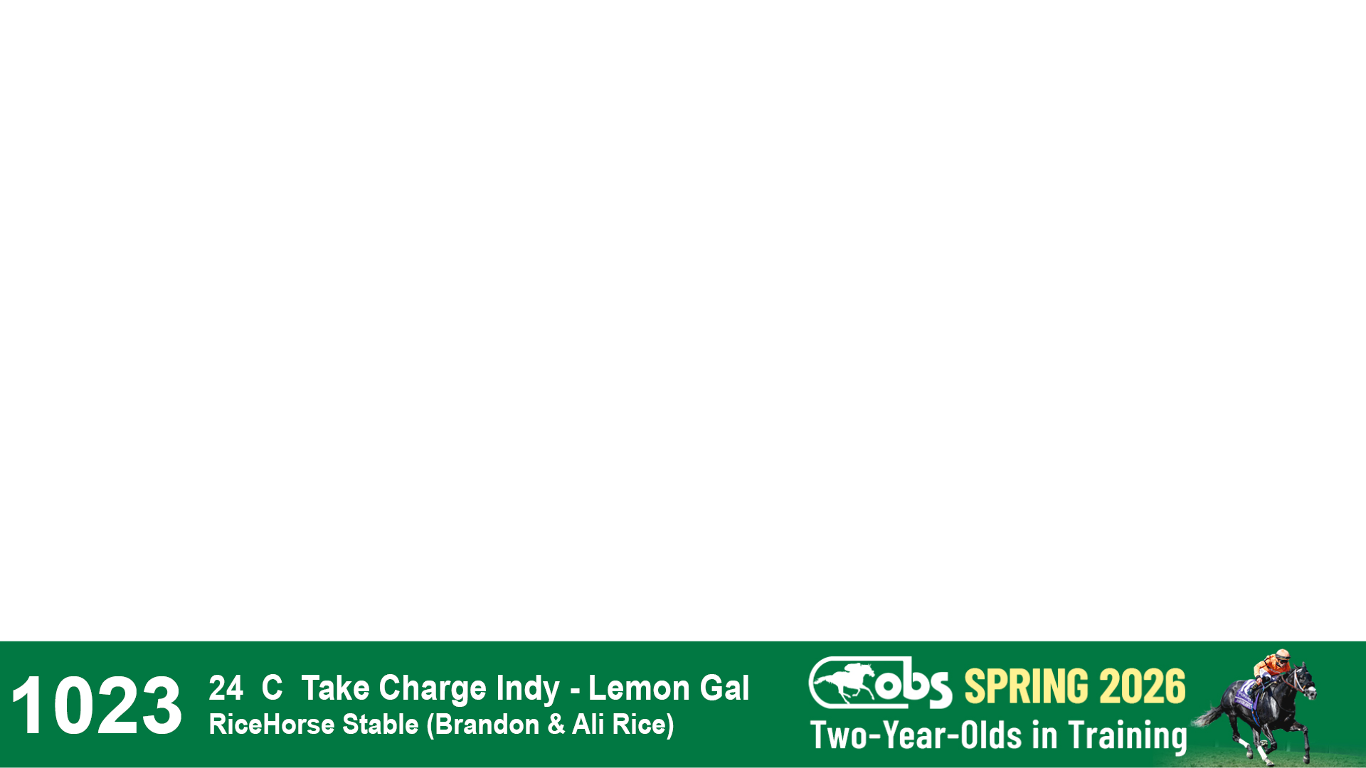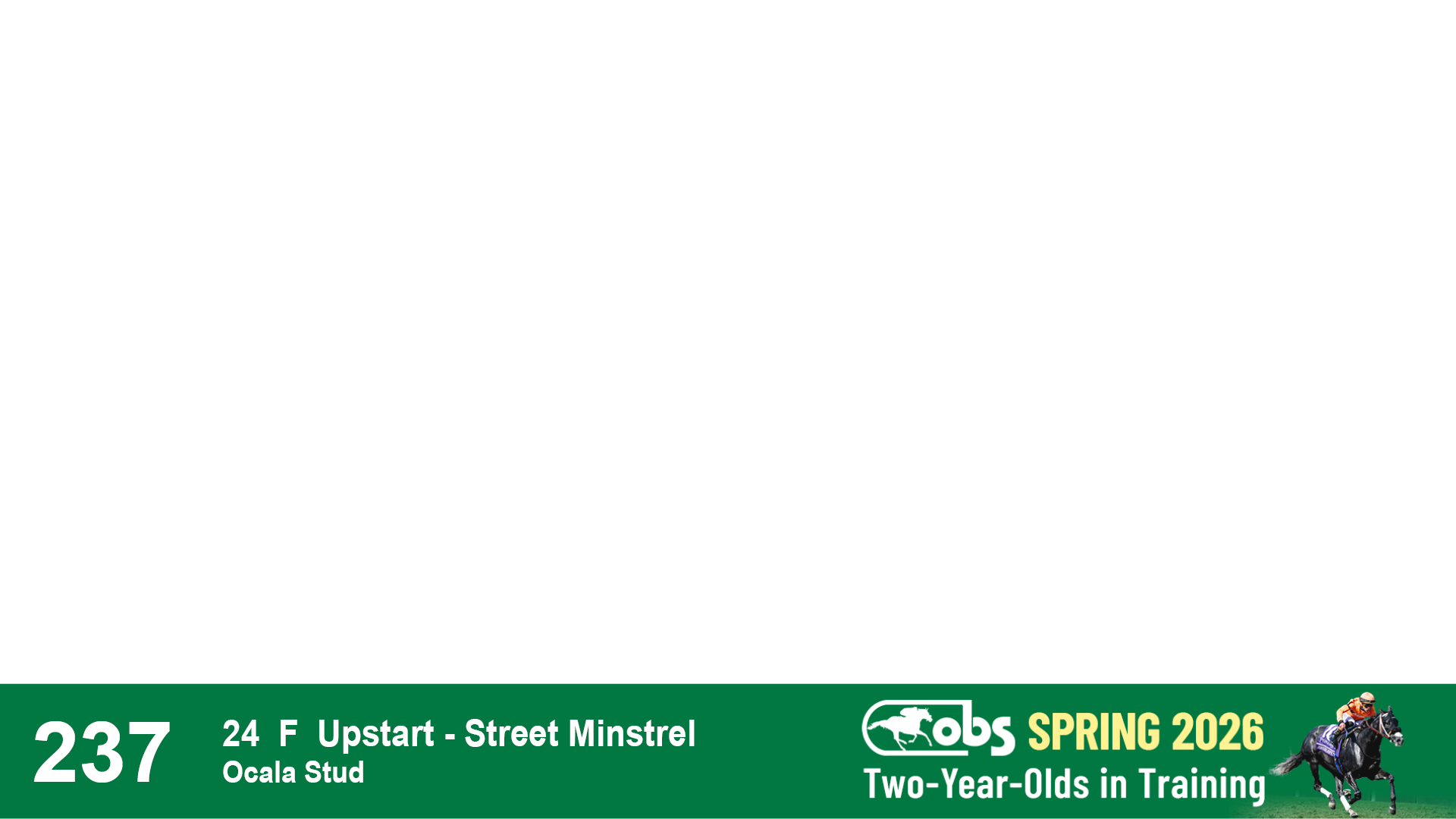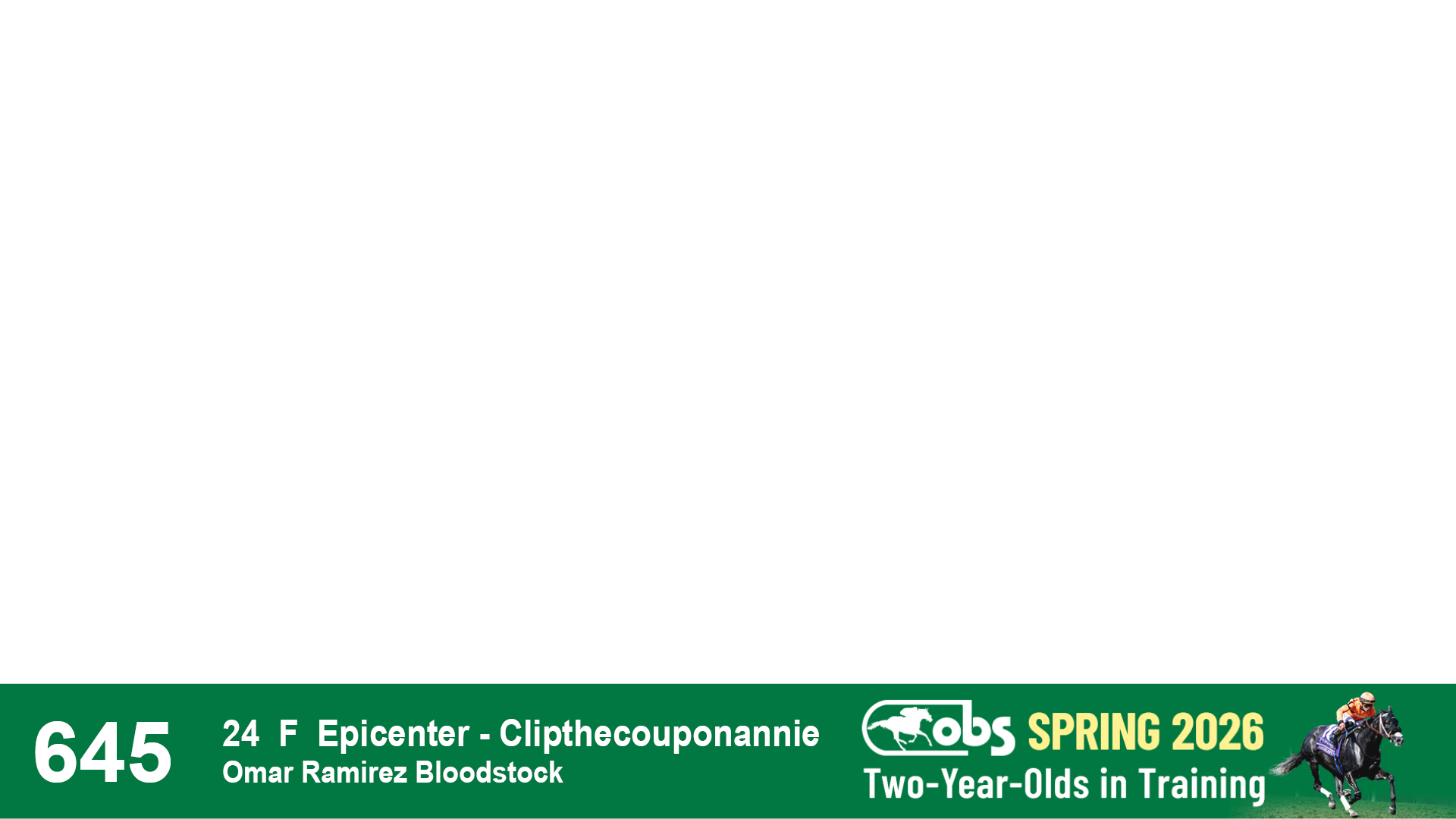 | 53 | Slate | Lower-Third | 5/20/2024 | C | Upstart | Pure Harmony | Omar Ramirez Bloodstock, Agent XXX | 127 | 1116 | 860 | 760 | |