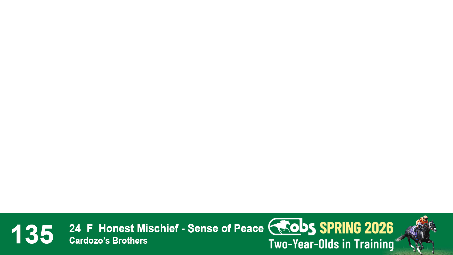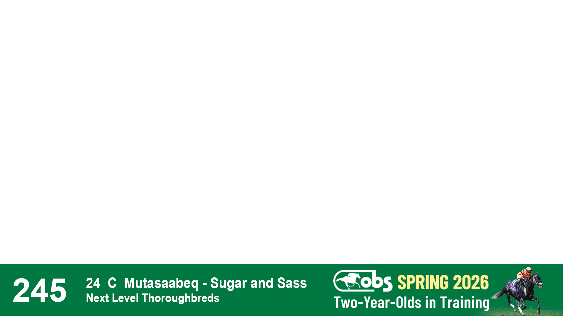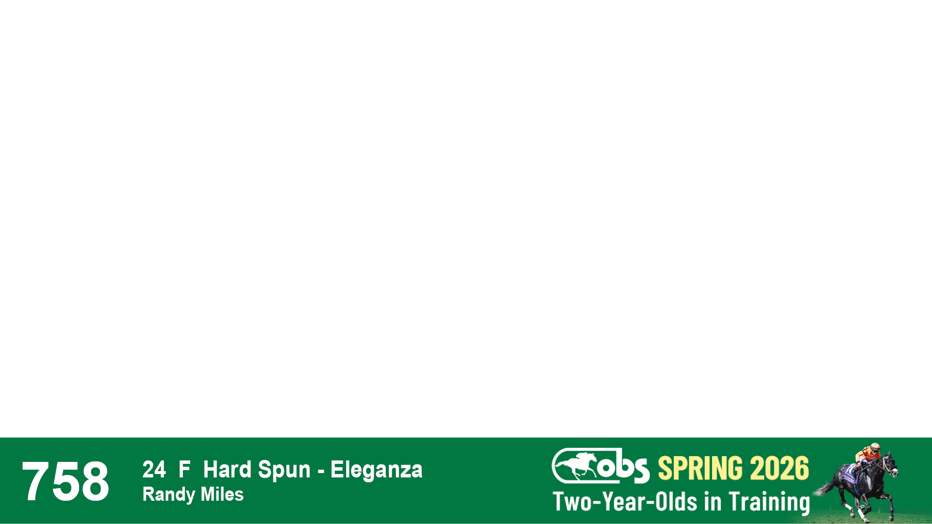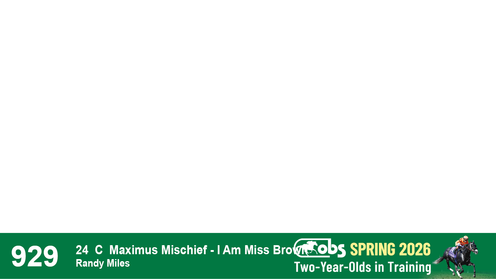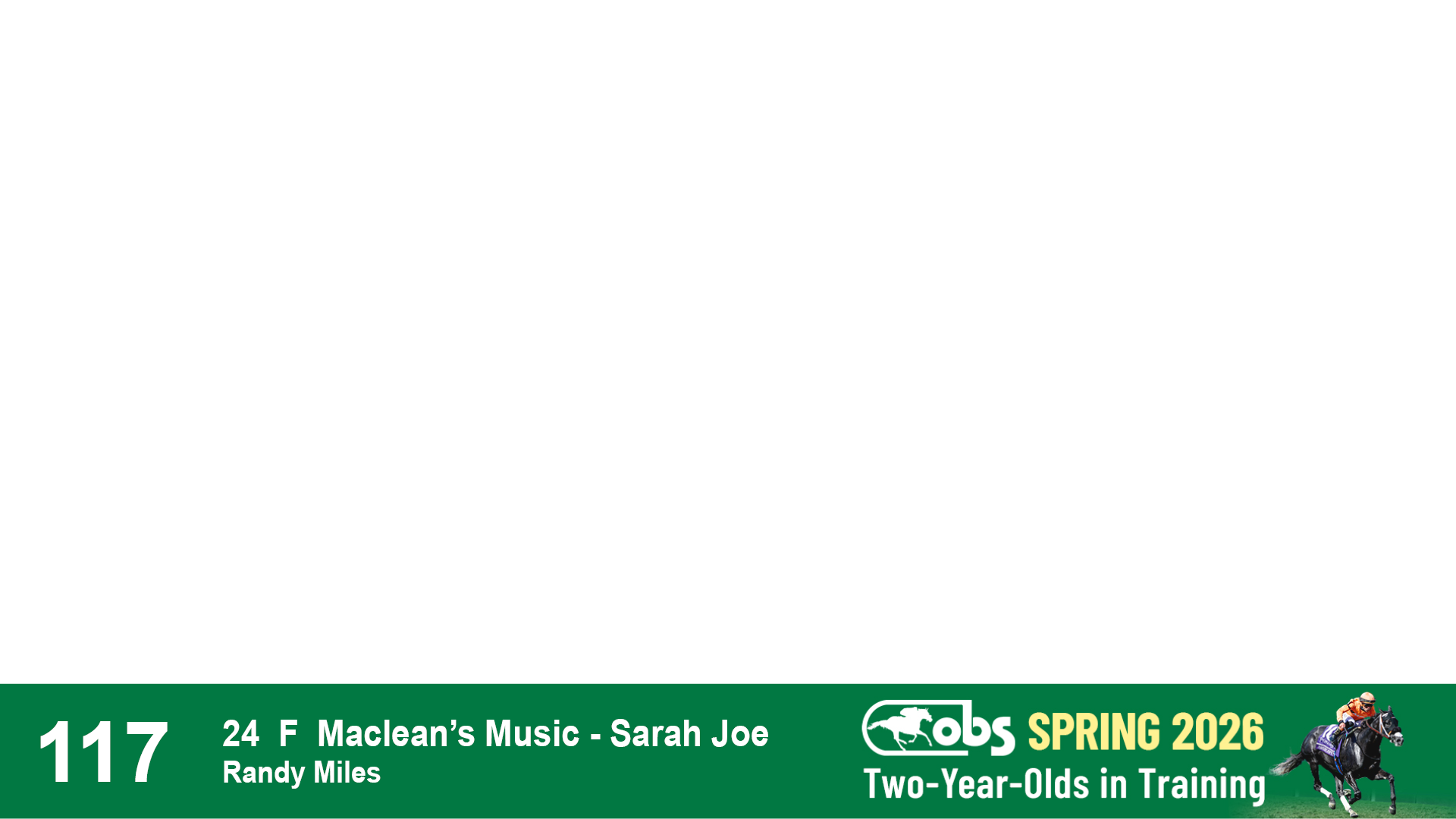 | 53 | Slate | Lower-Third | 5/20/2024 | C | Upstart | Pure Harmony | Omar Ramirez Bloodstock, Agent XXX | 127 | 1116 | 860 | 760 | |