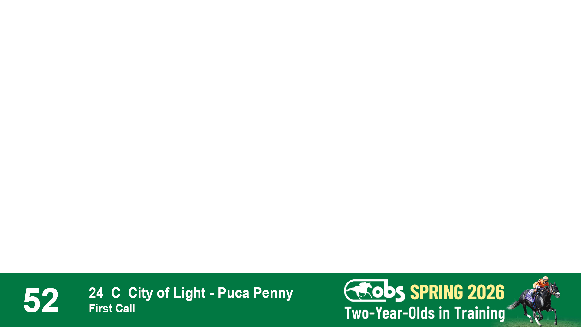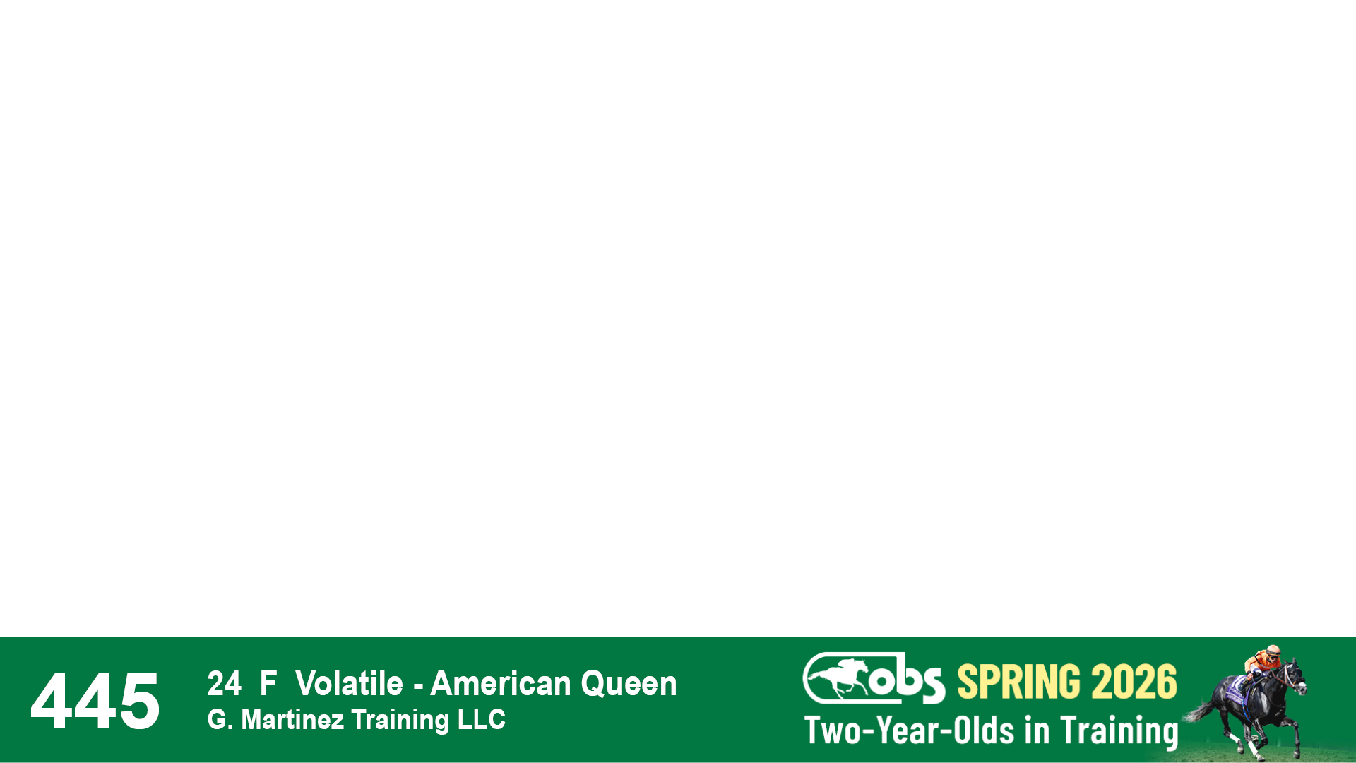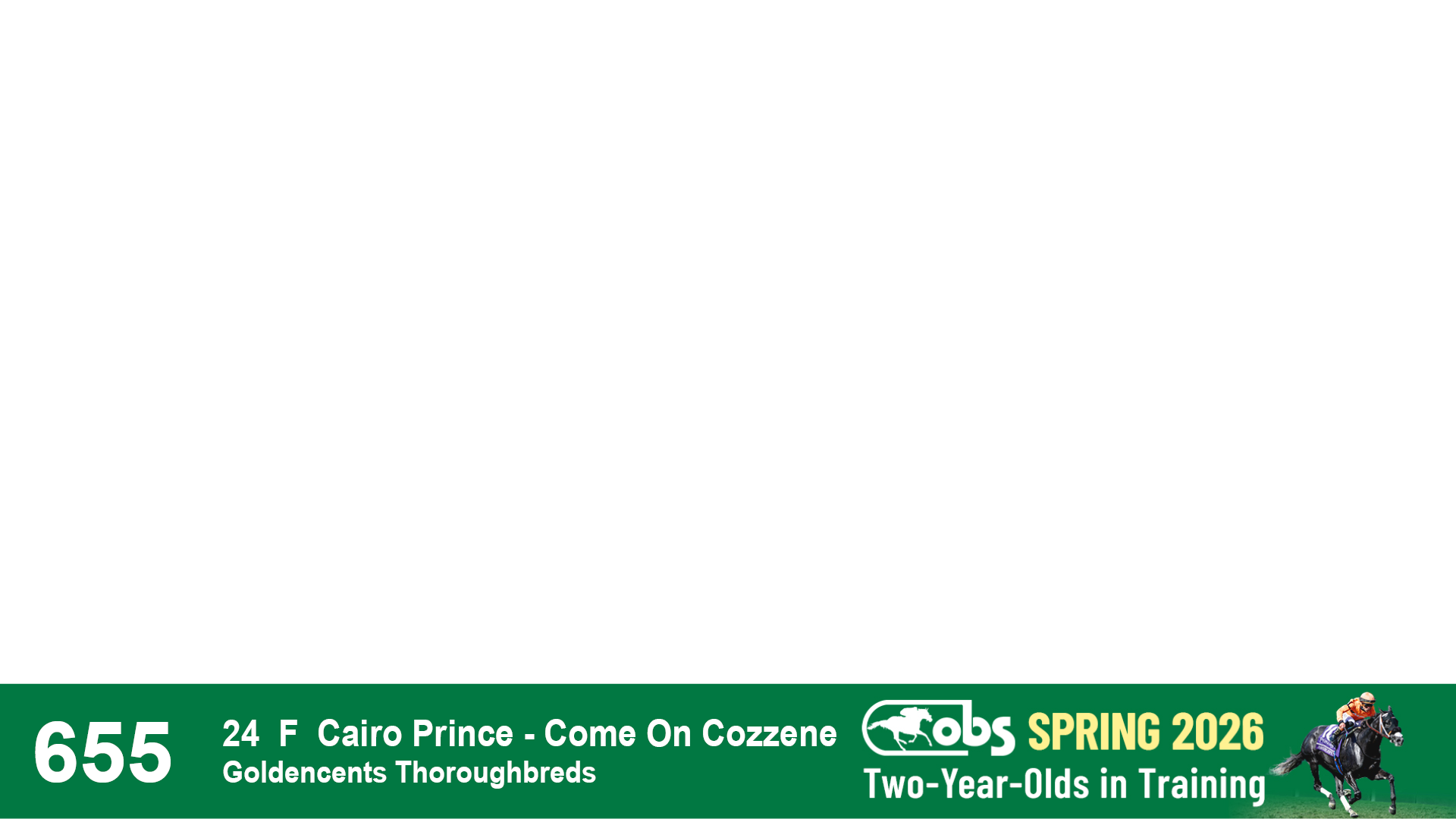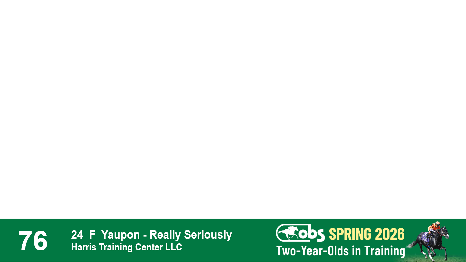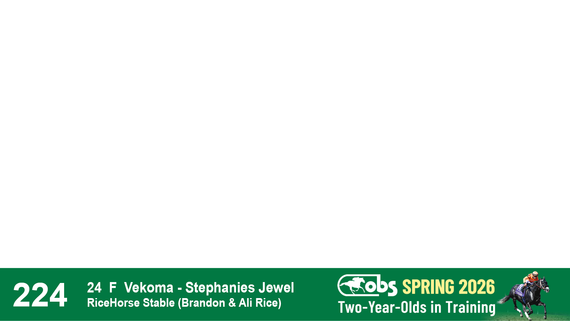 | 53 | Slate | Lower-Third | 5/20/2024 | C | Upstart | Pure Harmony | Omar Ramirez Bloodstock, Agent XXX | 127 | 1116 | 860 | 760 | |