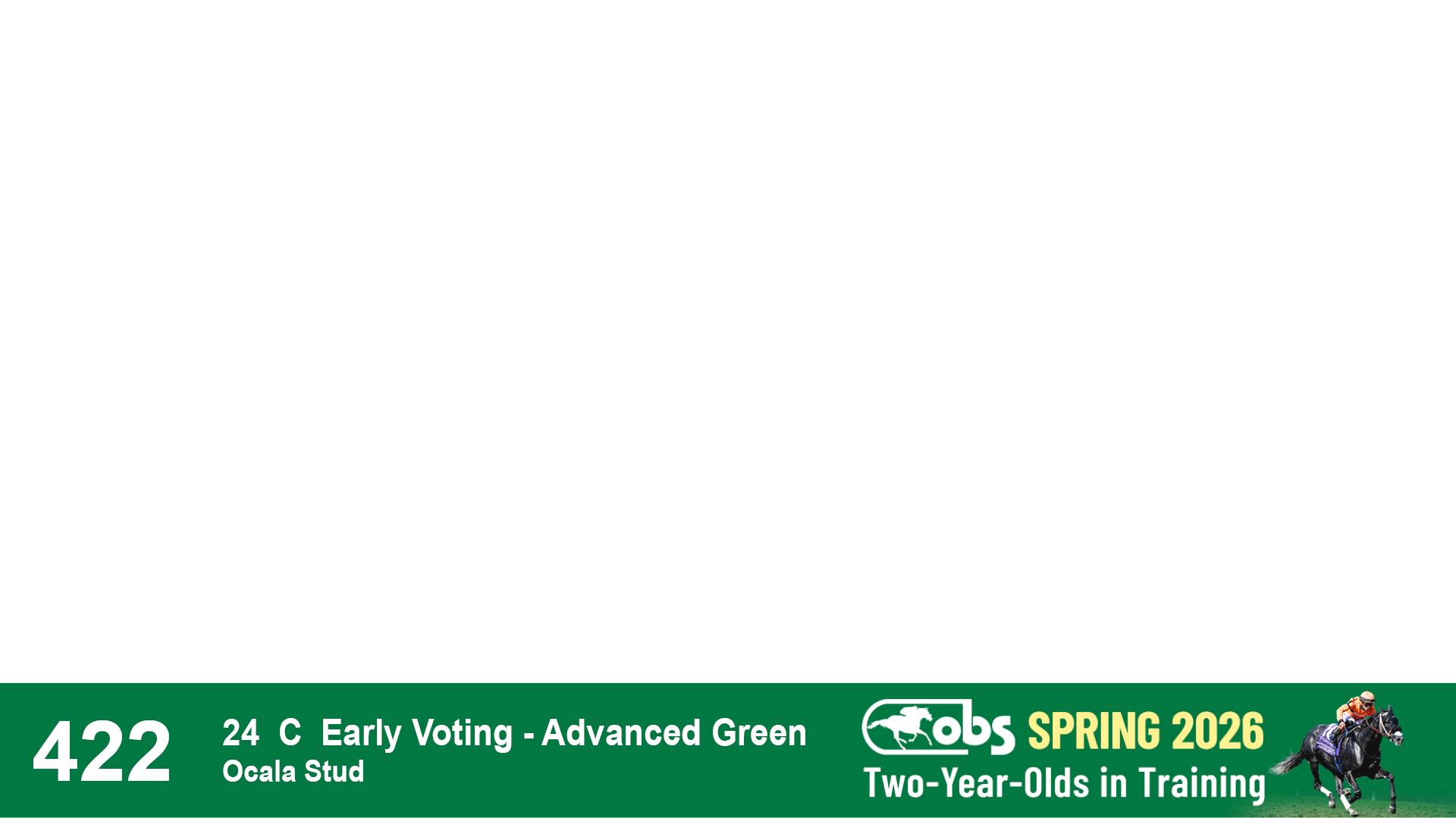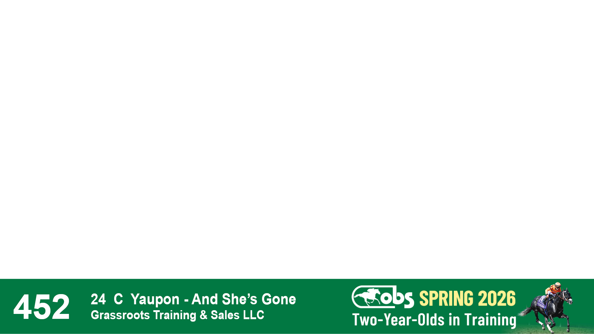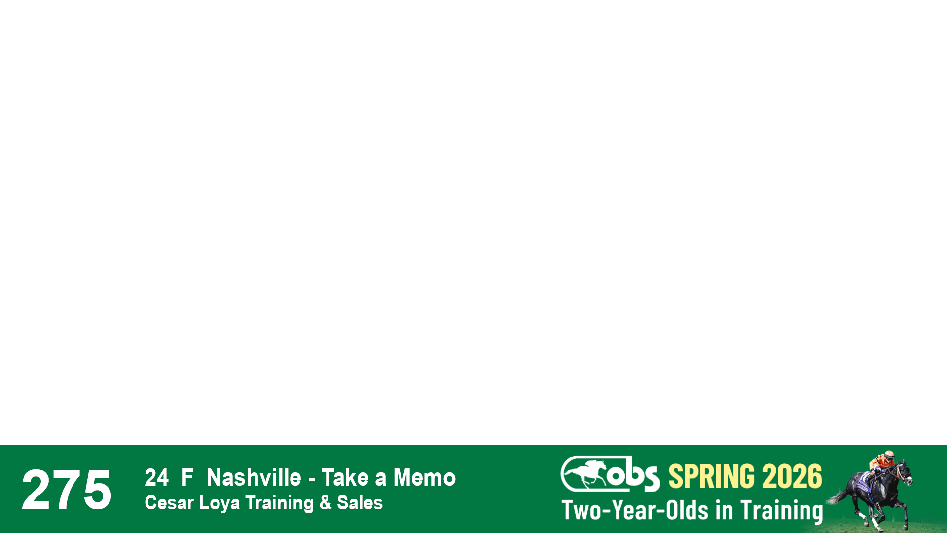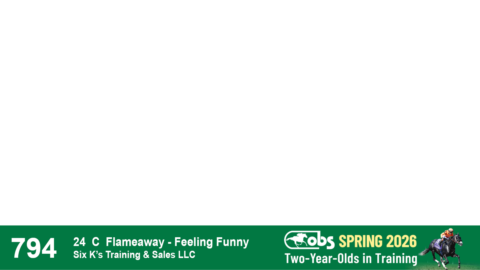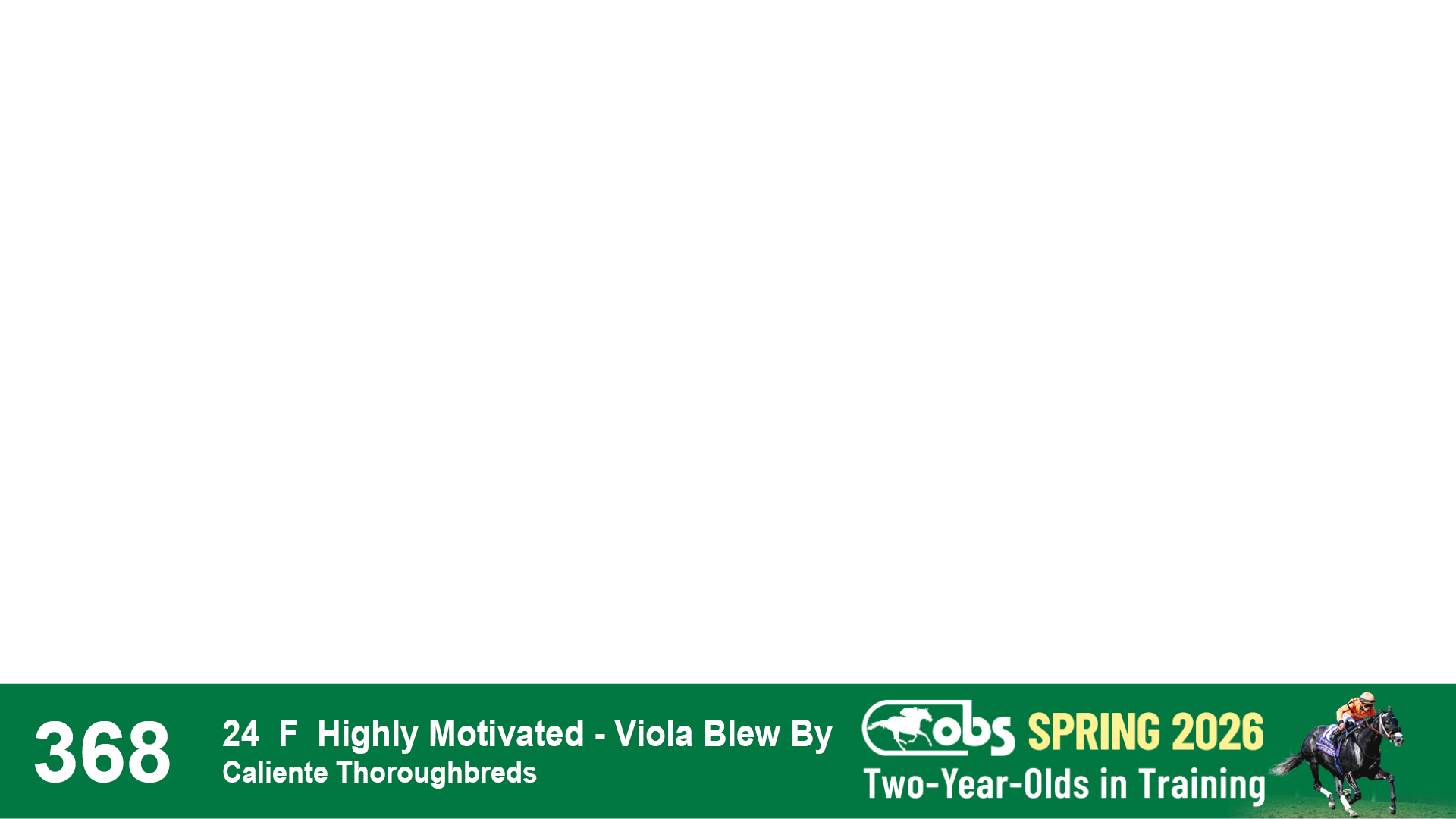 | 53 | Slate | Lower-Third | 5/20/2024 | C | Upstart | Pure Harmony | Omar Ramirez Bloodstock, Agent XXX | 127 | 1116 | 860 | 760 | |