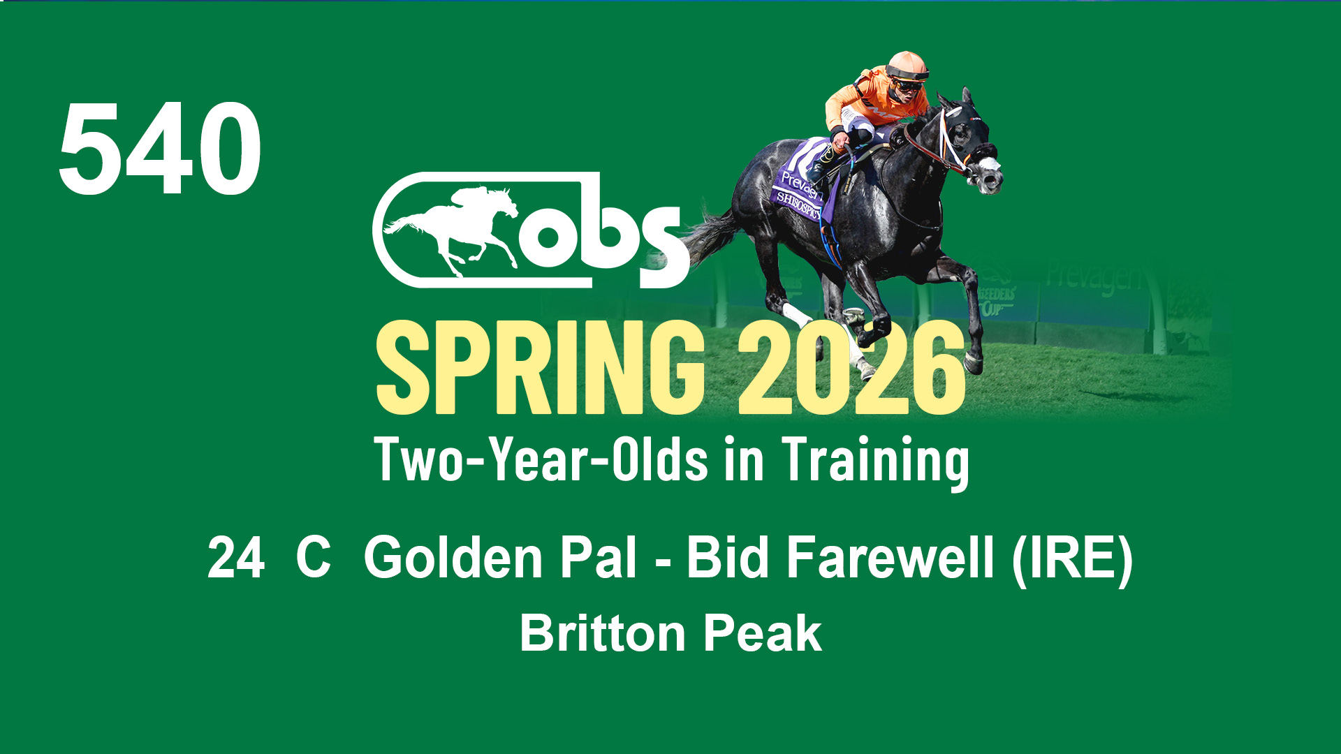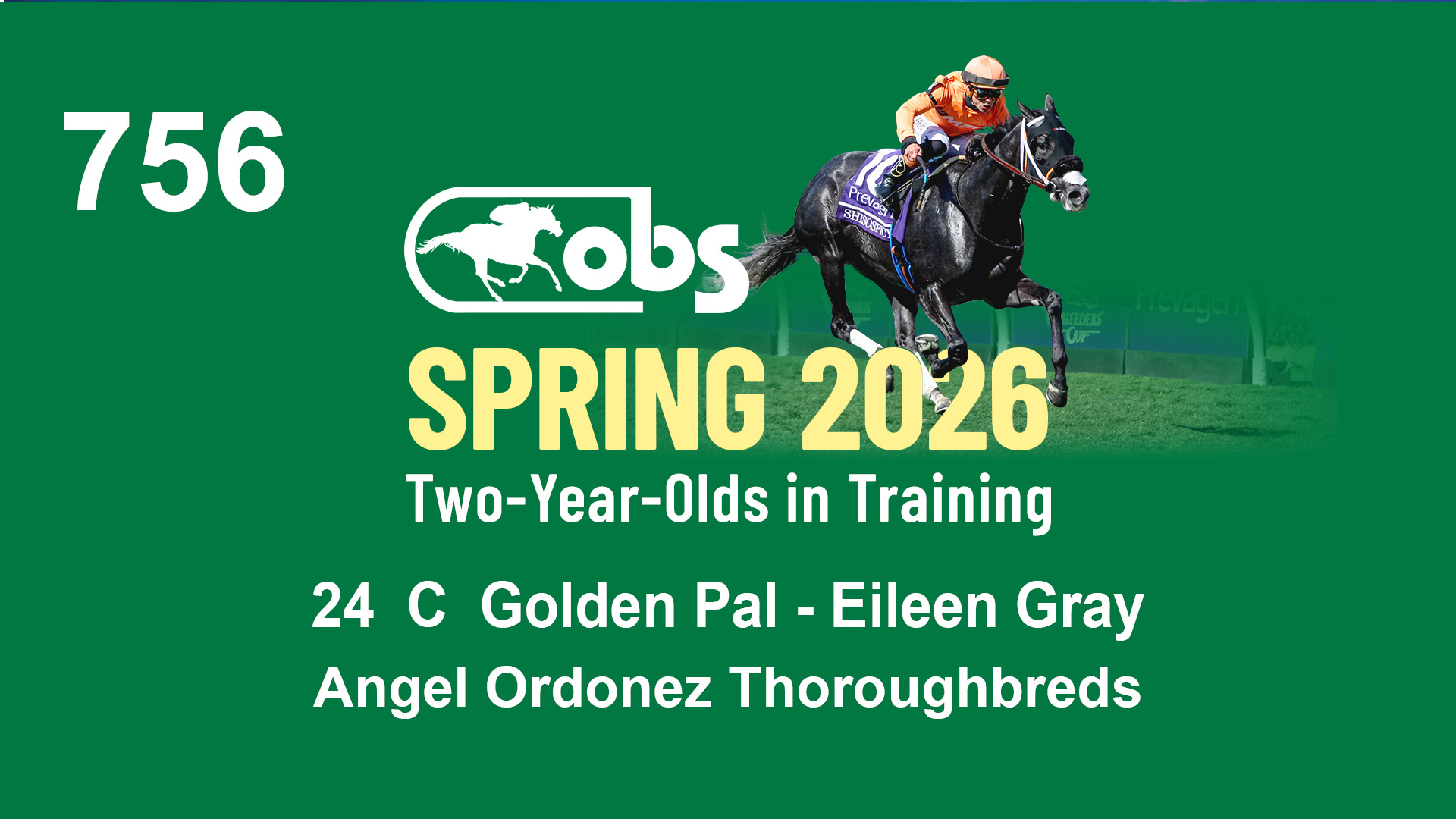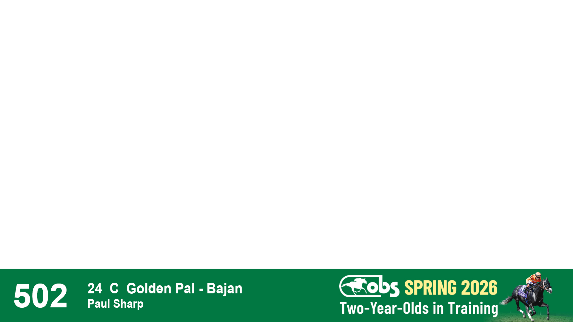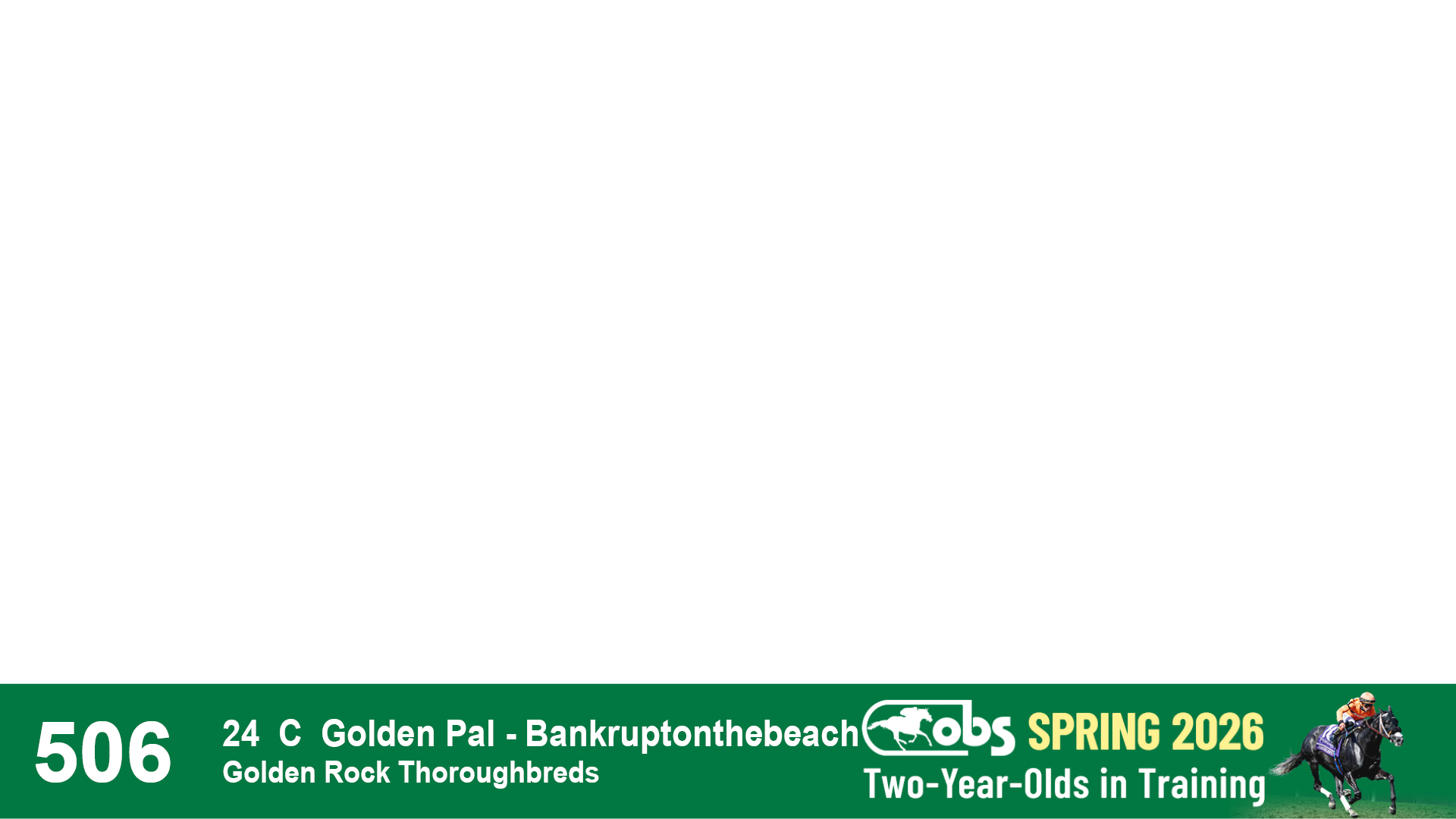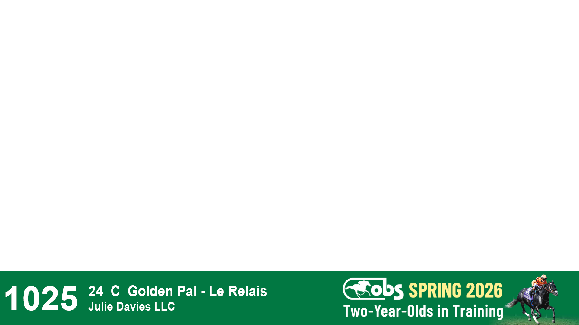 | 1210 | Slate | Lower-Third | 4/30/2024 | C | Golden Pal | Opal Blue (IRE) | Wavertree Stables, Inc. (Ciaran Dunne), Agent XVII | 1211 | 448 | 797 | 1207 | |
