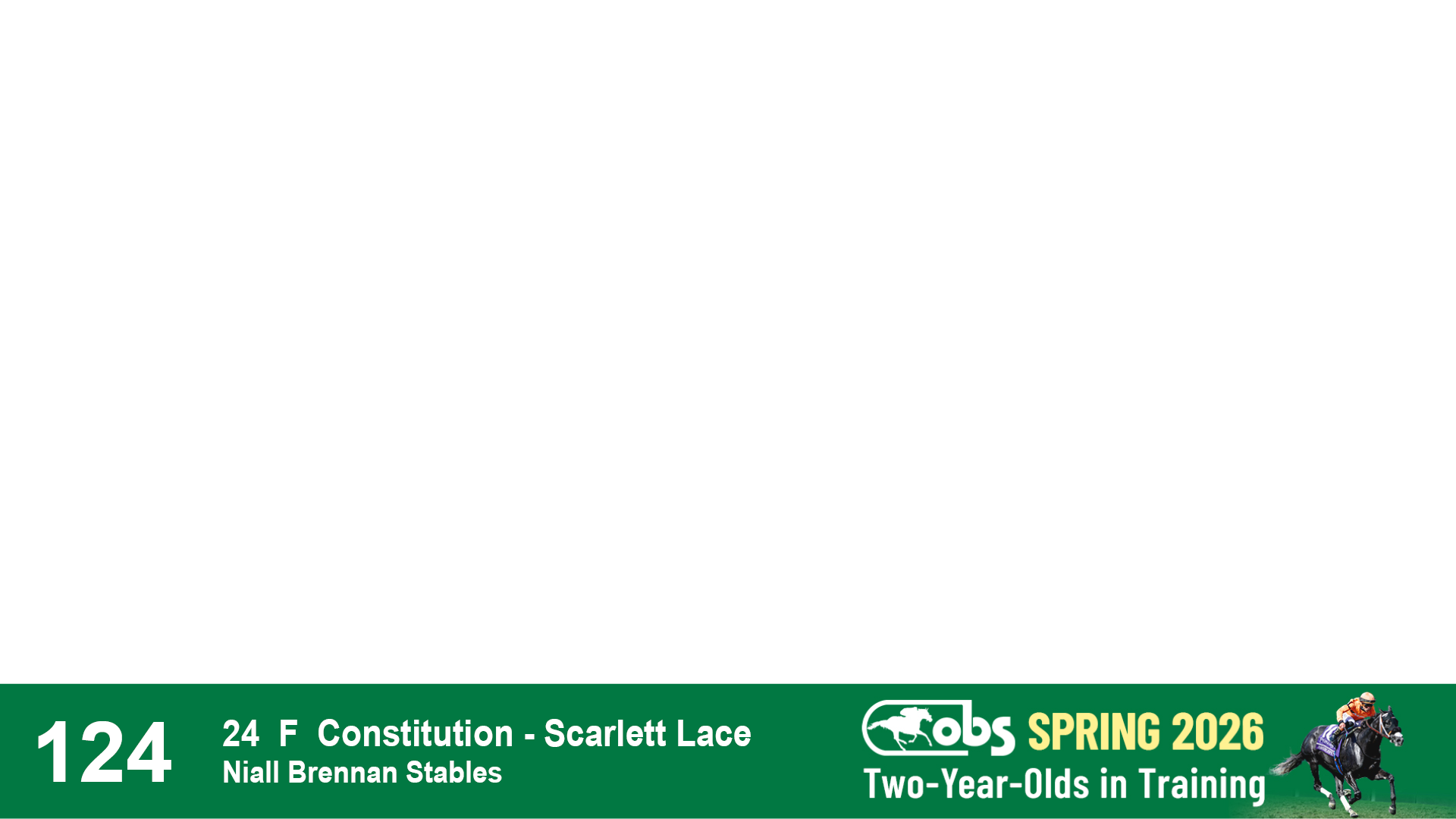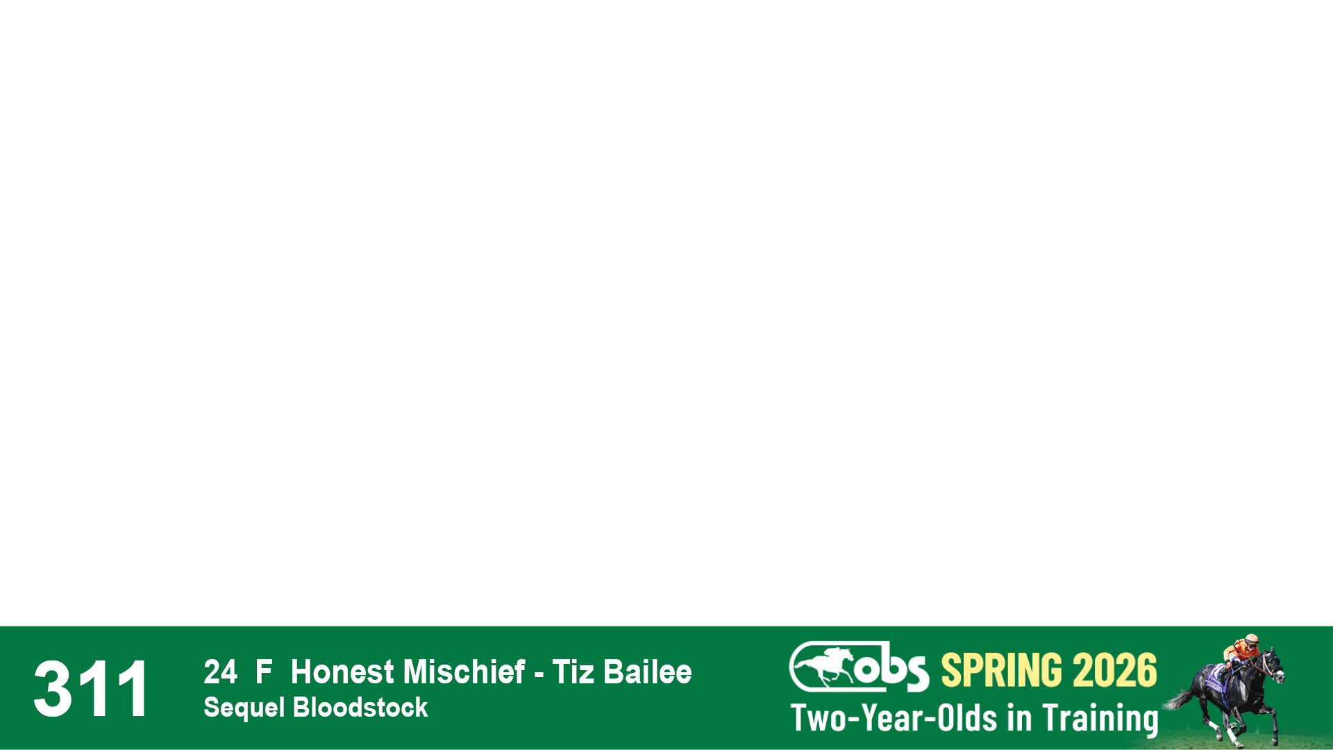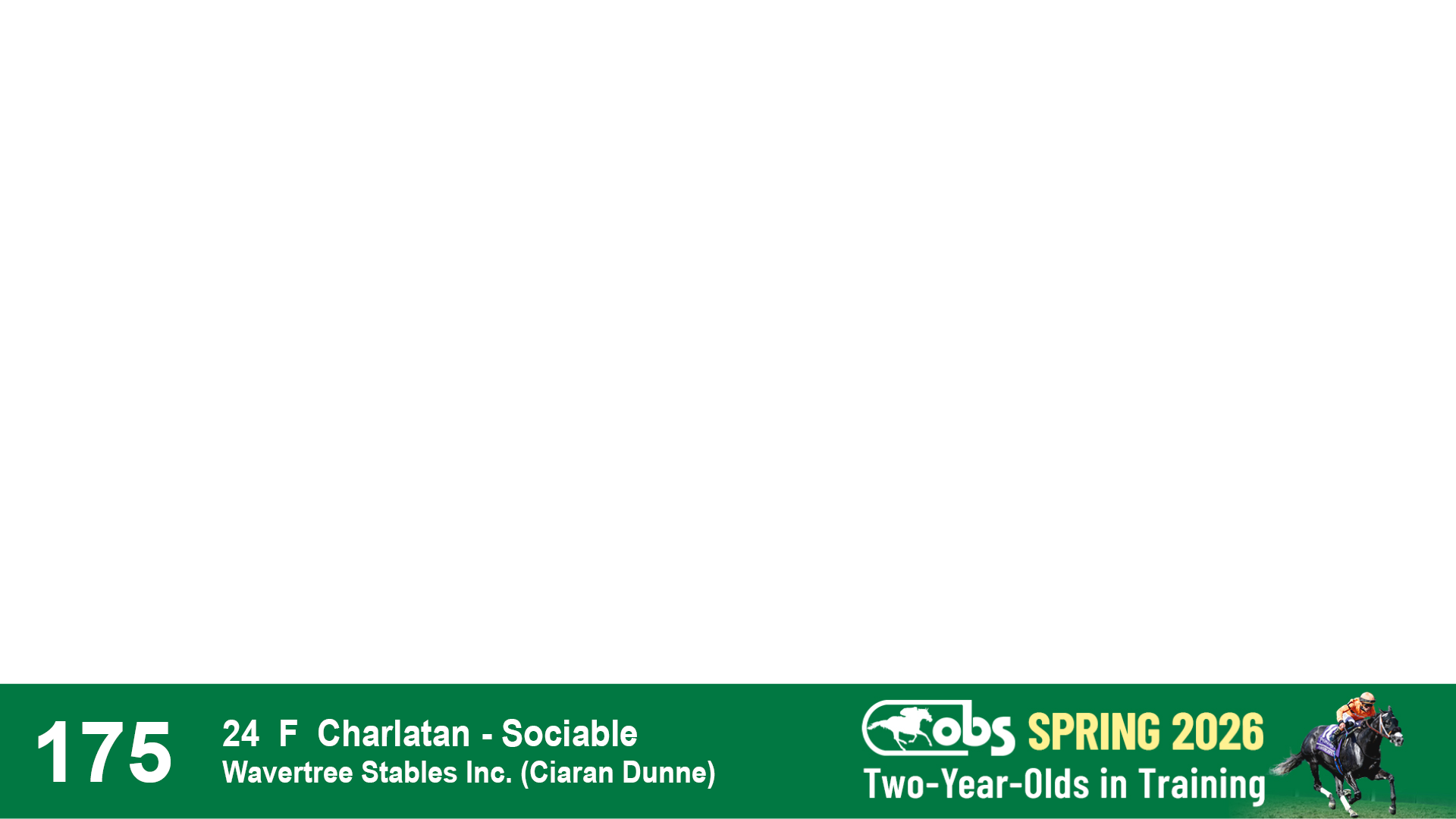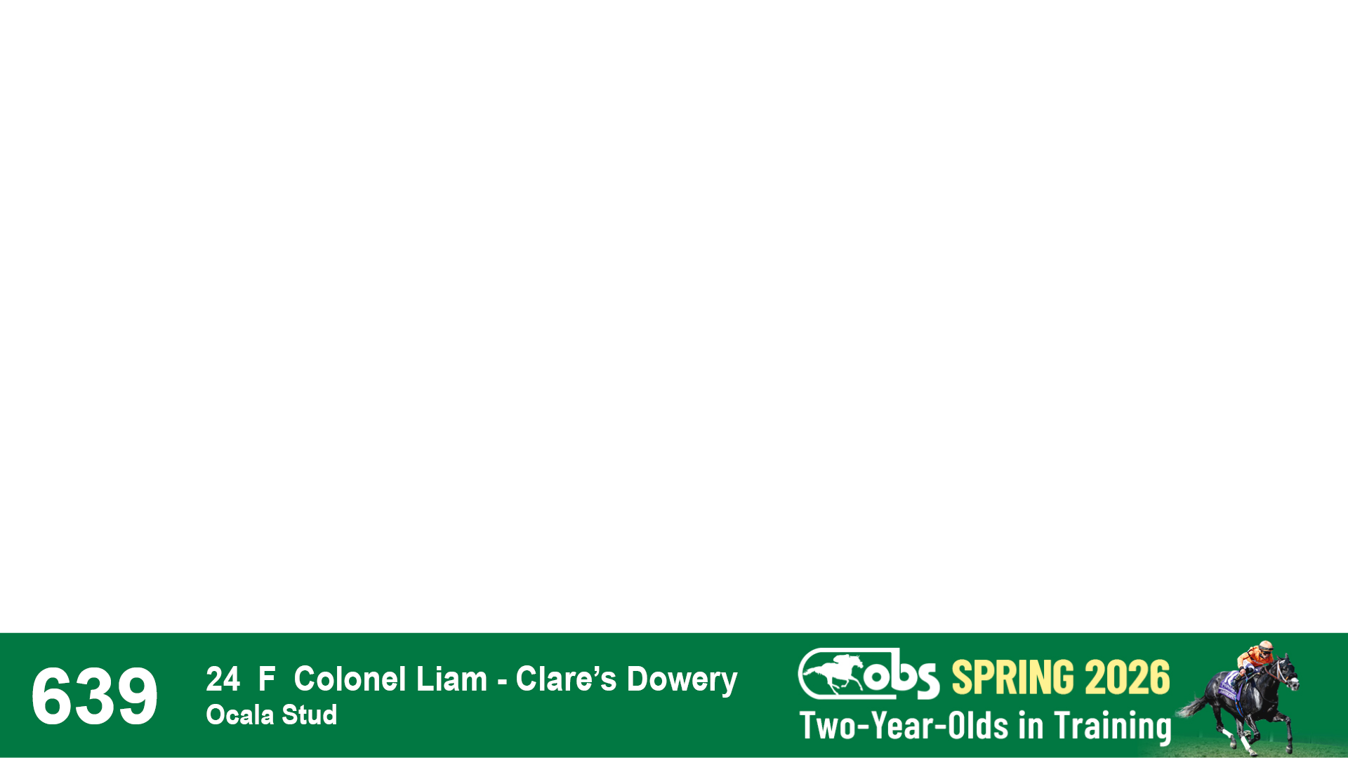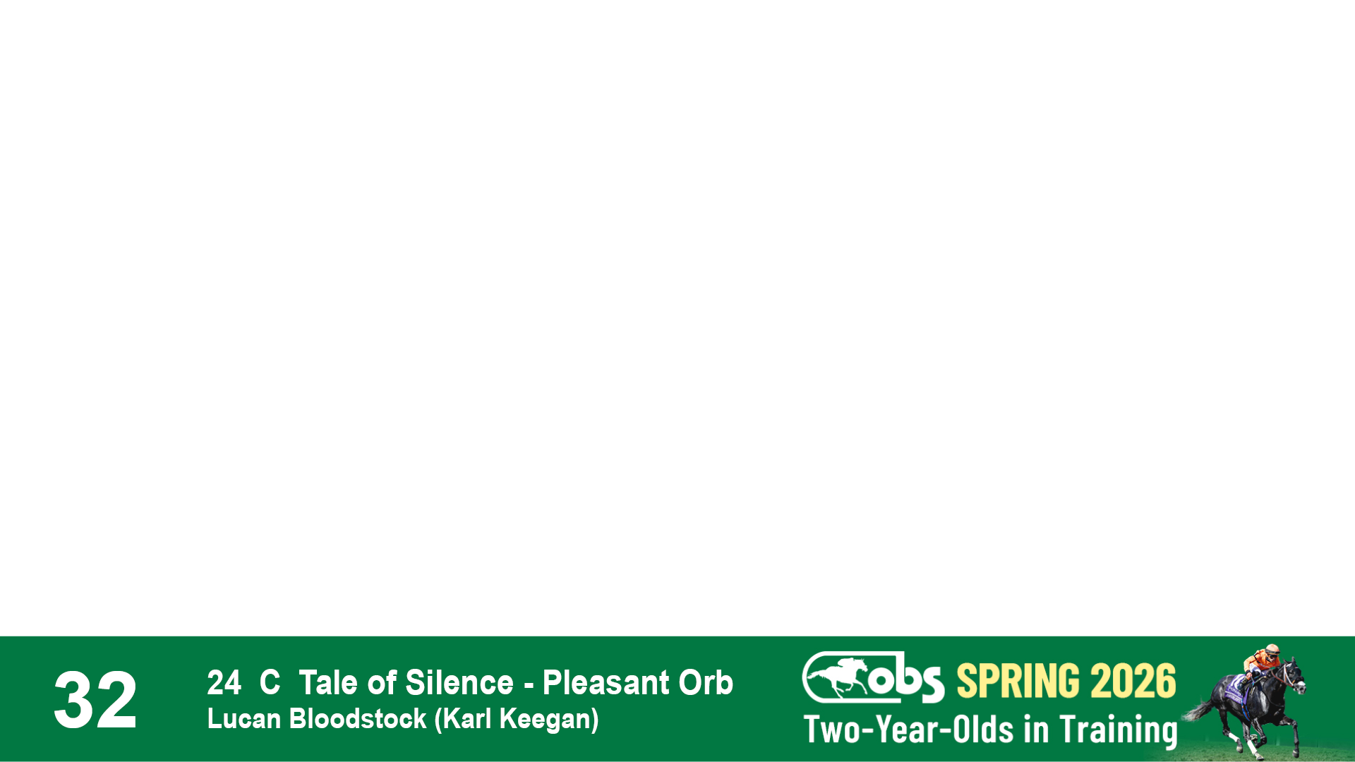 | 32 | Slate | Lower-Third | 3/3/2024 | C | Tale of Silence | Pleasant Orb | Lucan Bloodstock (Karl Keegan), Agent | 107 | 1055 | 839 | 565 | |