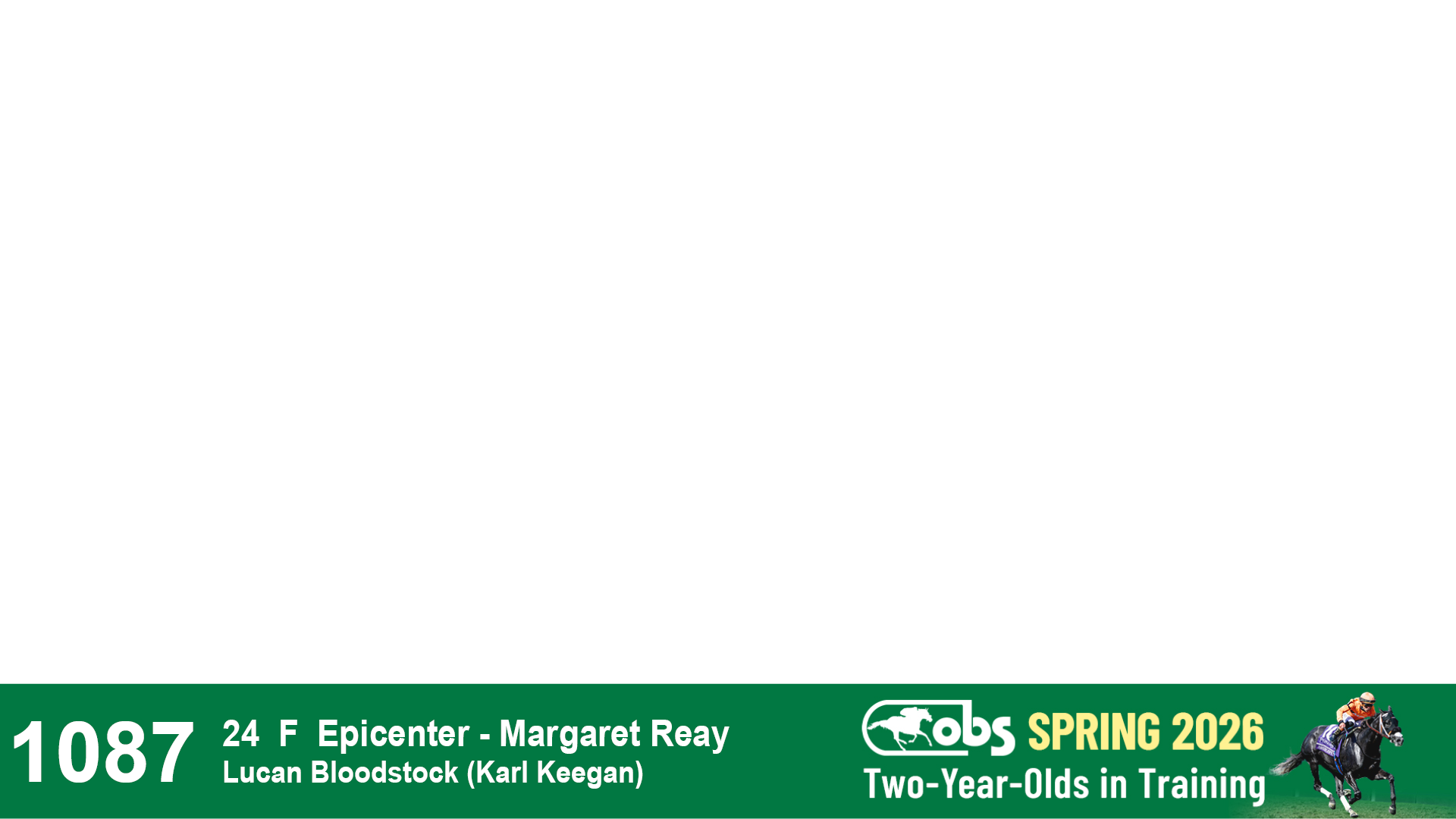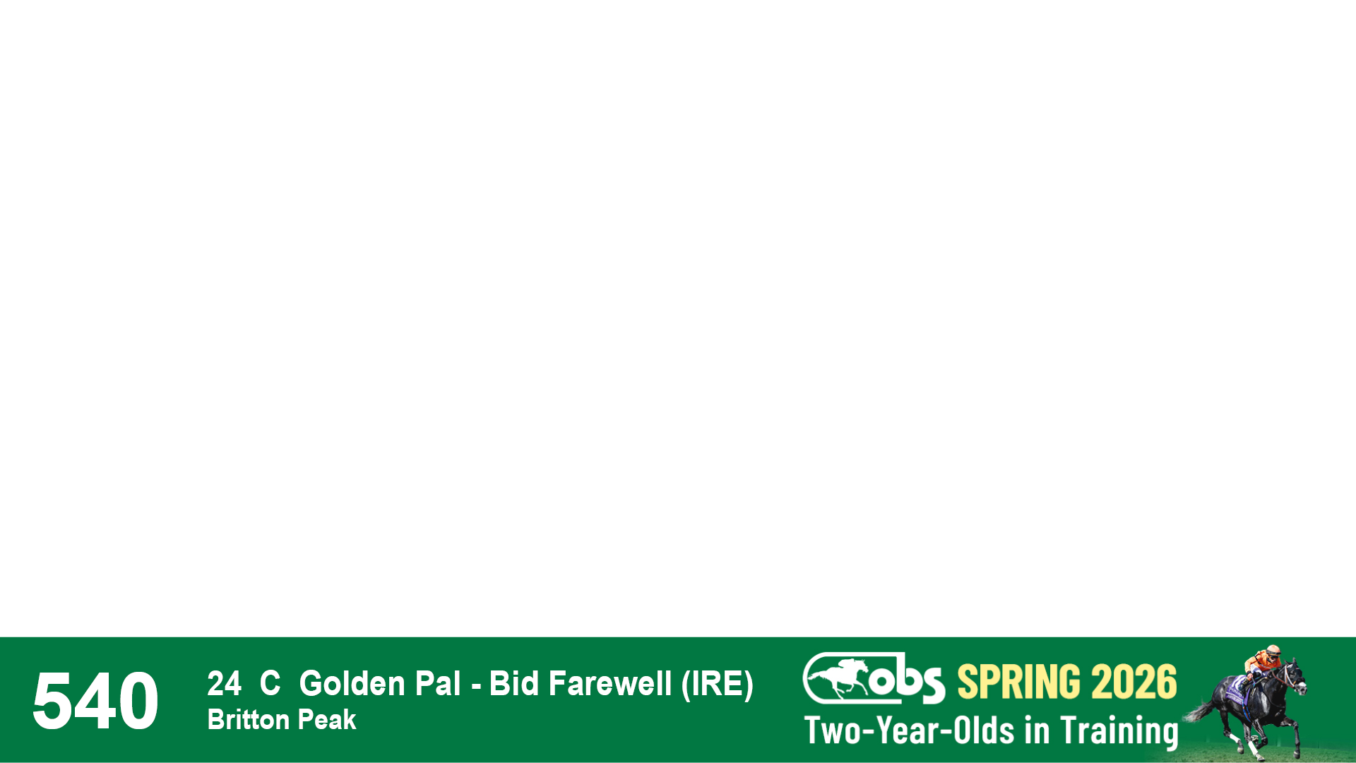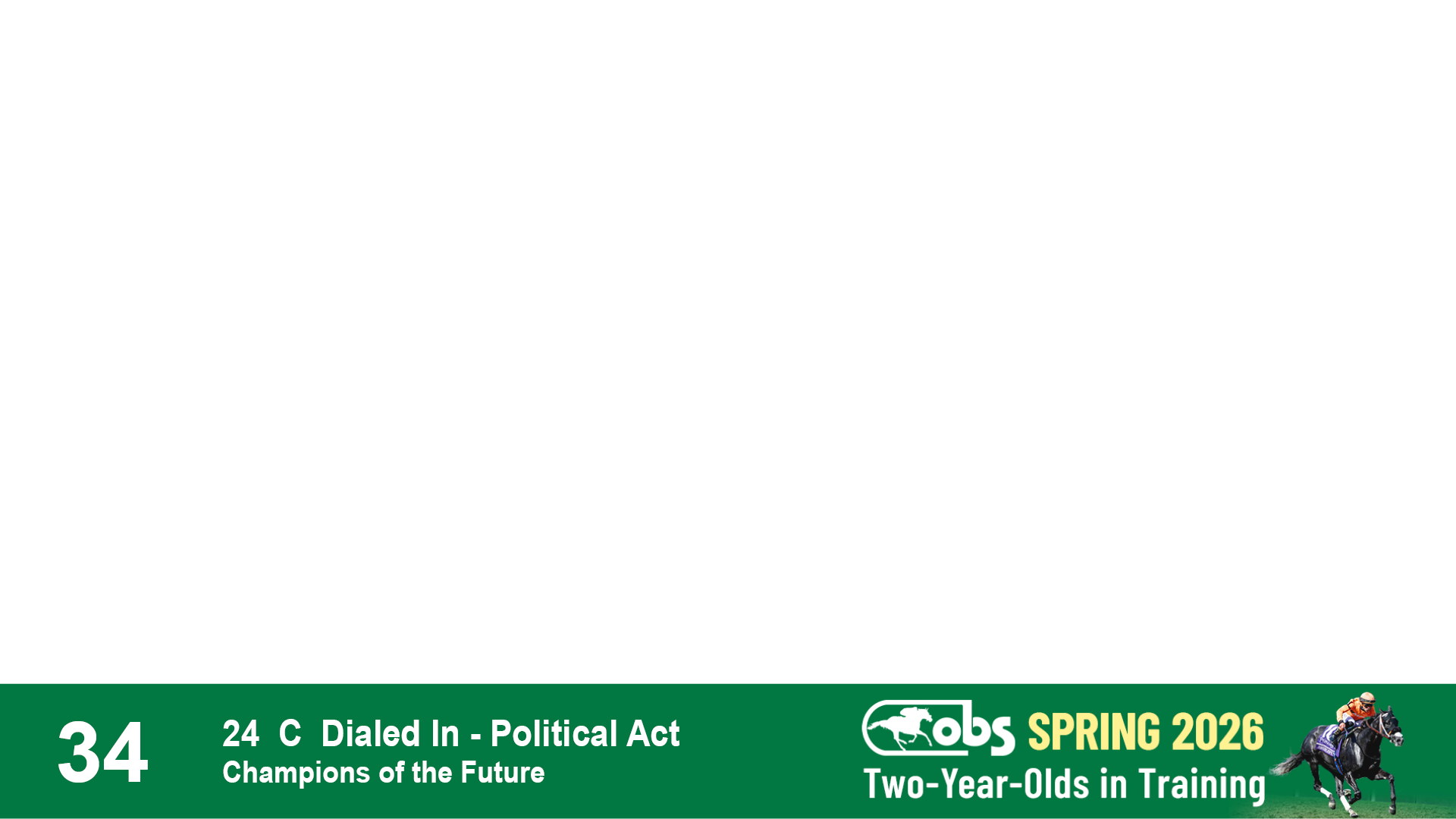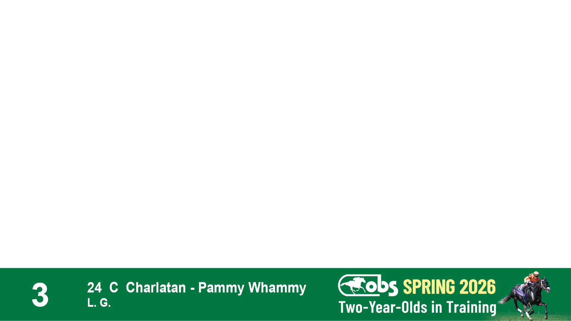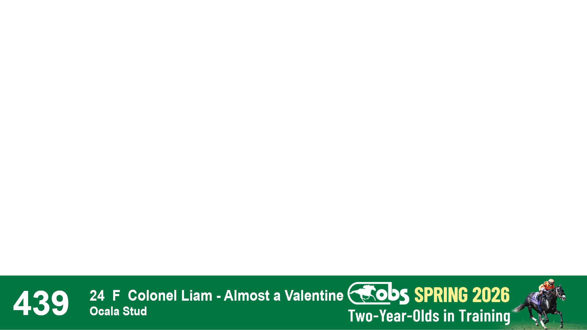 | 32 | Slate | Lower-Third | 3/3/2024 | C | Tale of Silence | Pleasant Orb | Lucan Bloodstock (Karl Keegan), Agent | 107 | 1055 | 839 | 565 | |