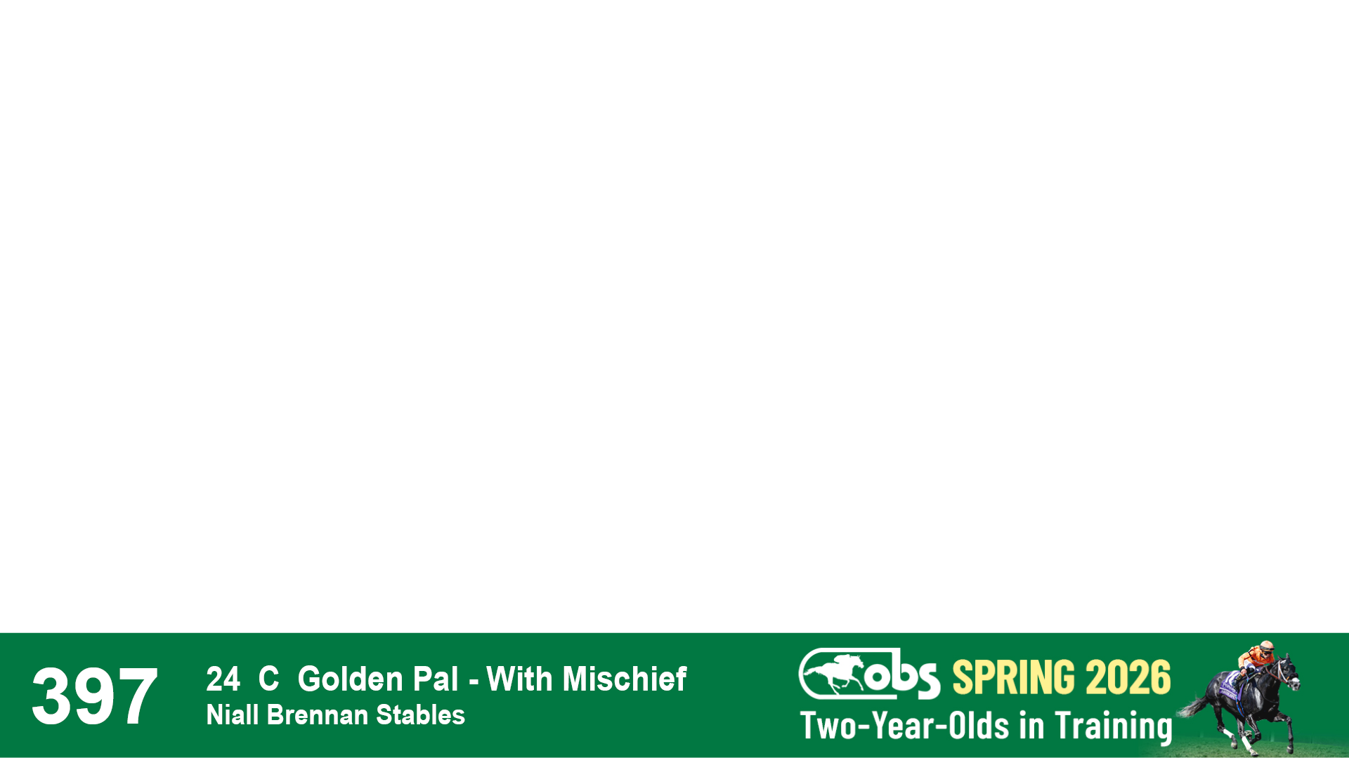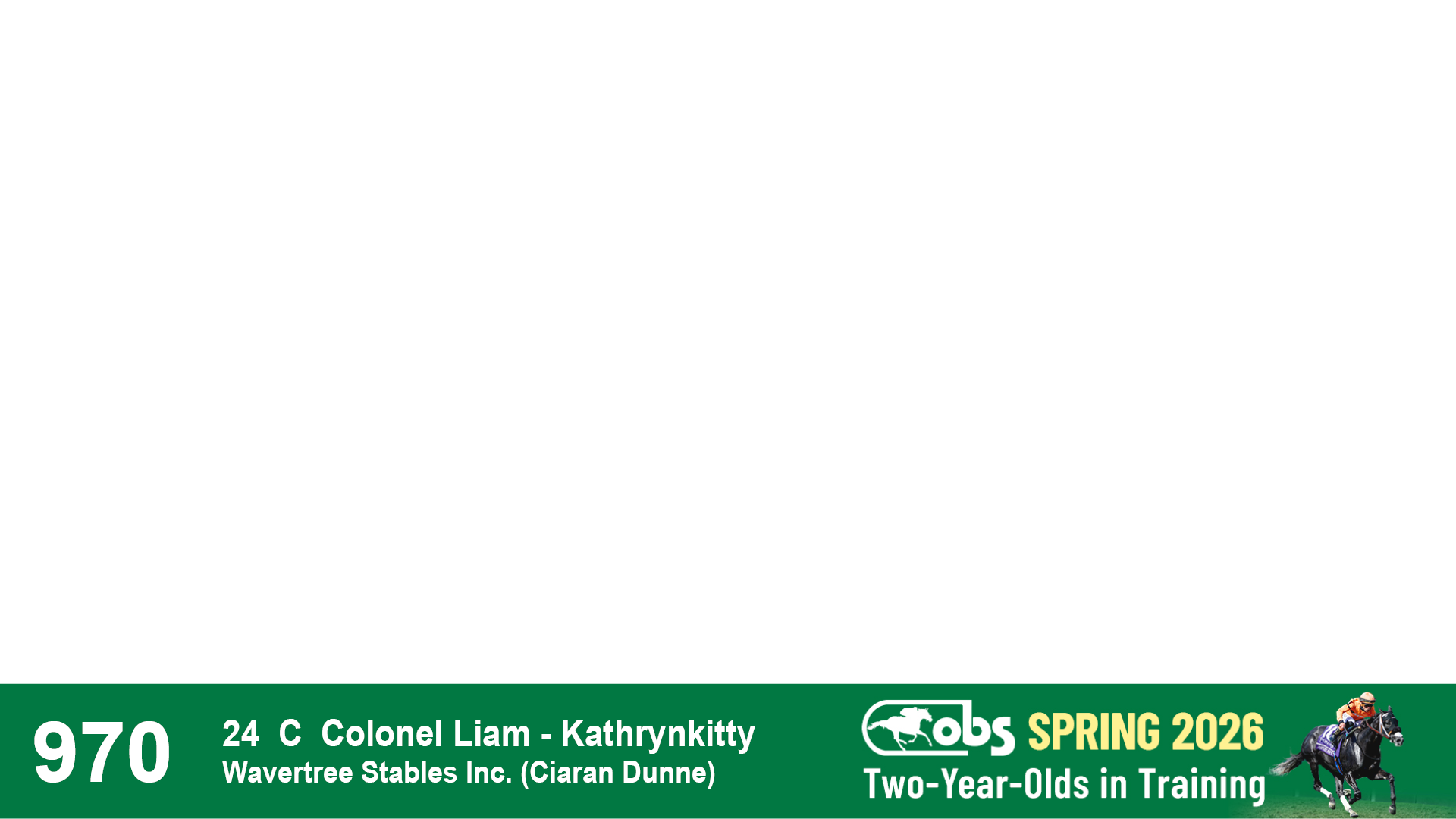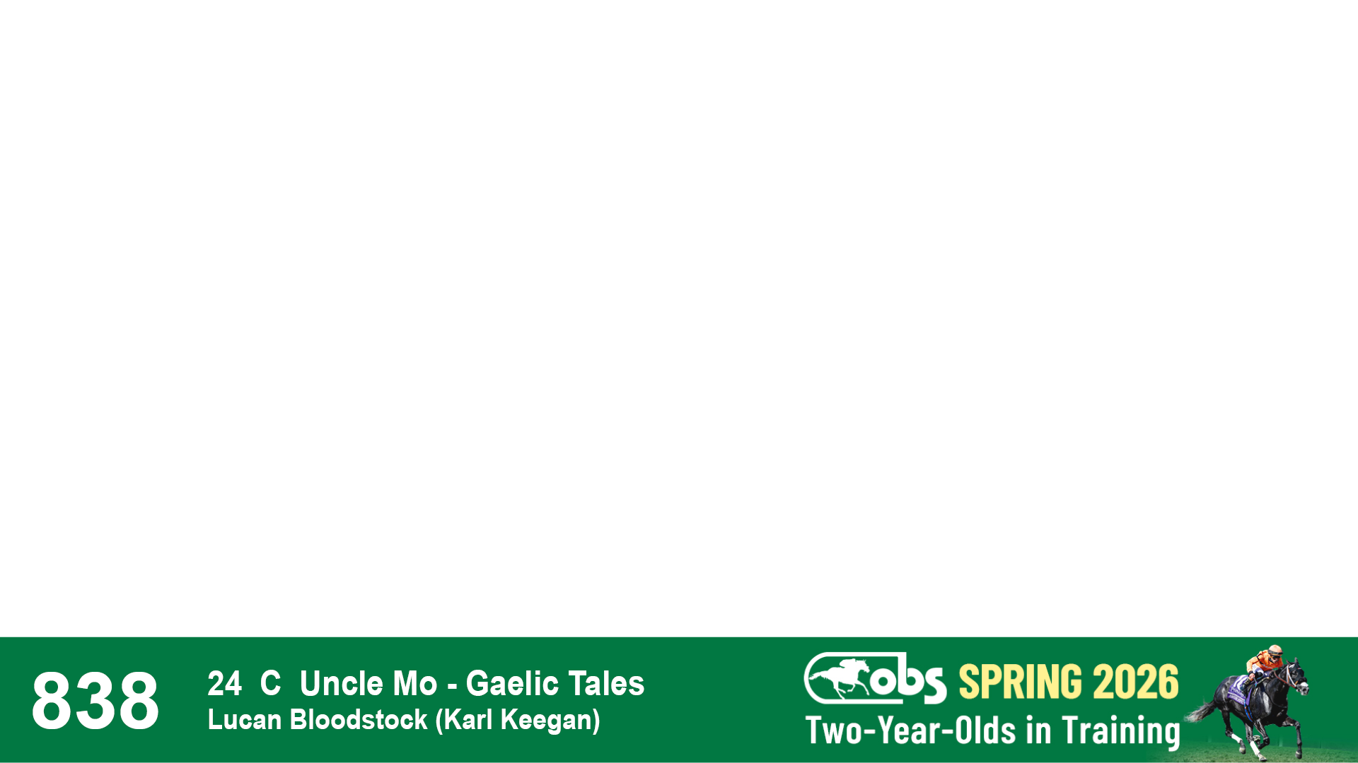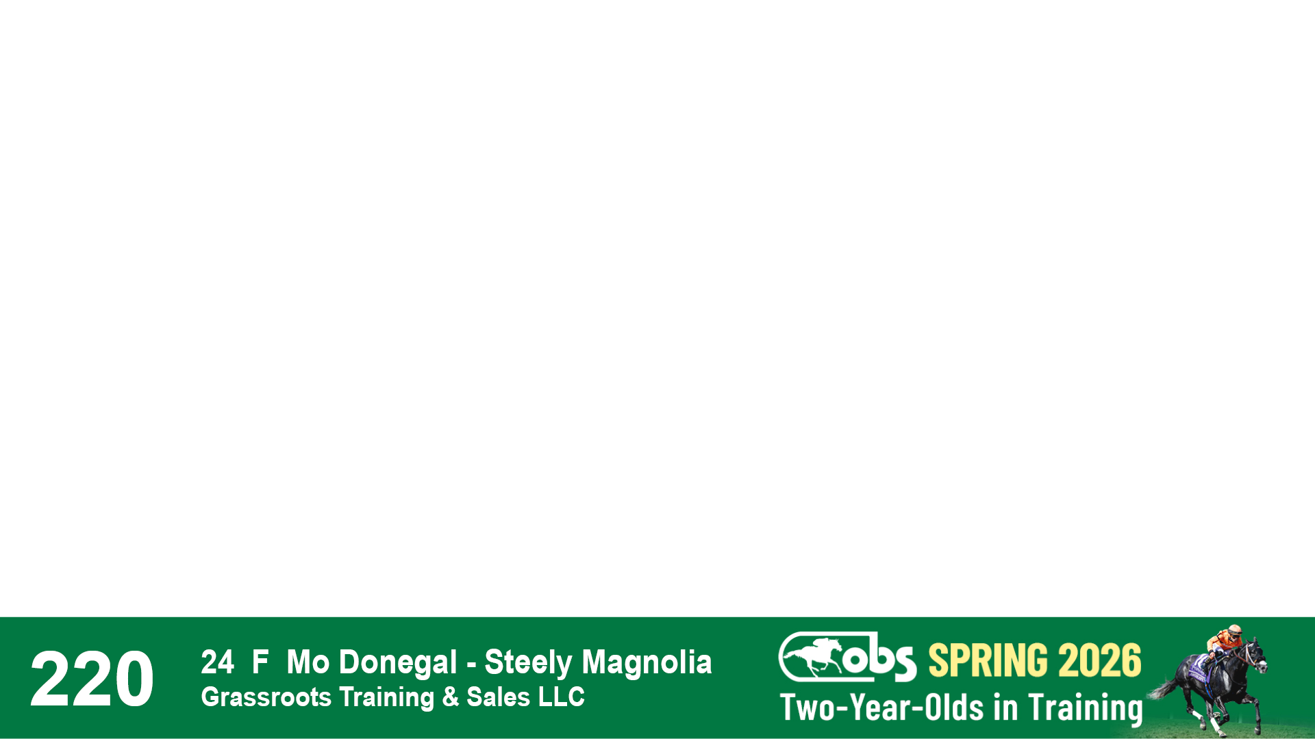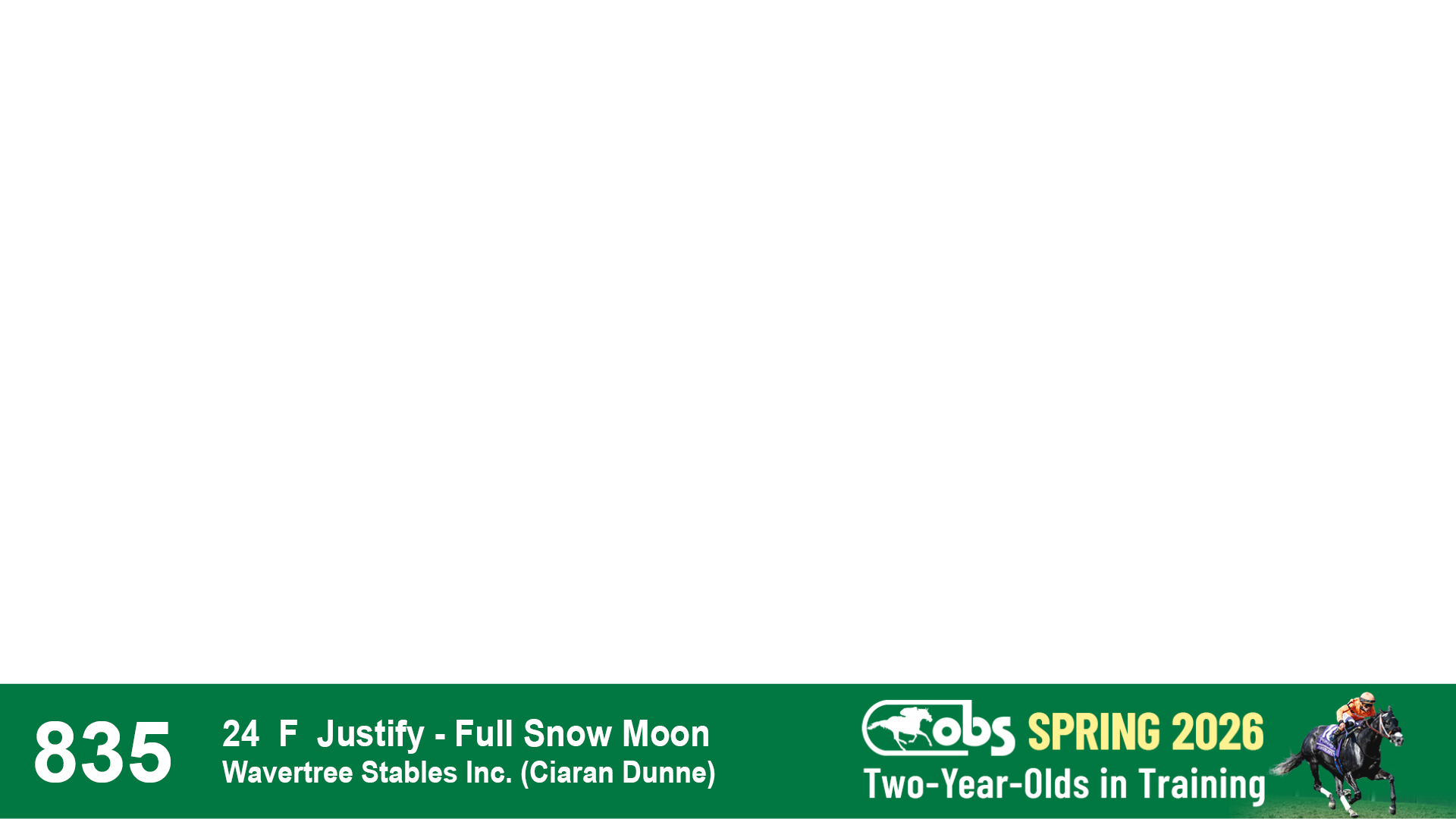 | 32 | Slate | Lower-Third | 3/3/2024 | C | Tale of Silence | Pleasant Orb | Lucan Bloodstock (Karl Keegan), Agent | 107 | 1055 | 839 | 565 | |