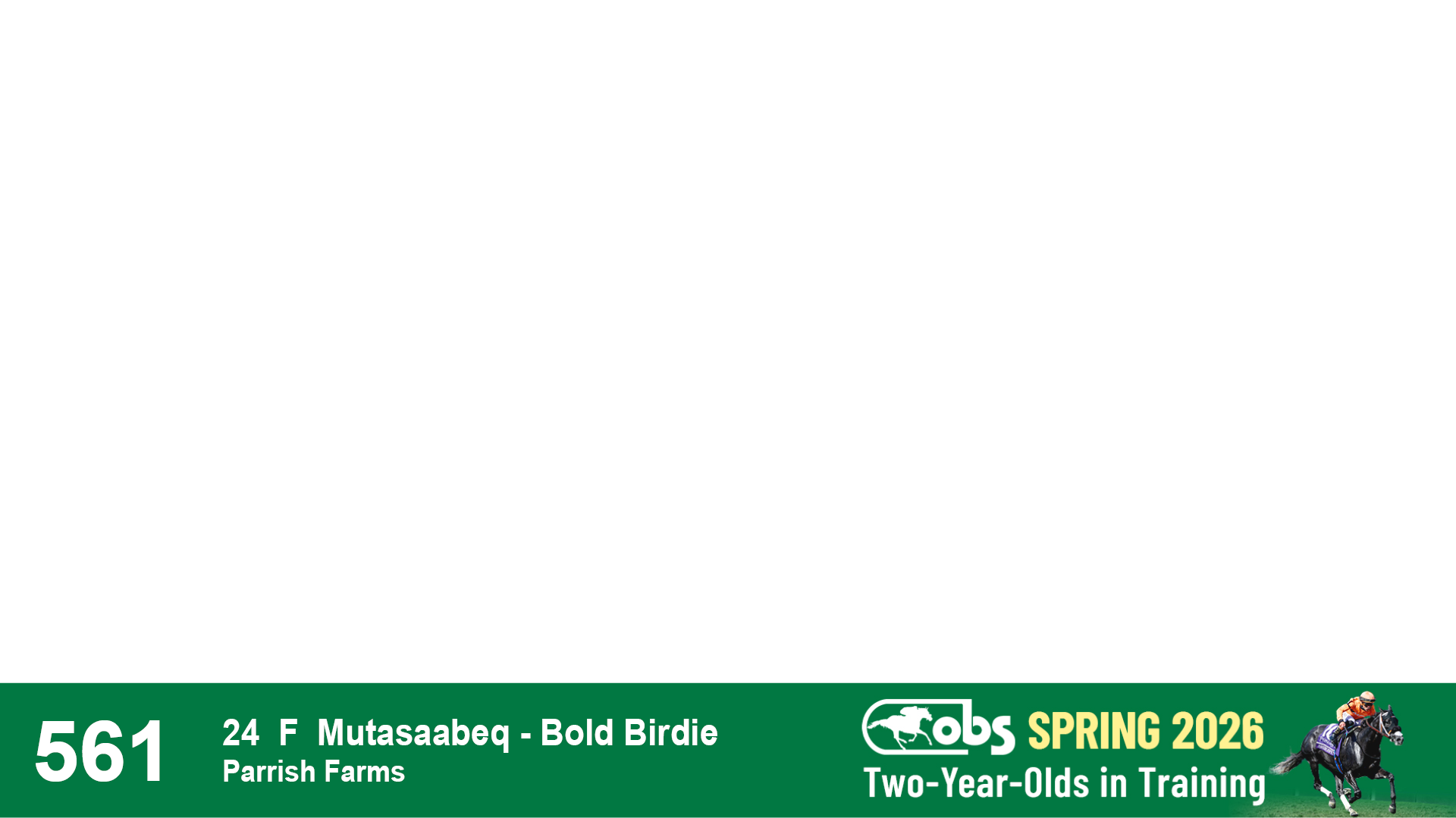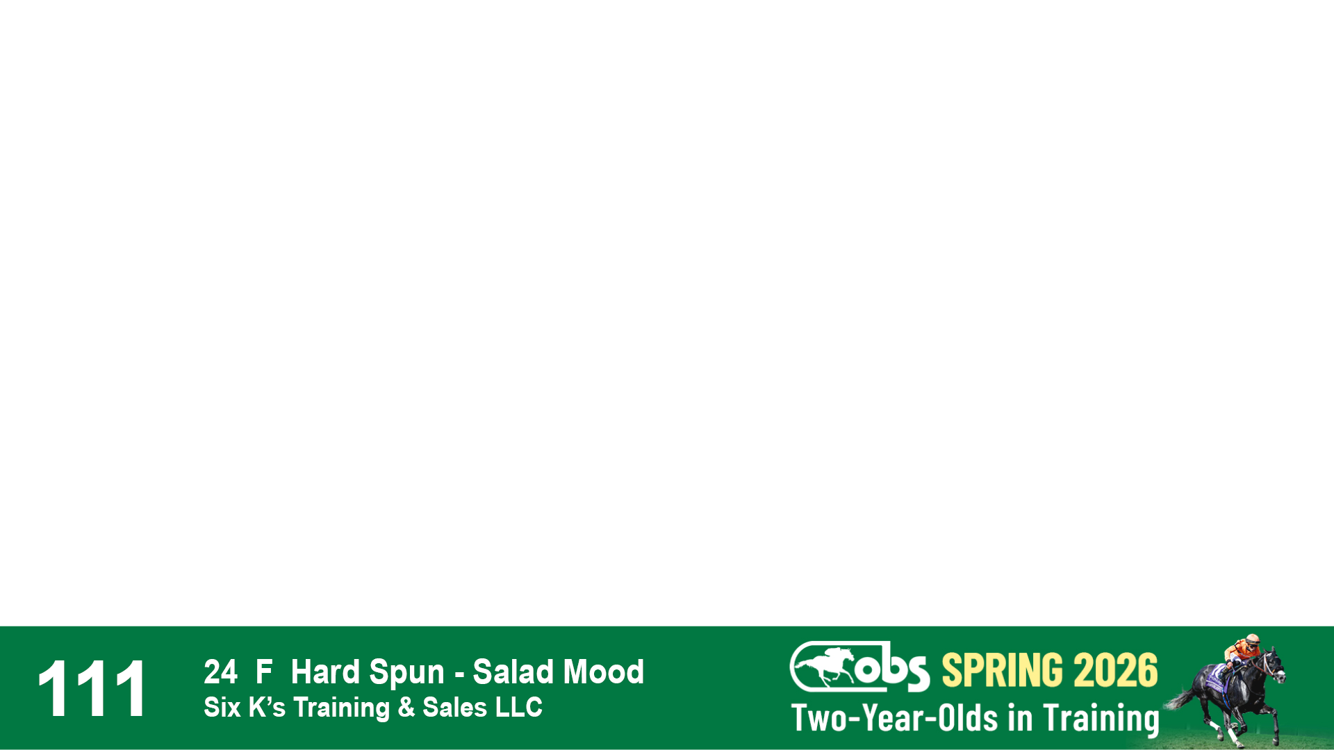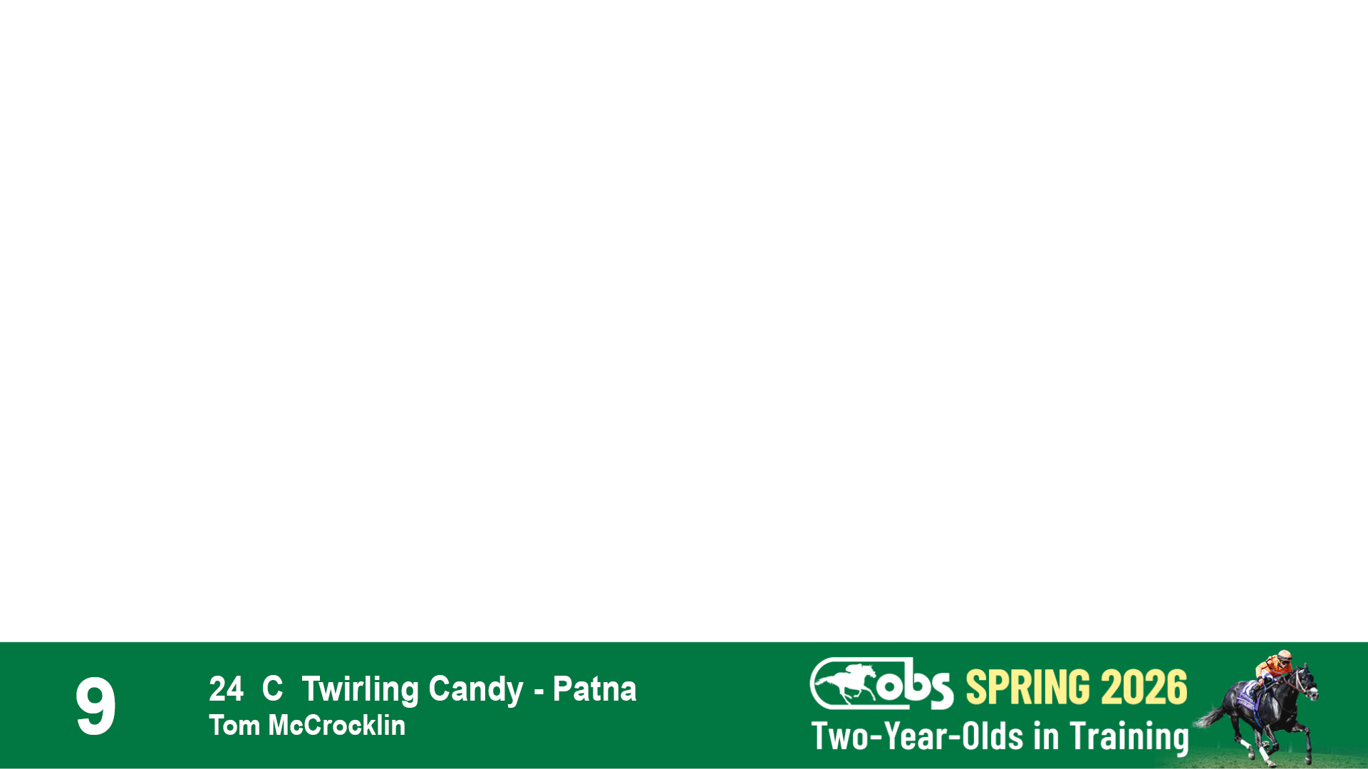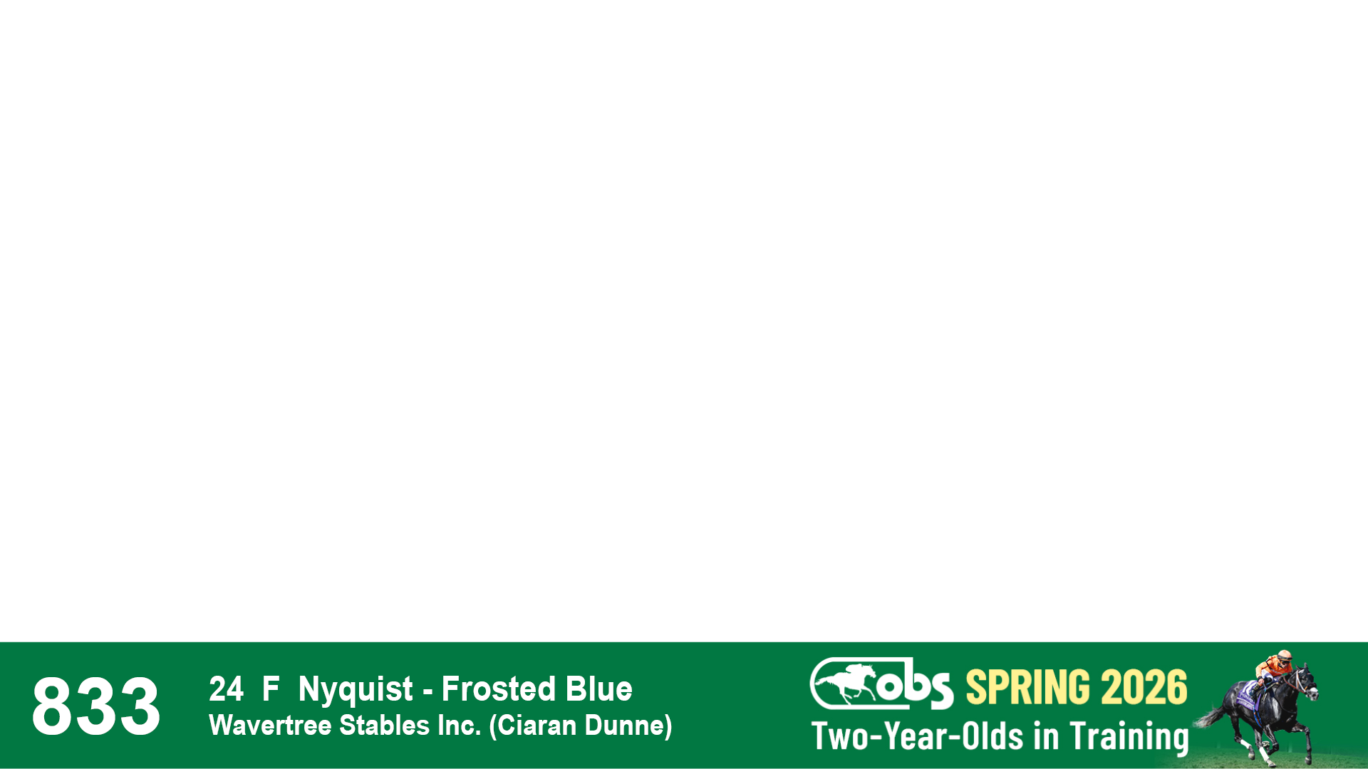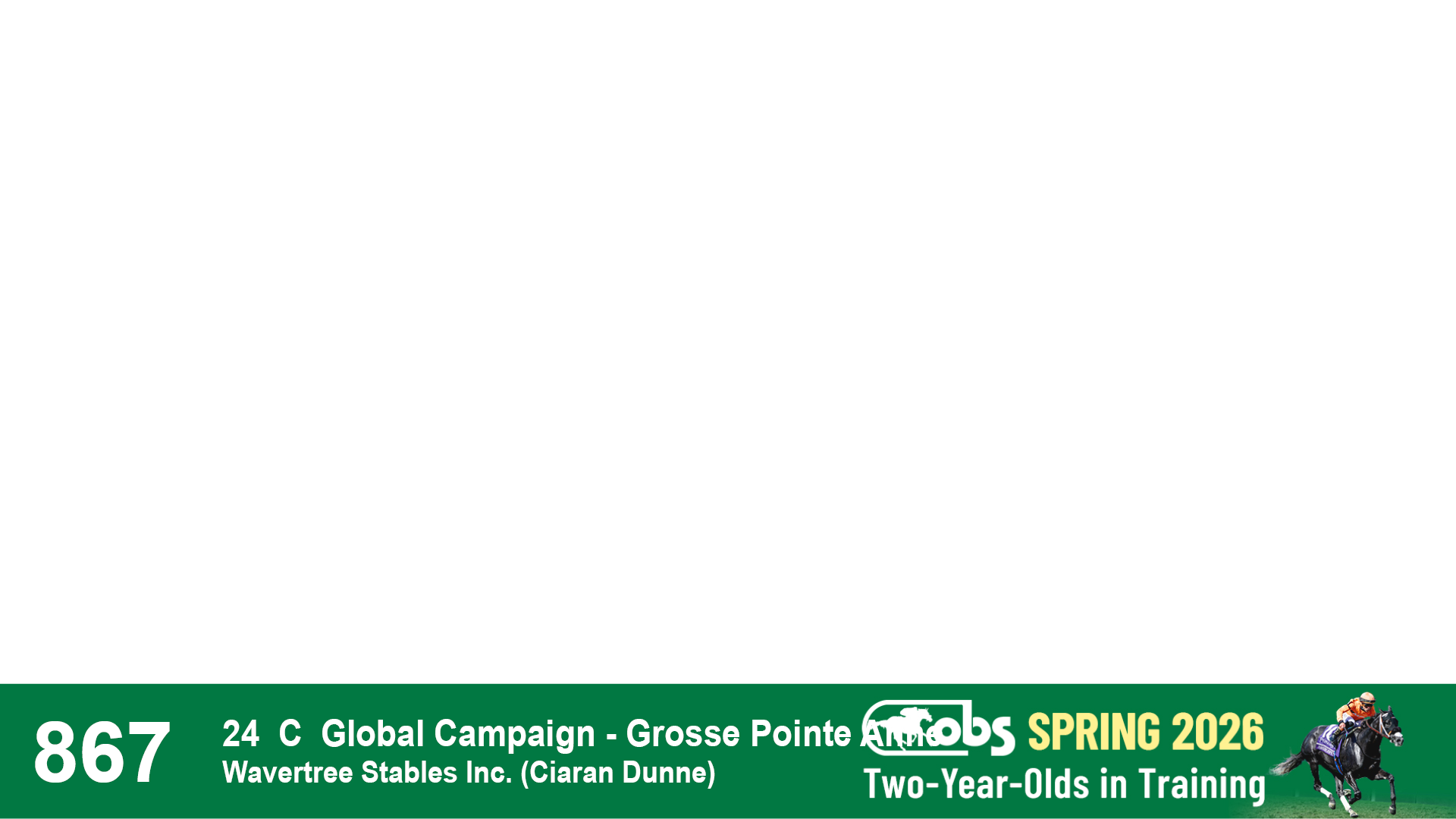 | 32 | Slate | Lower-Third | 3/3/2024 | C | Tale of Silence | Pleasant Orb | Lucan Bloodstock (Karl Keegan), Agent | 107 | 1055 | 839 | 565 | |