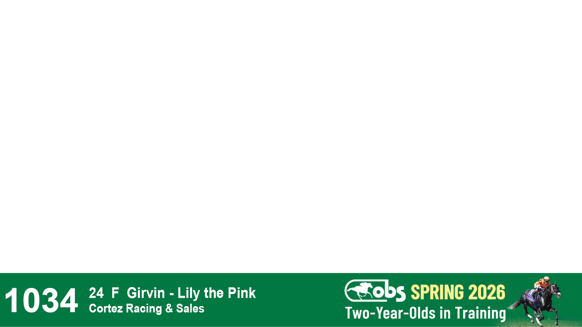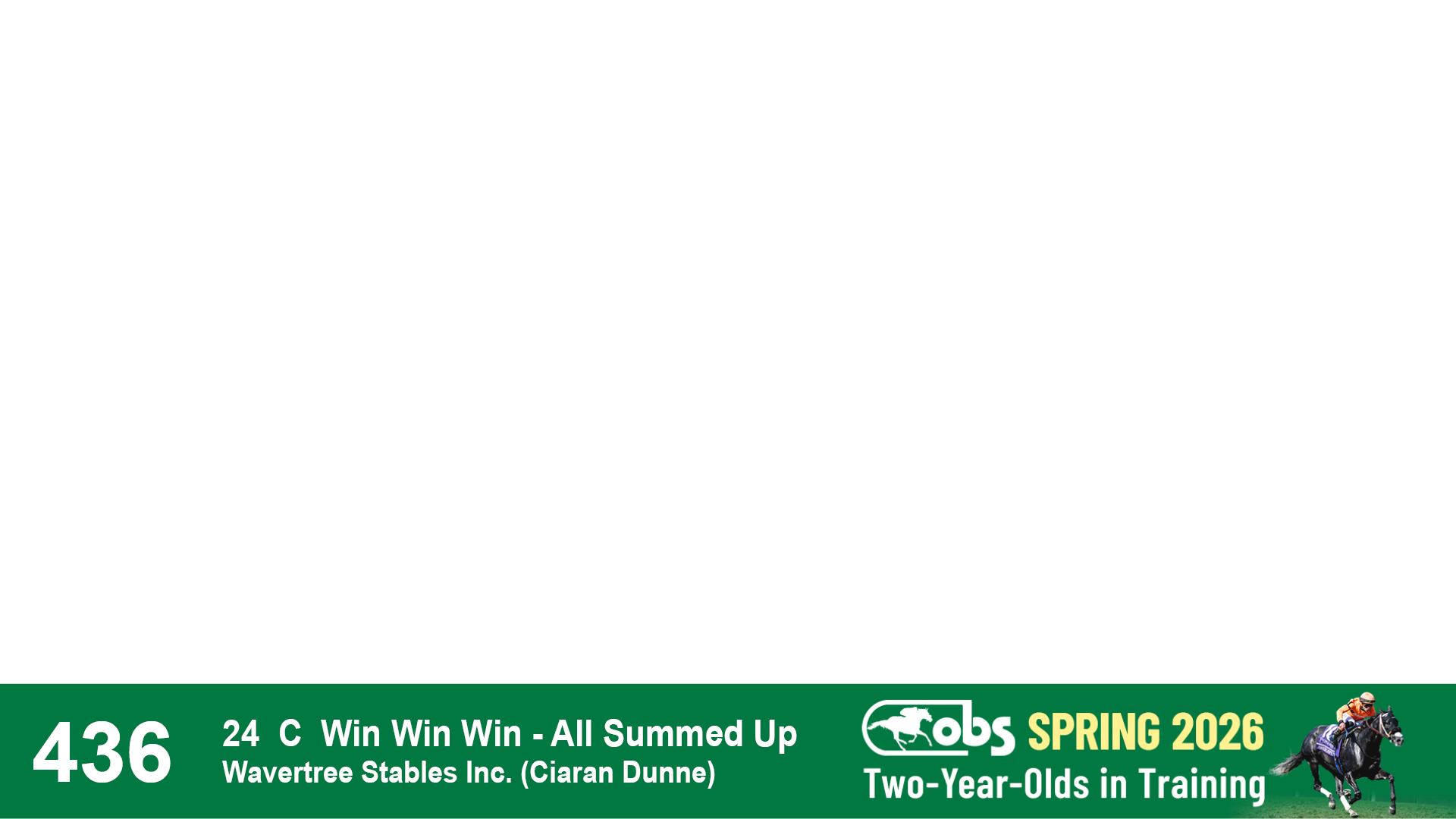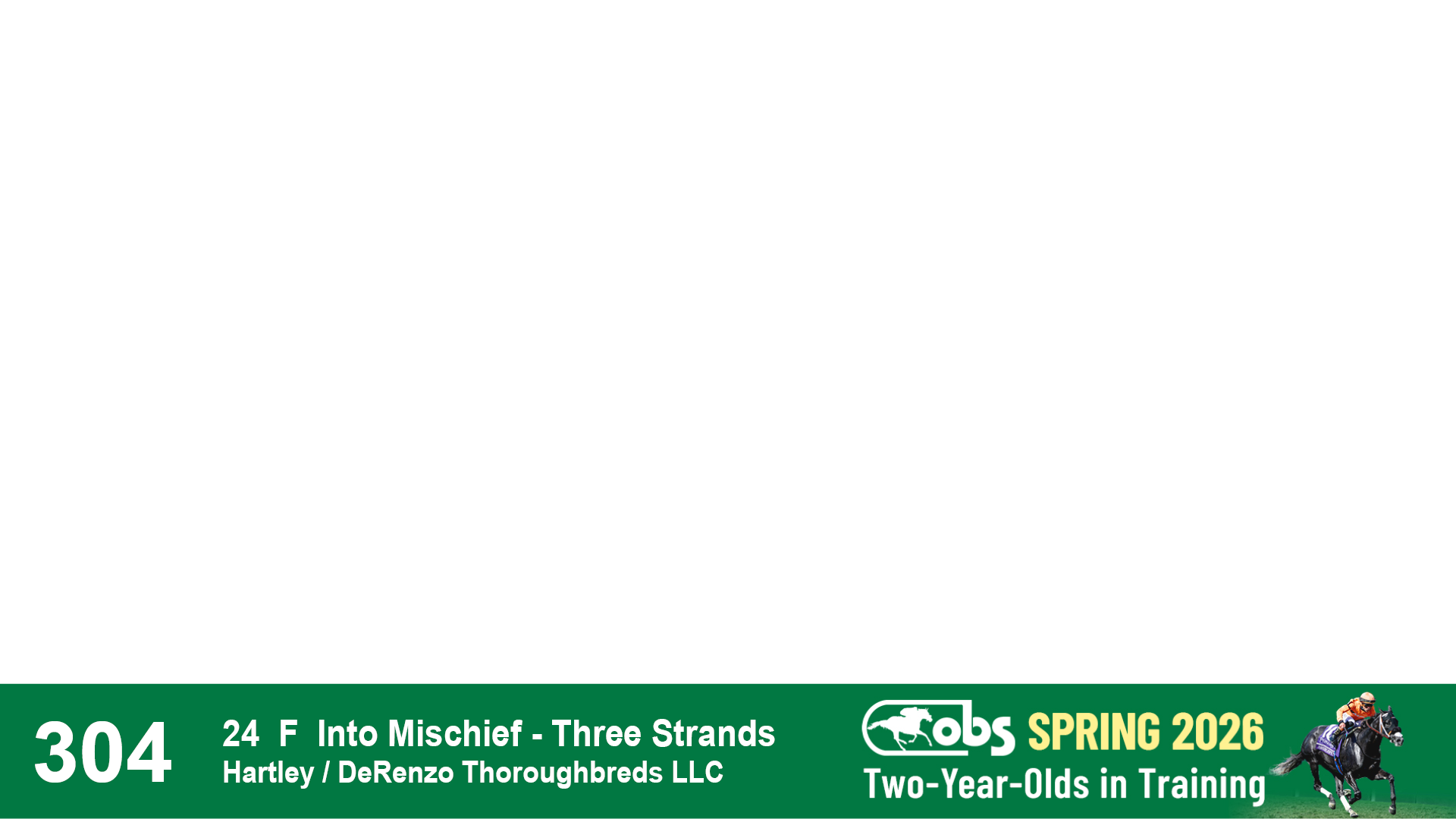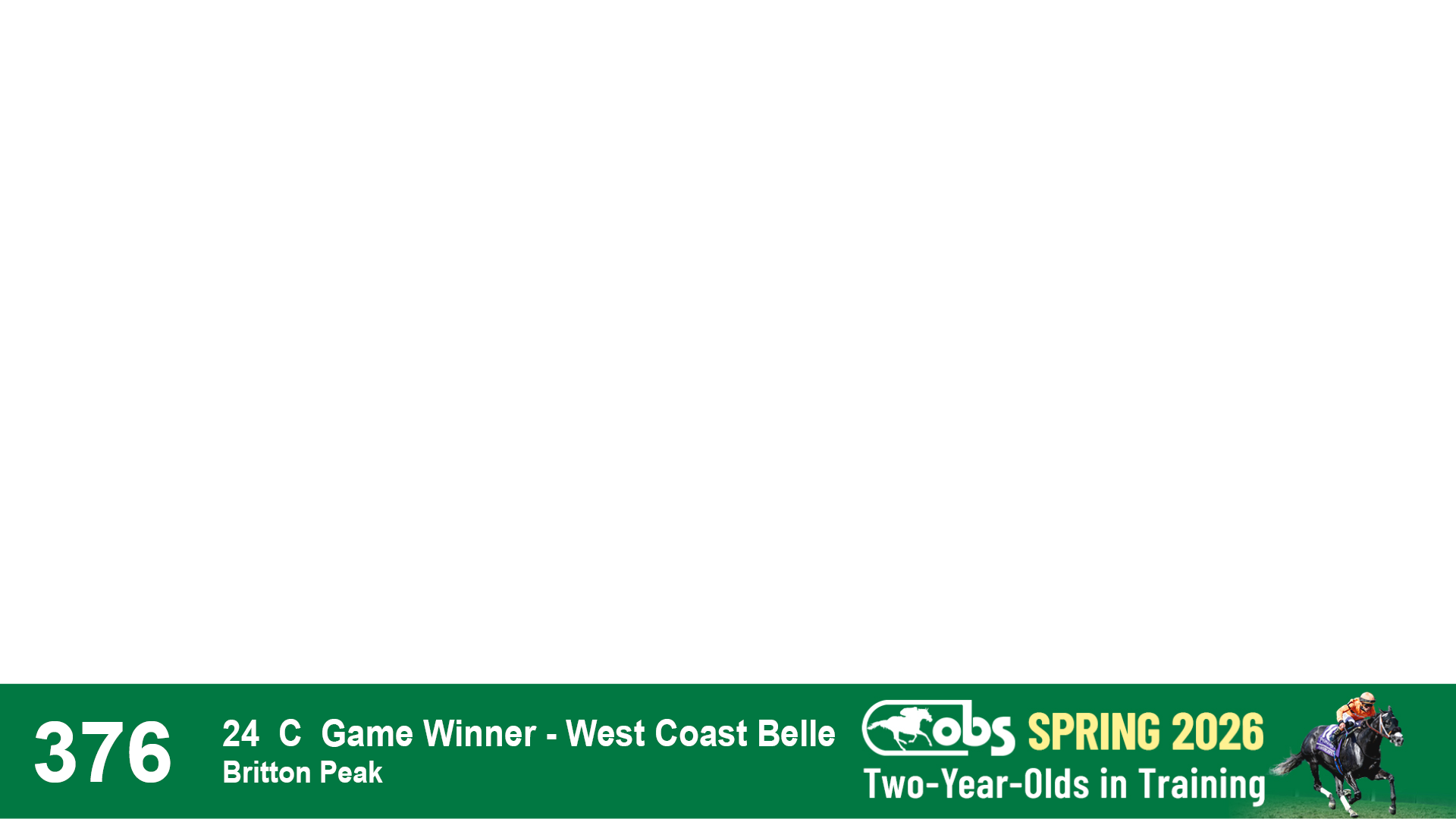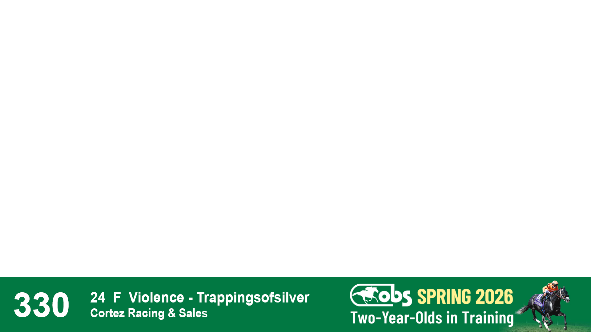 | 32 | Slate | Lower-Third | 3/3/2024 | C | Tale of Silence | Pleasant Orb | Lucan Bloodstock (Karl Keegan), Agent | 107 | 1055 | 839 | 565 | |