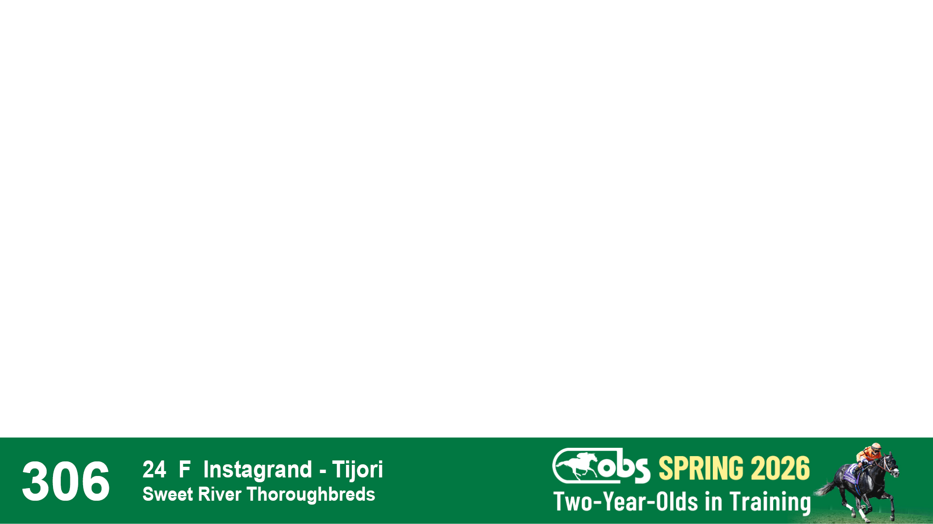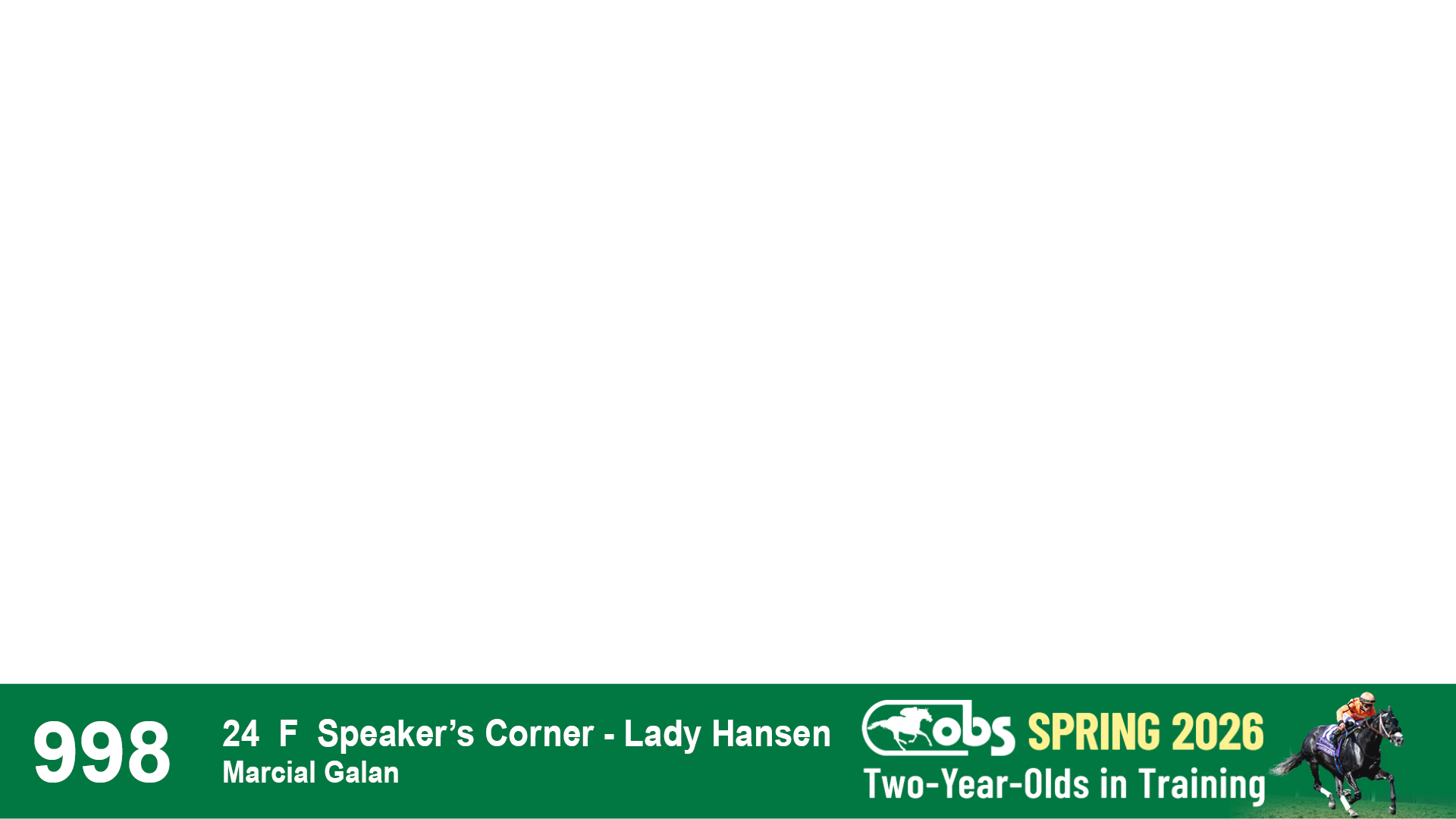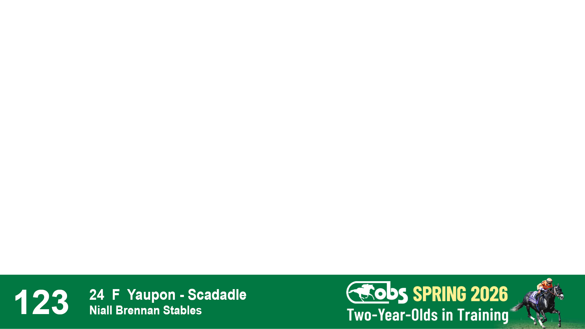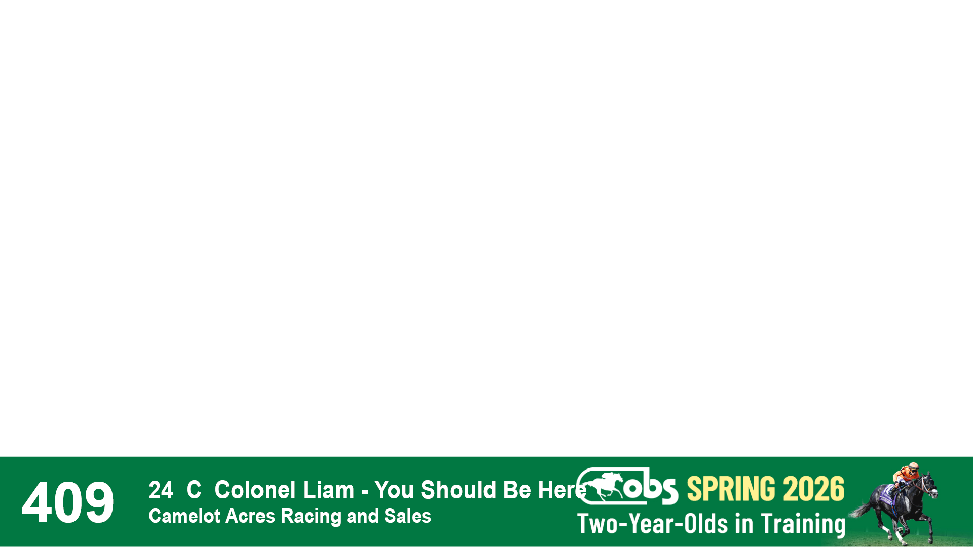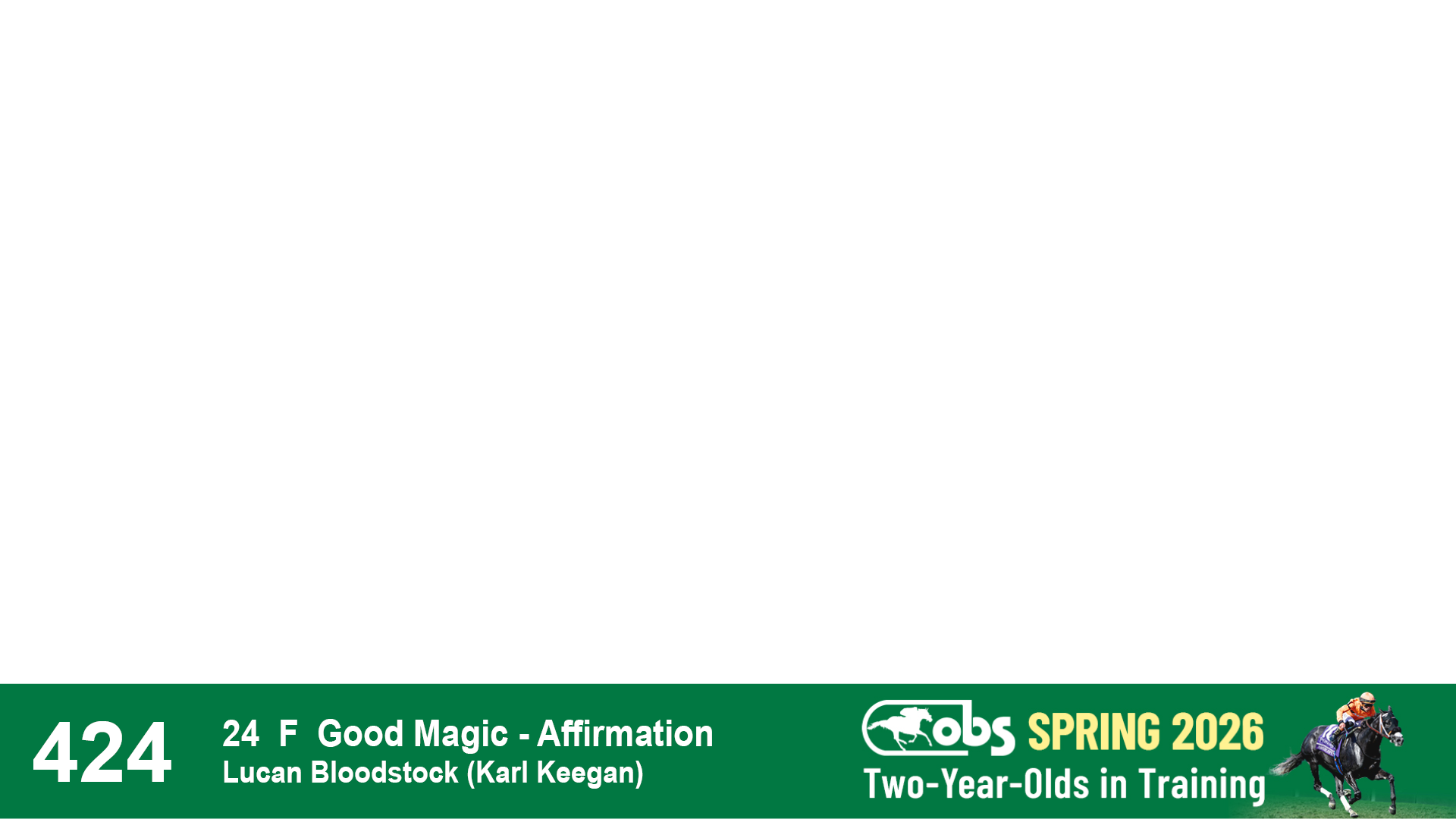 | 32 | Slate | Lower-Third | 3/3/2024 | C | Tale of Silence | Pleasant Orb | Lucan Bloodstock (Karl Keegan), Agent | 107 | 1055 | 839 | 565 | |