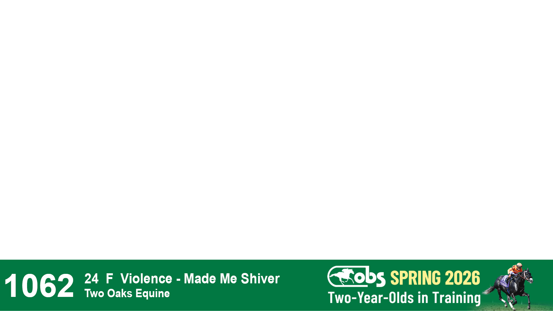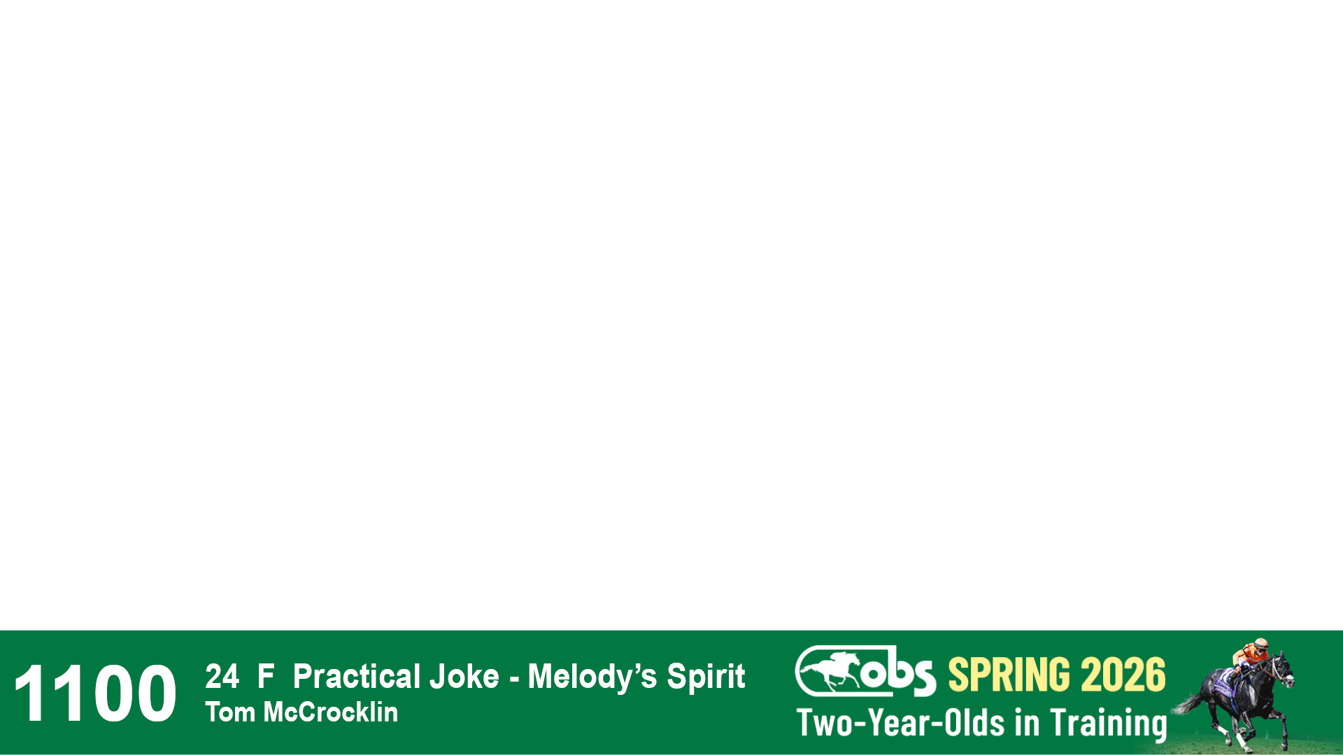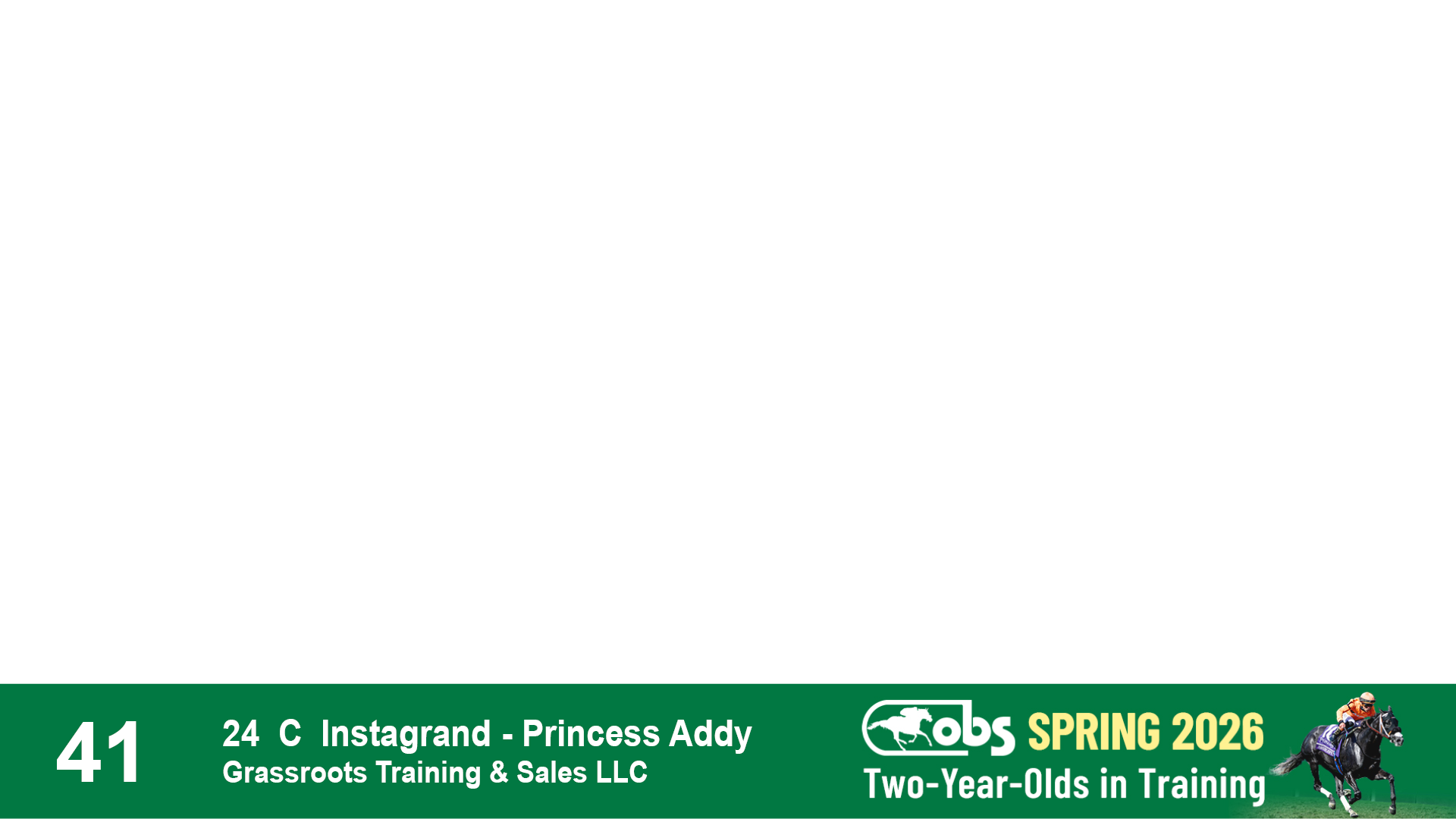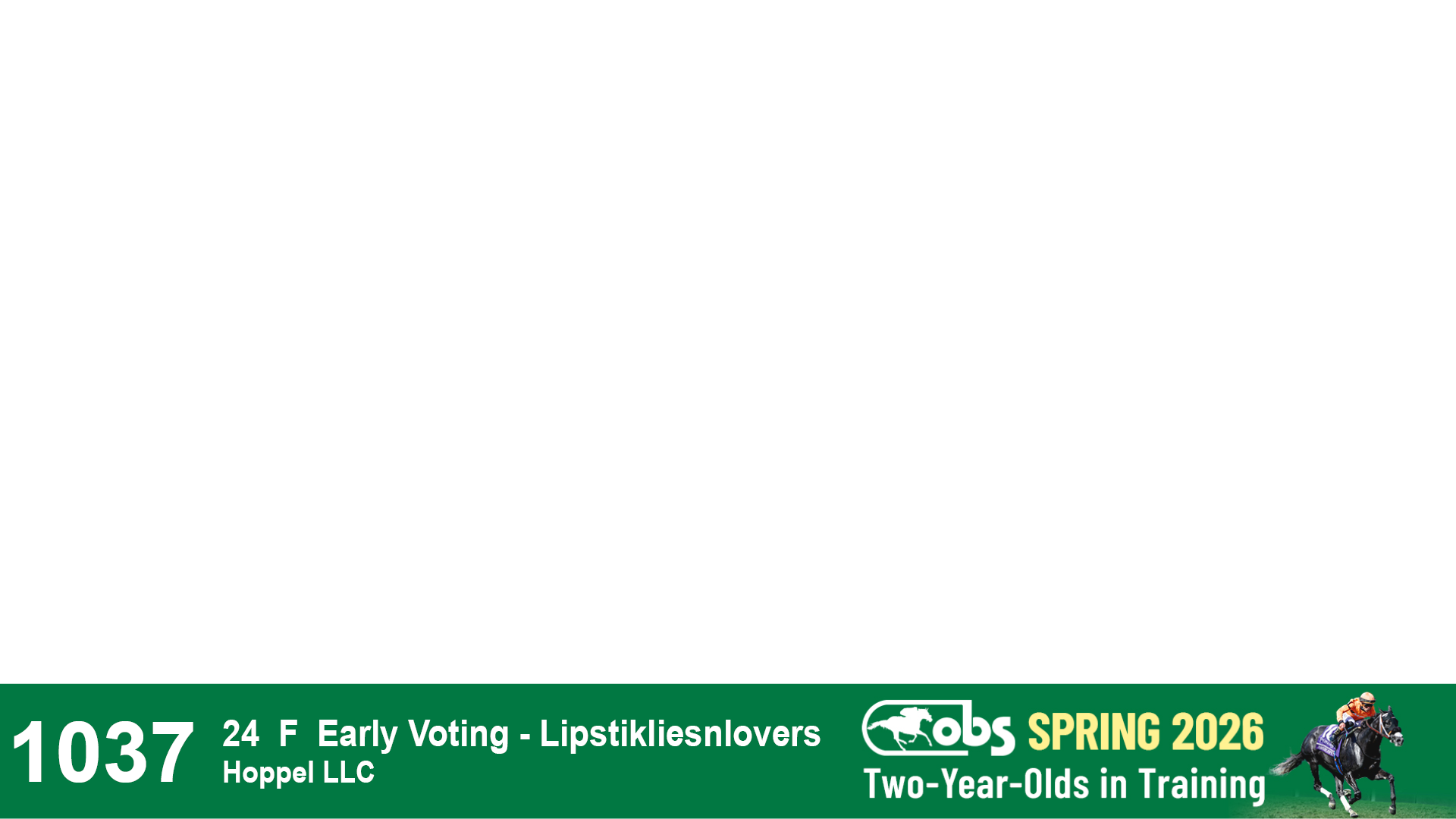 | 32 | Slate | Lower-Third | 3/3/2024 | C | Tale of Silence | Pleasant Orb | Lucan Bloodstock (Karl Keegan), Agent | 107 | 1055 | 839 | 565 | |