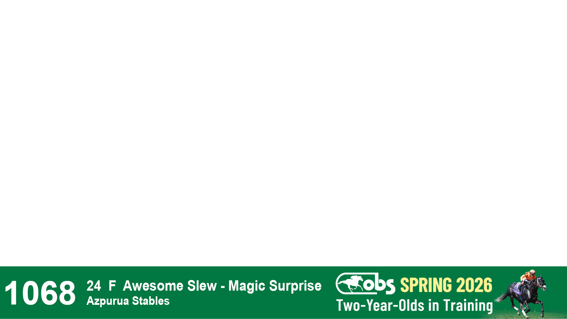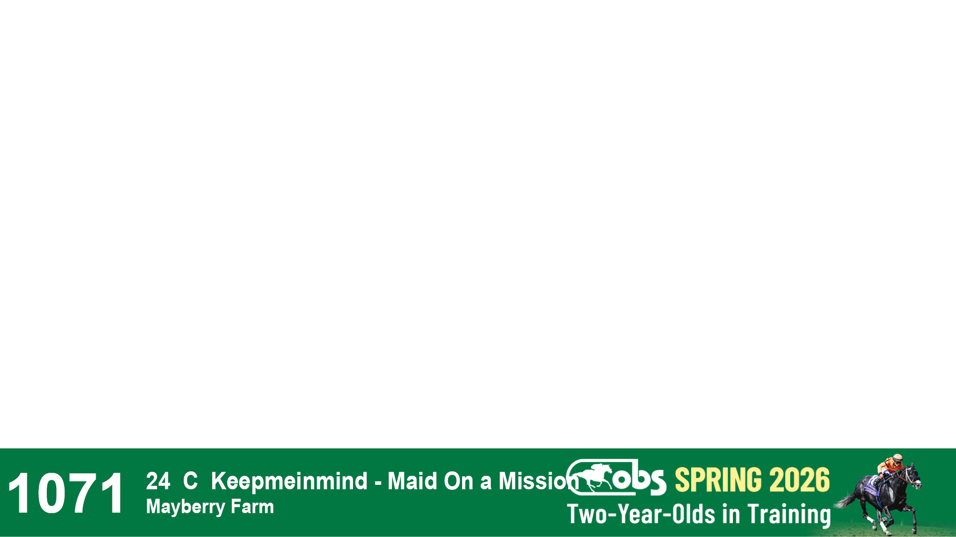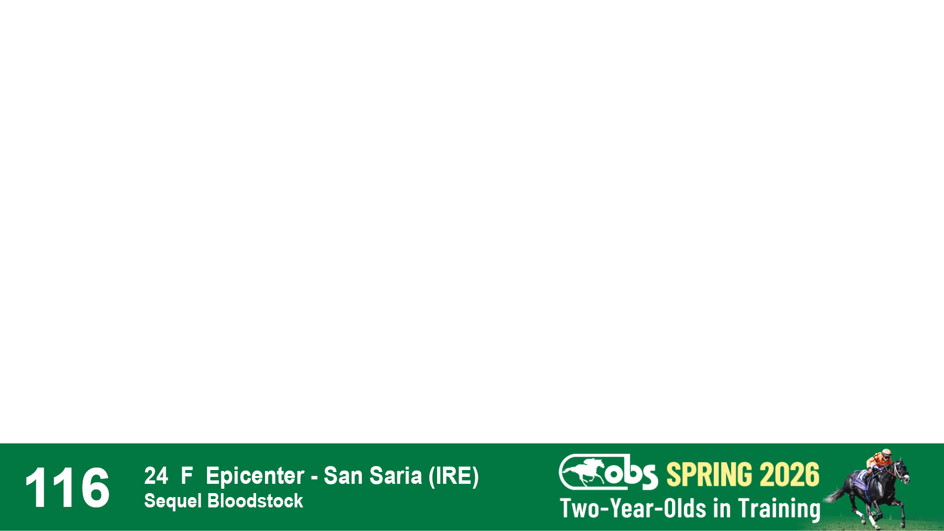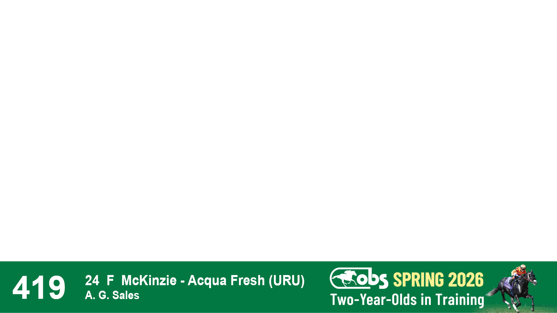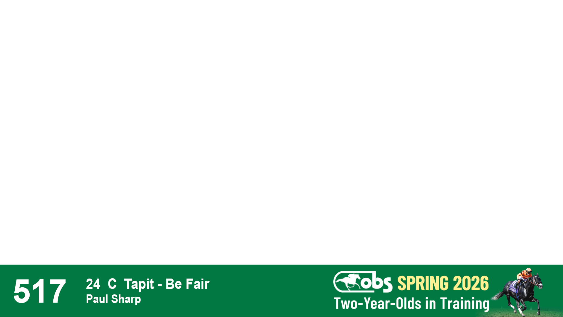 | 32 | Slate | Lower-Third | 3/3/2024 | C | Tale of Silence | Pleasant Orb | Lucan Bloodstock (Karl Keegan), Agent | 107 | 1055 | 839 | 565 | |