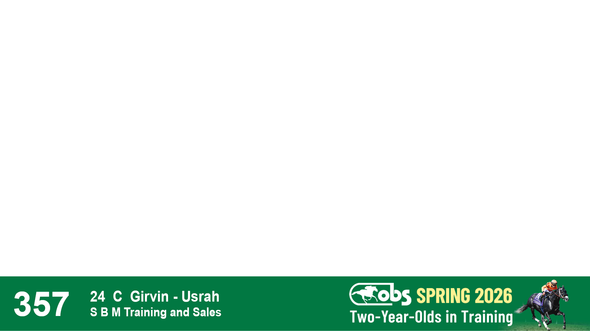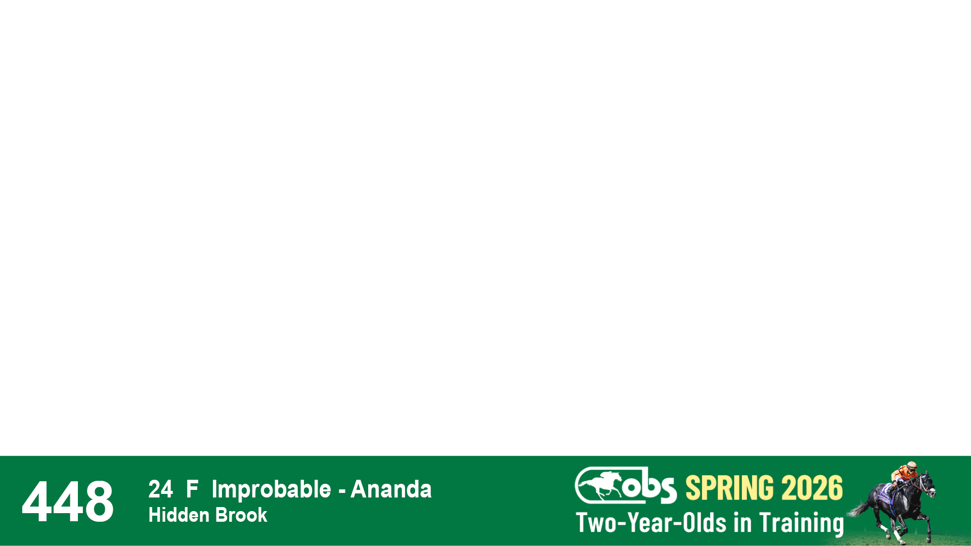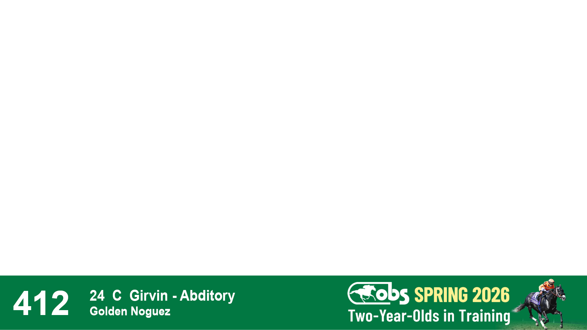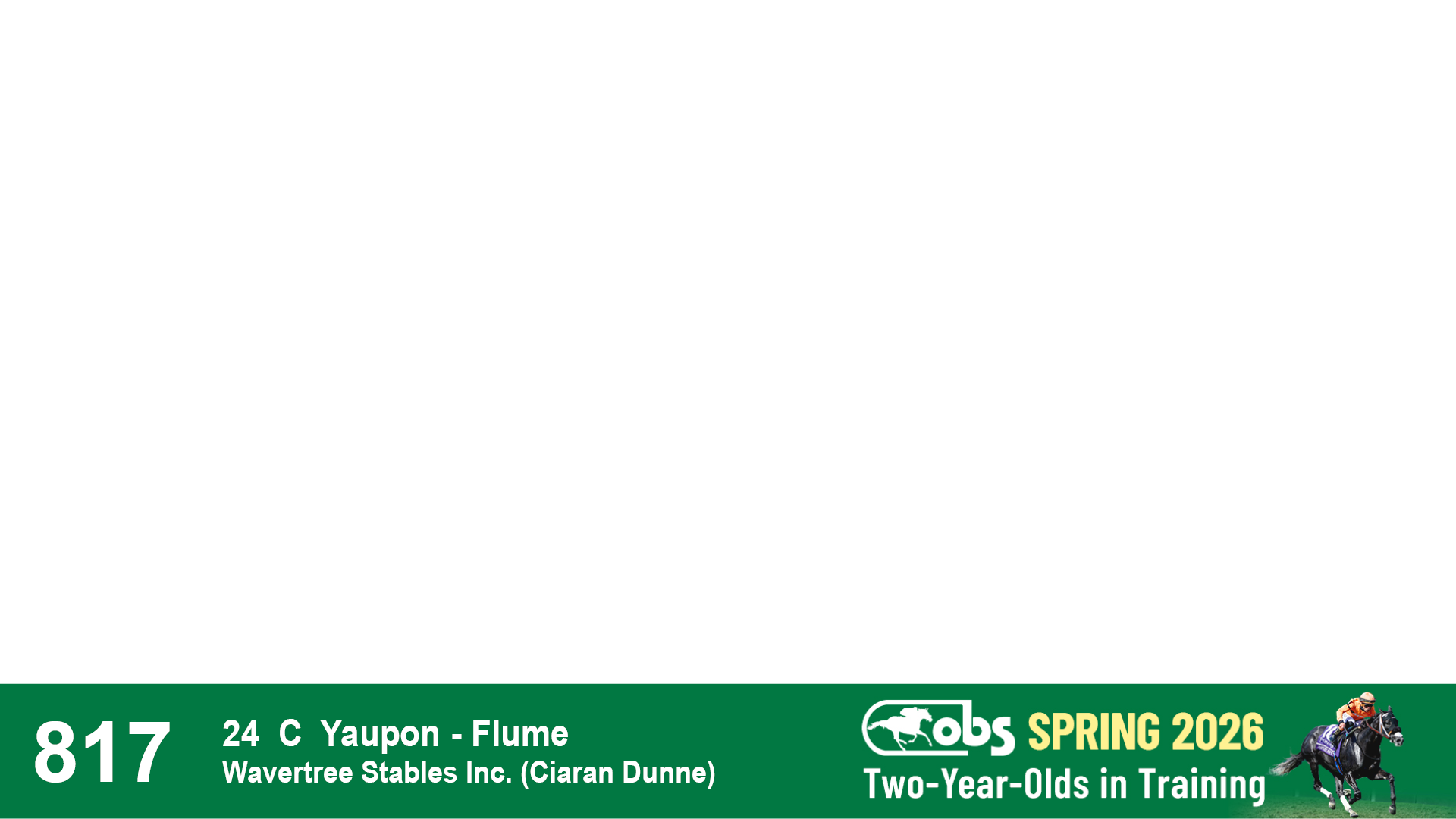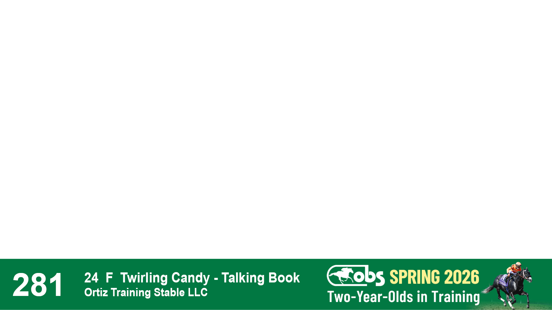 | 32 | Slate | Lower-Third | 3/3/2024 | C | Tale of Silence | Pleasant Orb | Lucan Bloodstock (Karl Keegan), Agent | 107 | 1055 | 839 | 565 | |