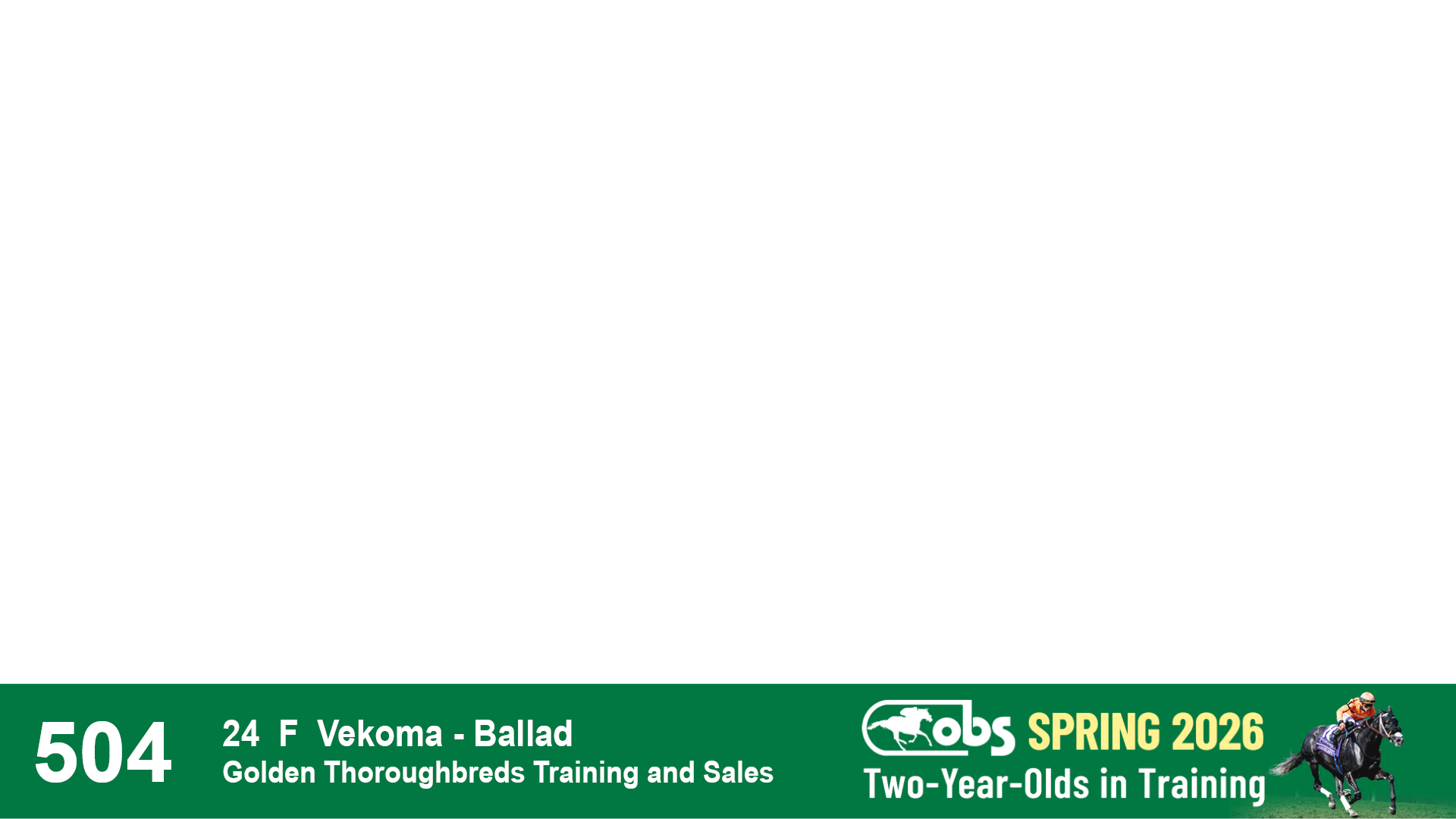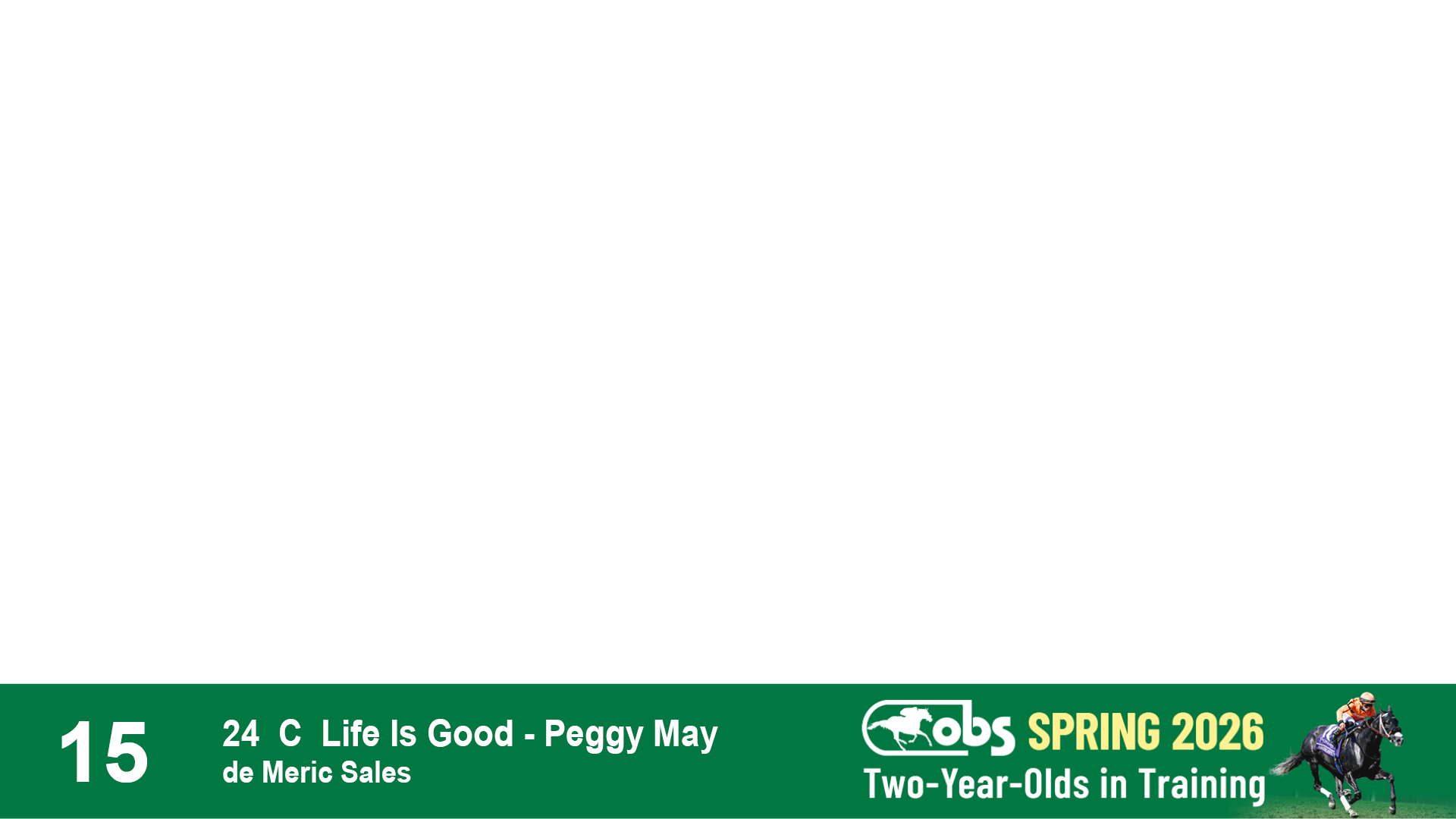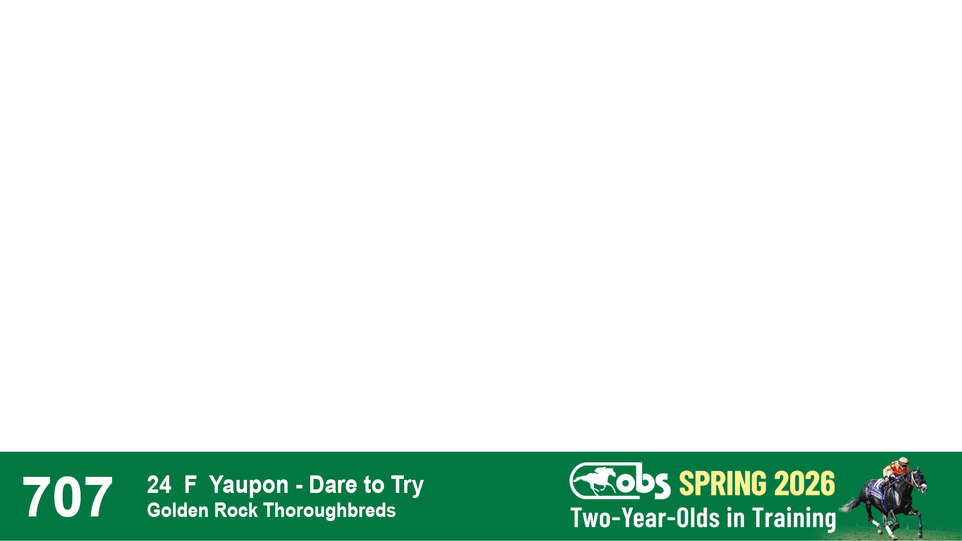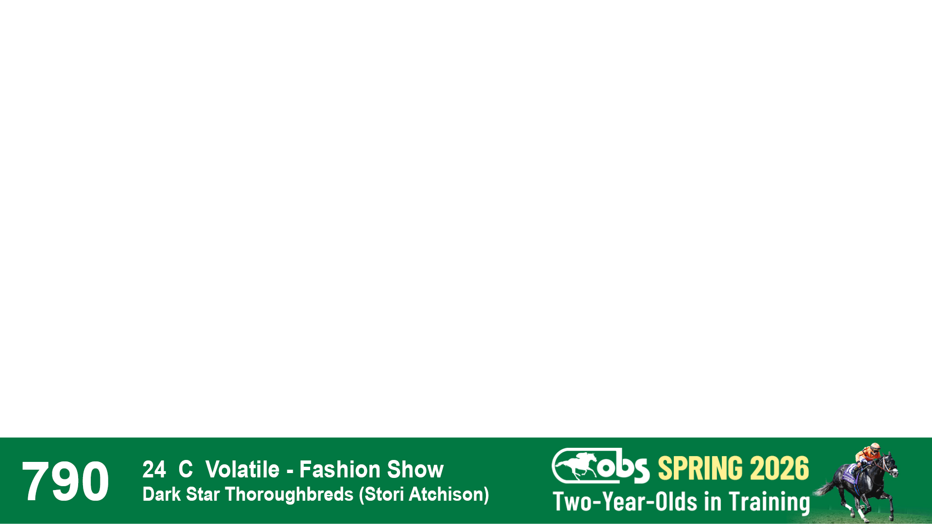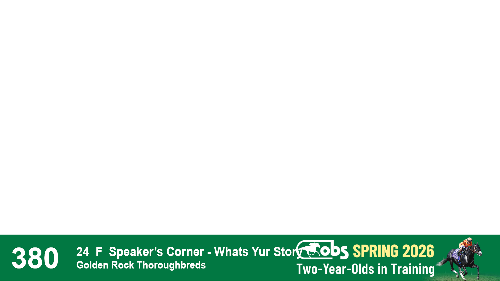 | 32 | Slate | Lower-Third | 3/3/2024 | C | Tale of Silence | Pleasant Orb | Lucan Bloodstock (Karl Keegan), Agent | 107 | 1055 | 839 | 565 | |