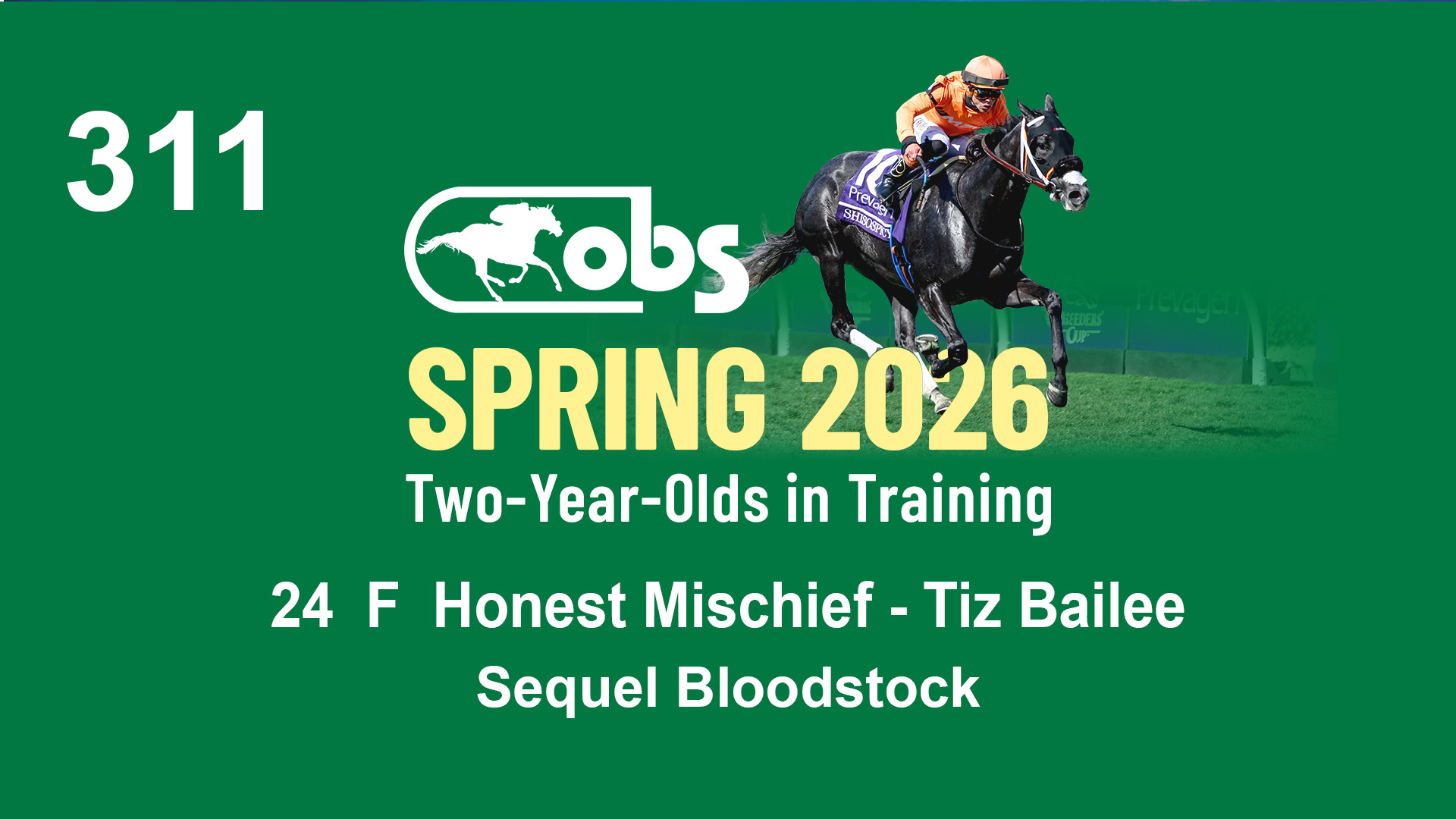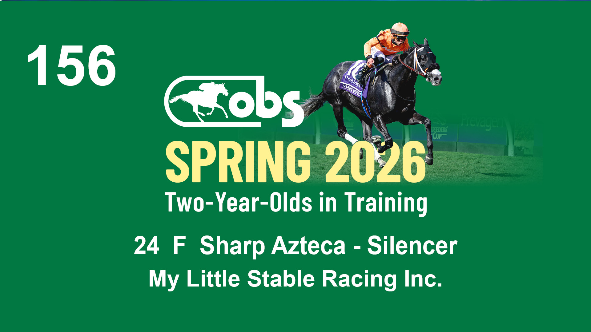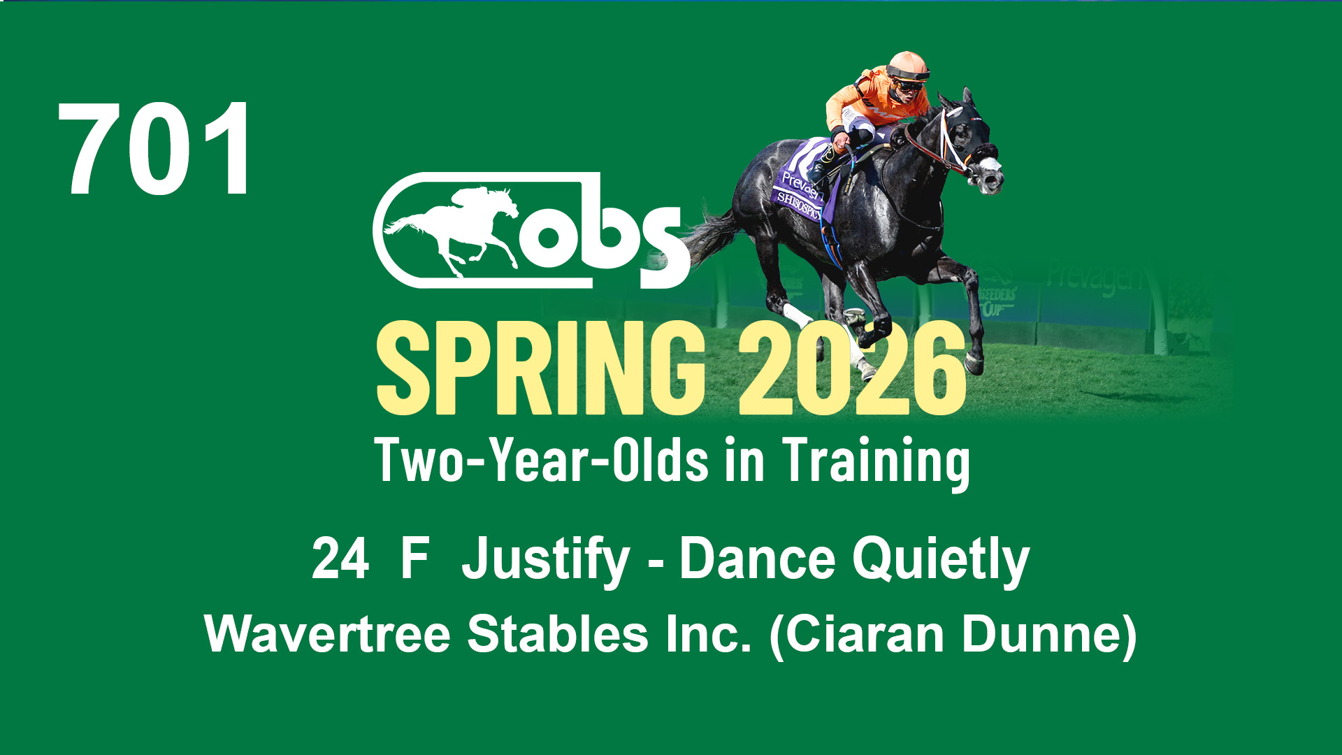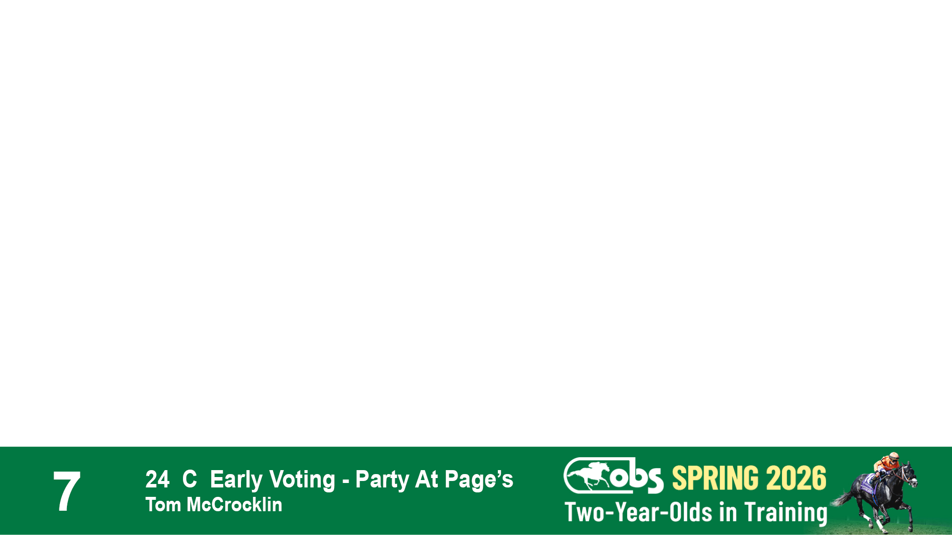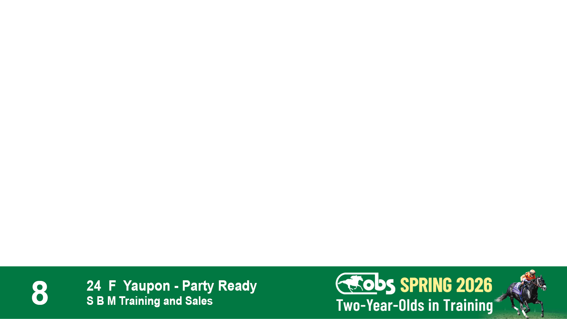 | 32 | Slate | Lower-Third | 3/3/2024 | C | Tale of Silence | Pleasant Orb | Lucan Bloodstock (Karl Keegan), Agent | 107 | 1055 | 839 | 565 | |