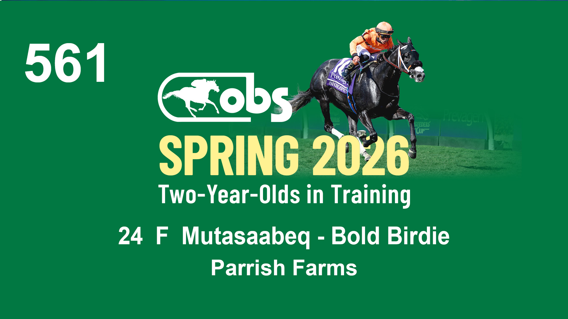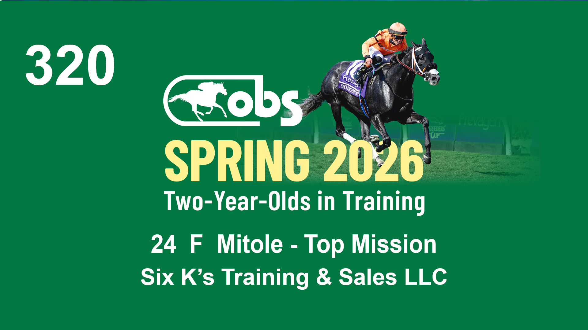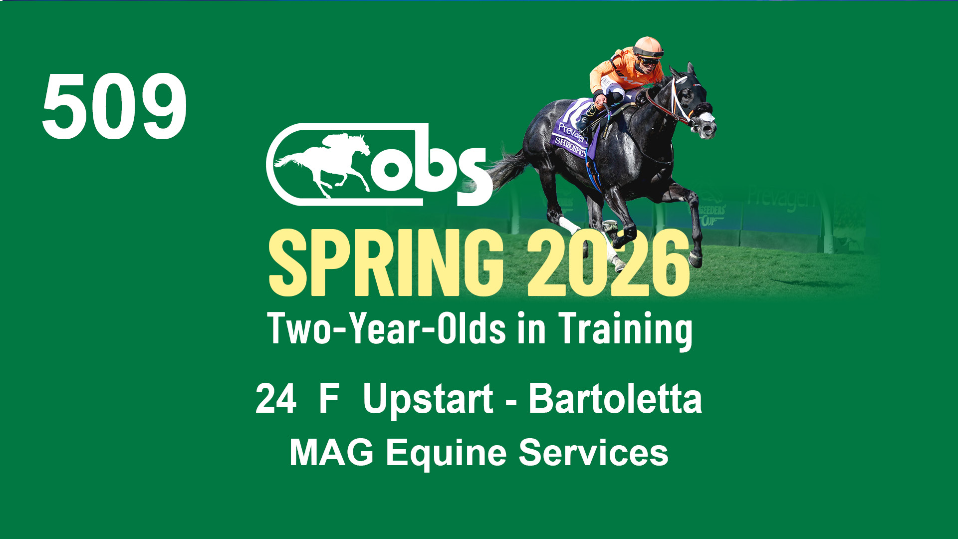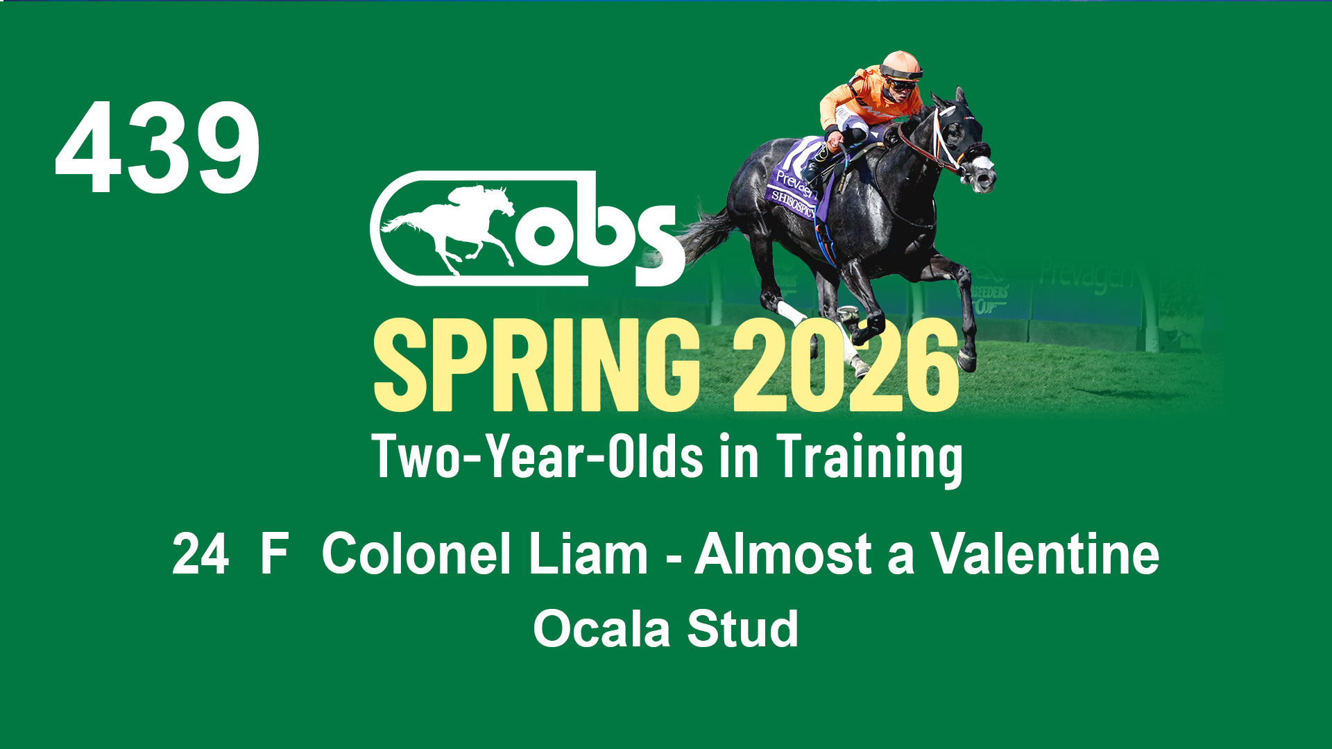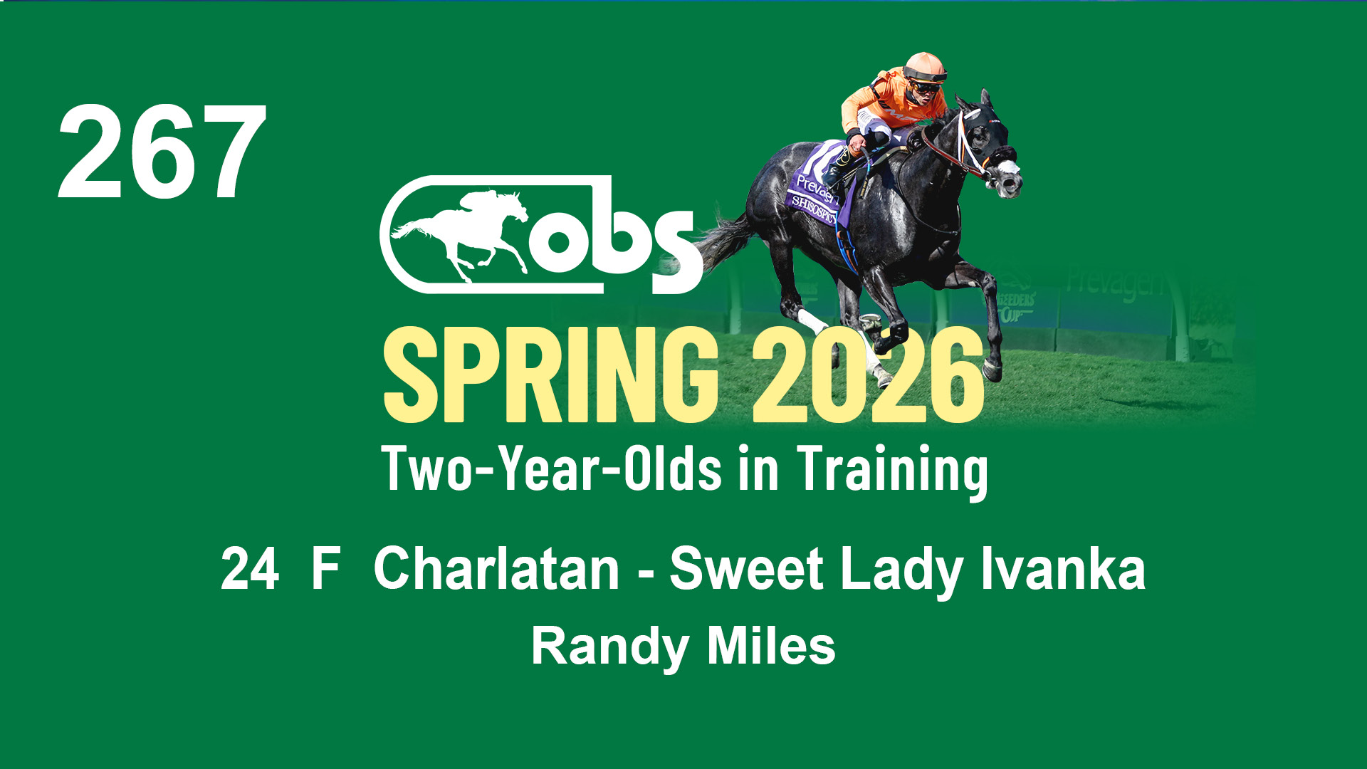 | 32 | Slate | Lower-Third | 3/3/2024 | C | Tale of Silence | Pleasant Orb | Lucan Bloodstock (Karl Keegan), Agent | 107 | 1055 | 839 | 565 | |
