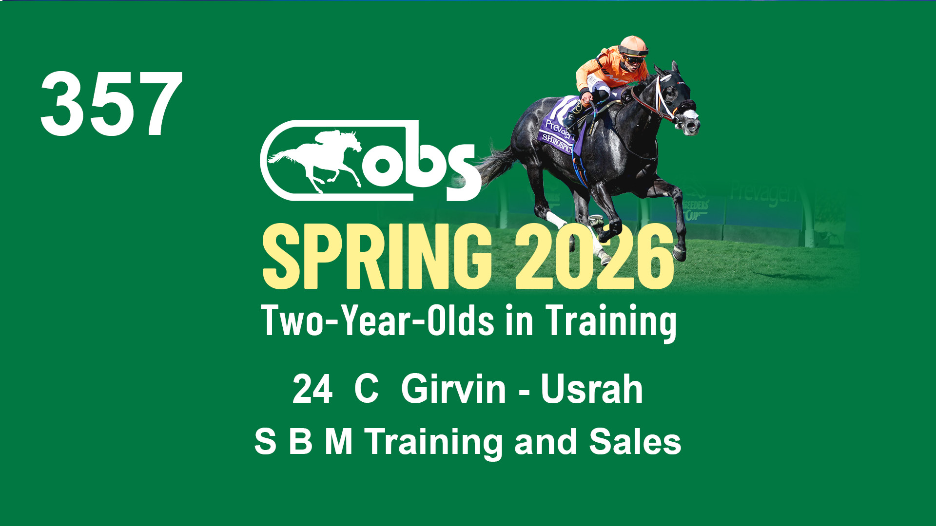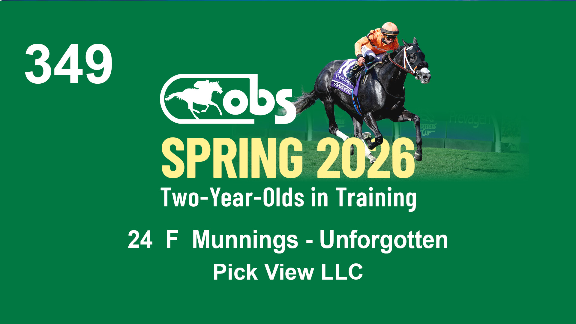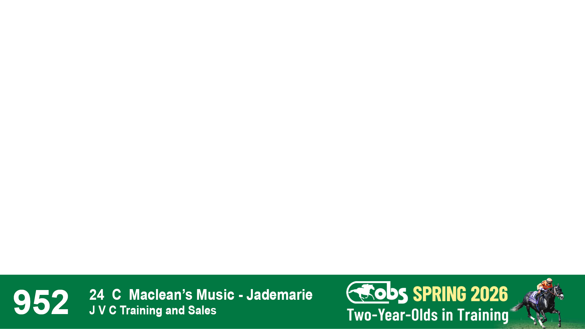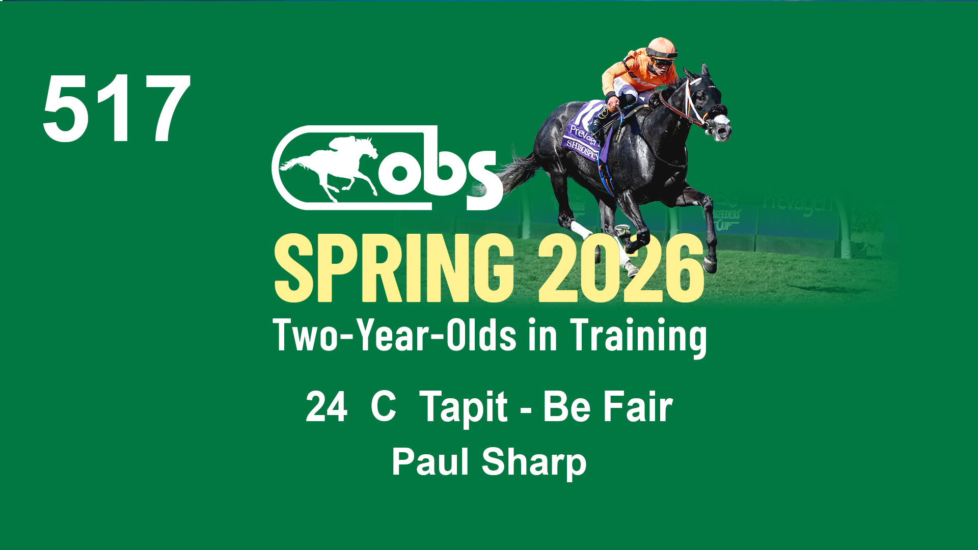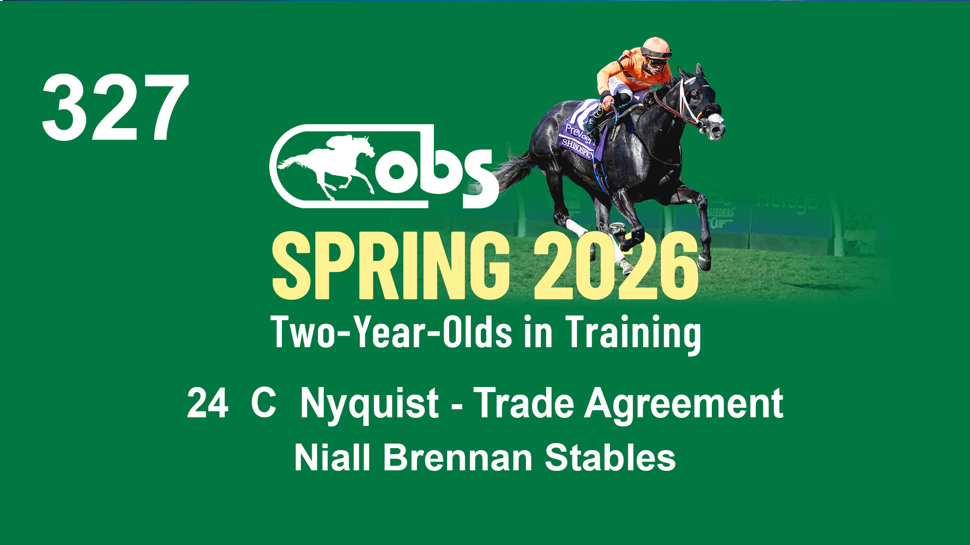 | 32 | Slate | Lower-Third | 3/3/2024 | C | Tale of Silence | Pleasant Orb | Lucan Bloodstock (Karl Keegan), Agent | 107 | 1055 | 839 | 565 | |