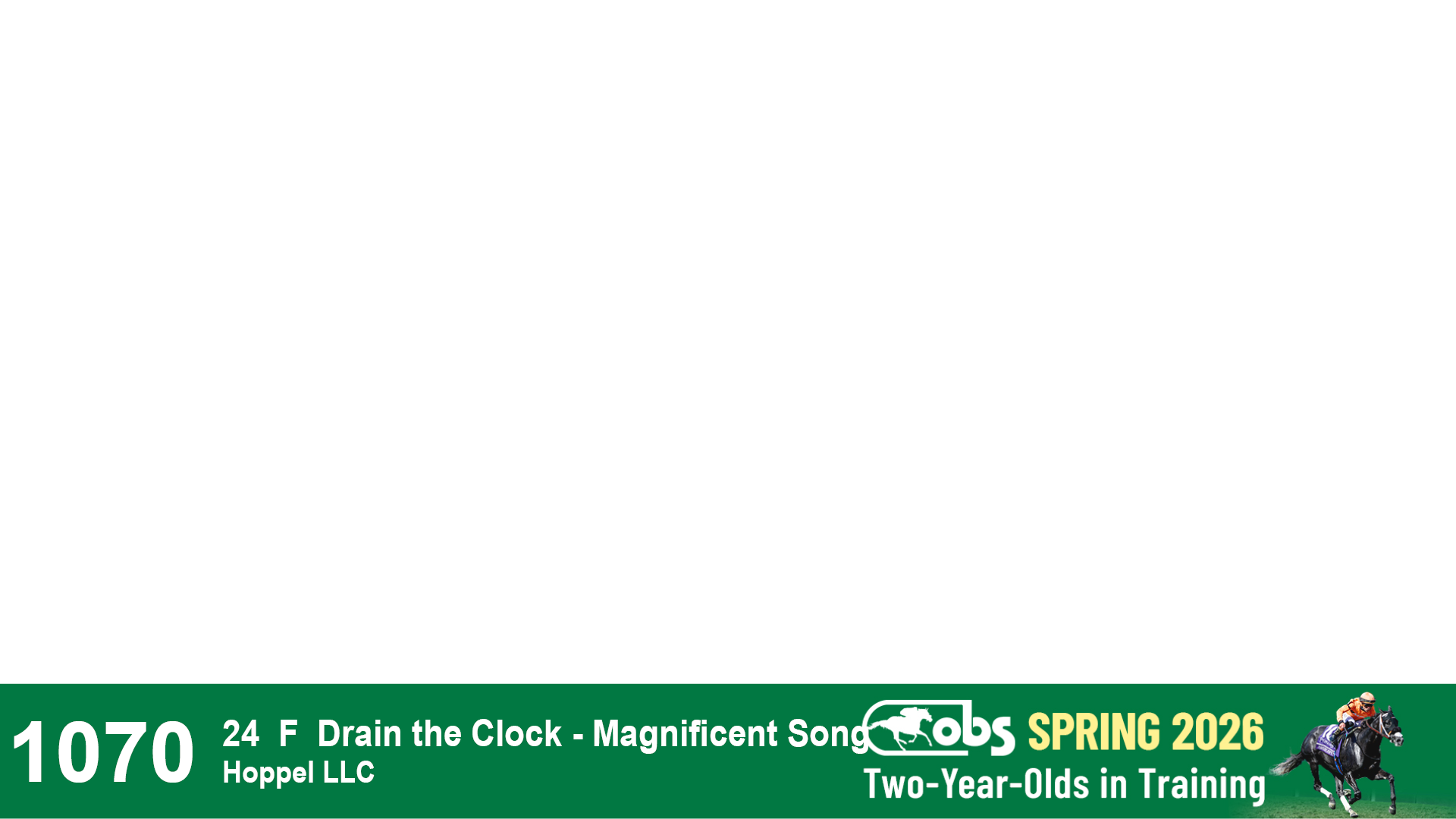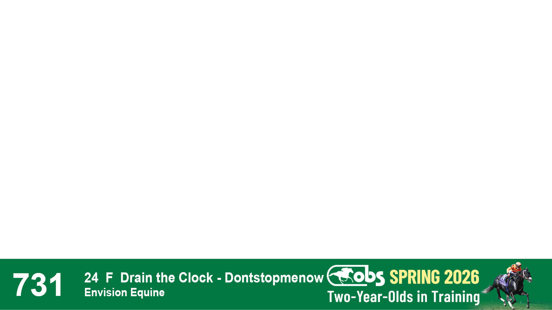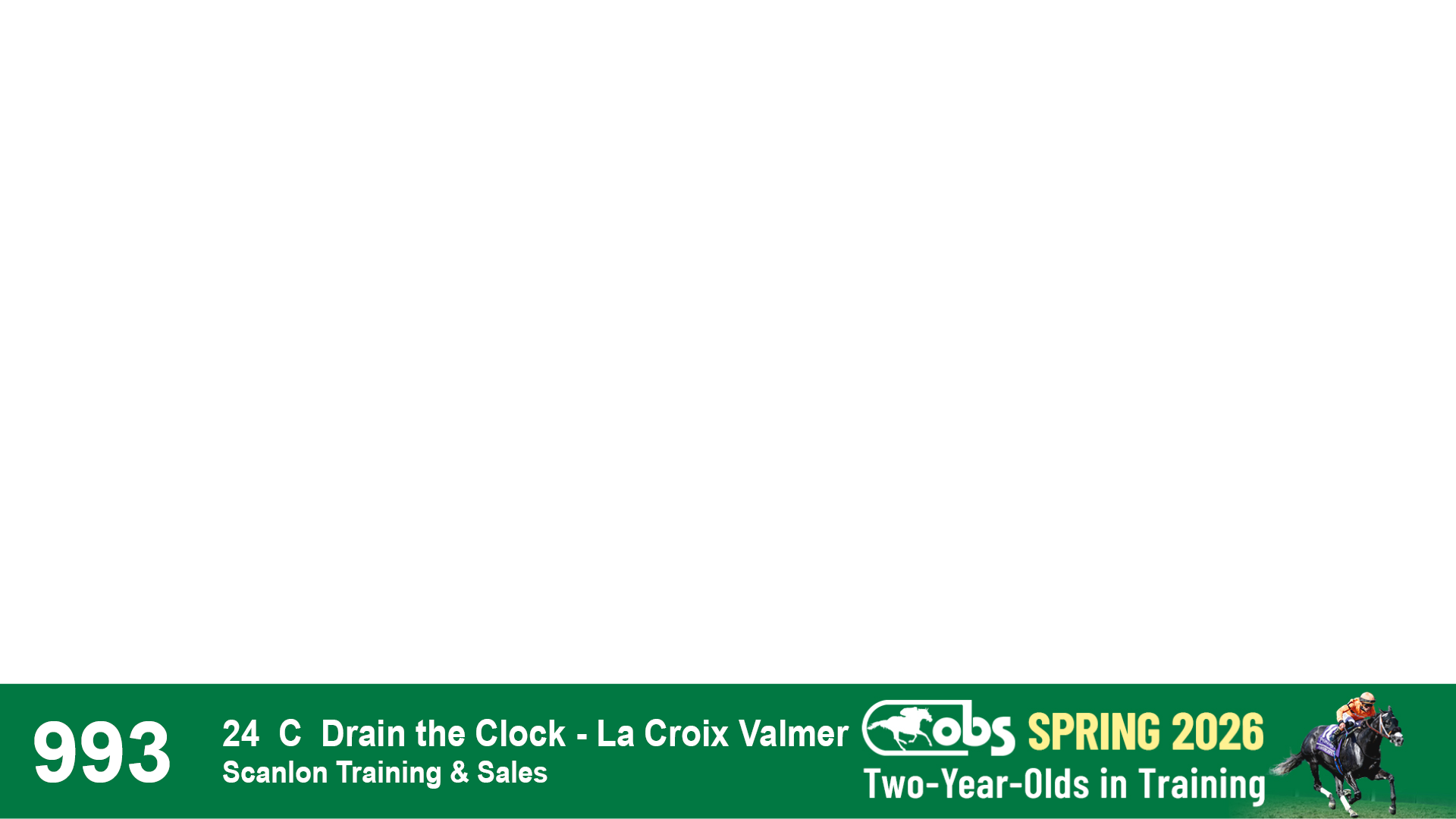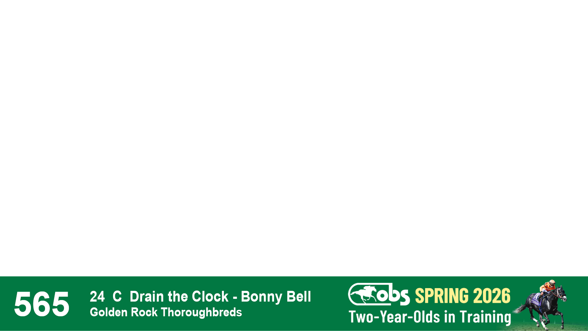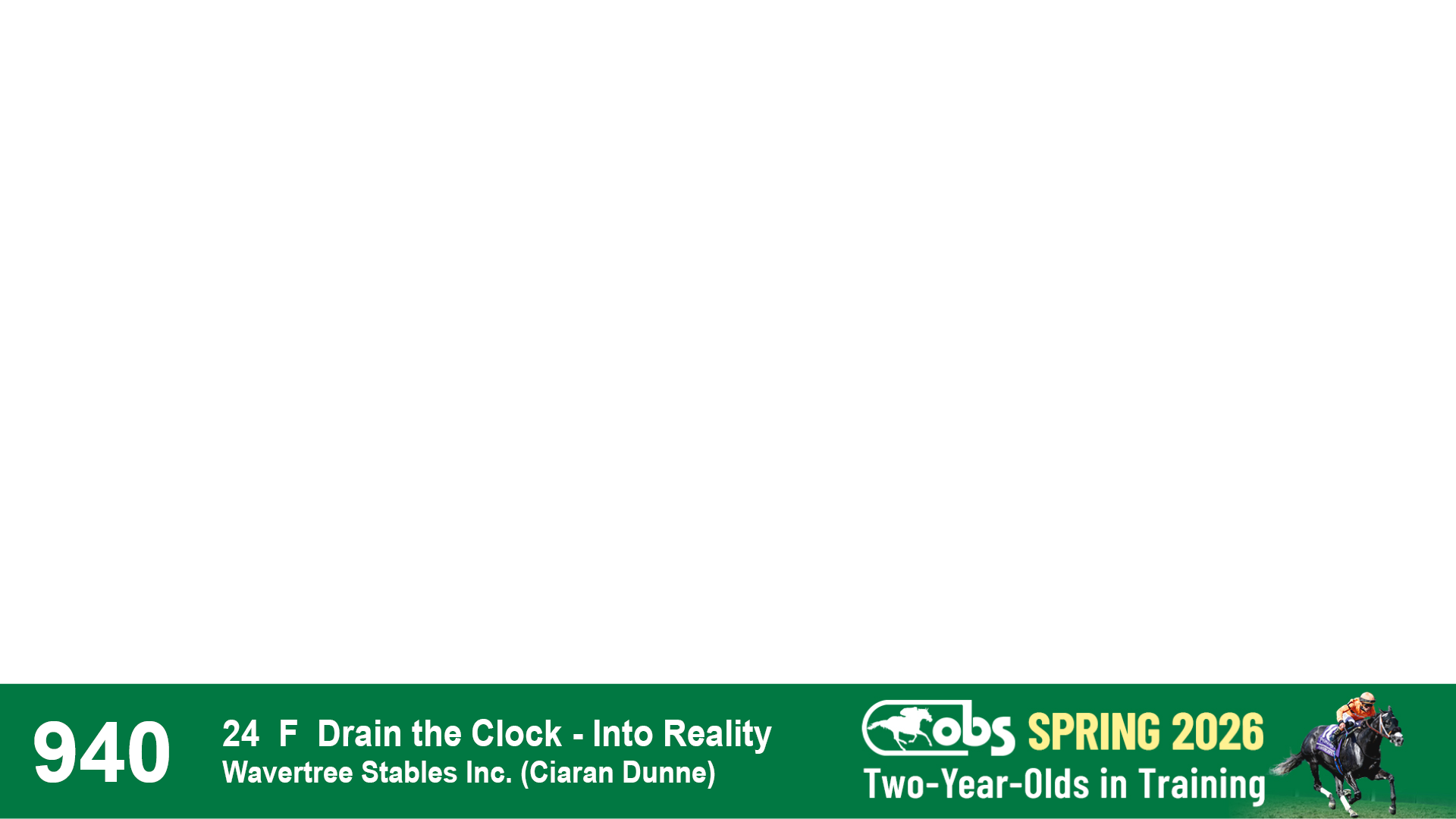 | 1143 | Slate | Lower-Third | 2/2/2024 | C | Drain the Clock | Moment to Dream | Niall Brennan Stables, Agent VIII | 1148 | 278 | 730 | 664 | |