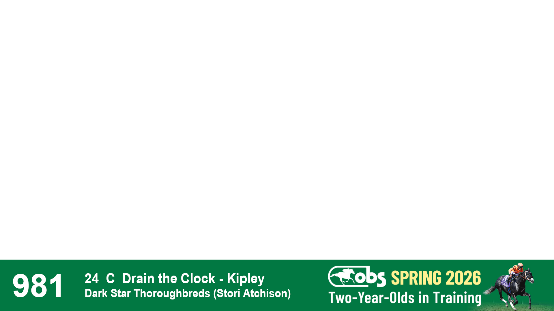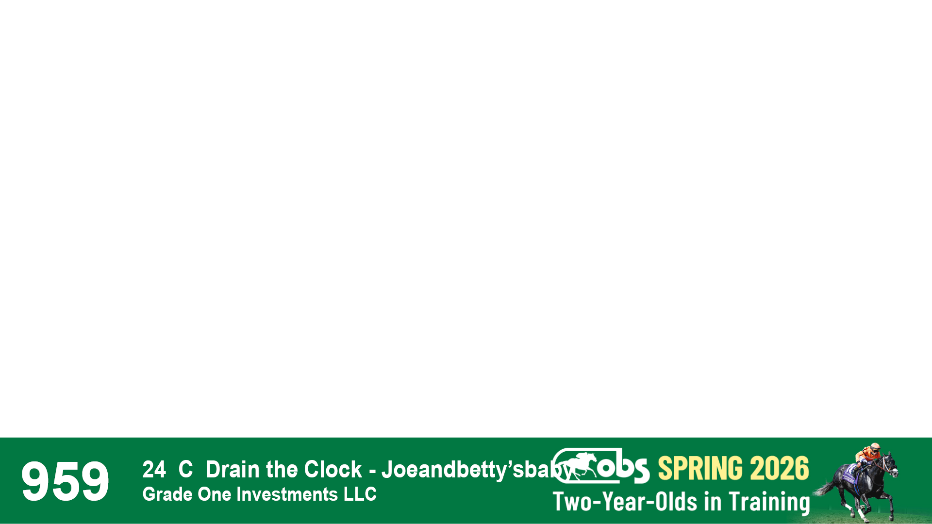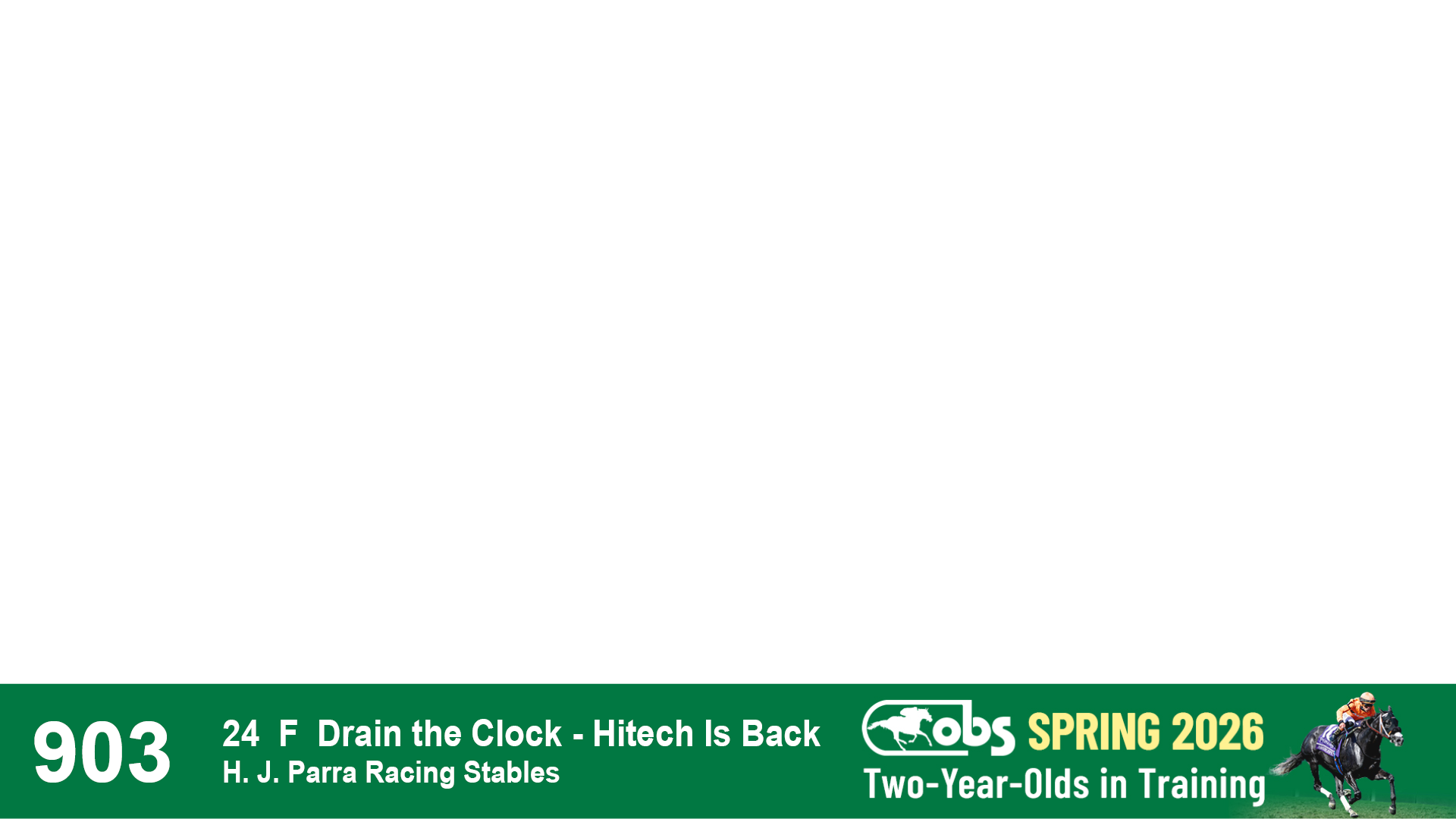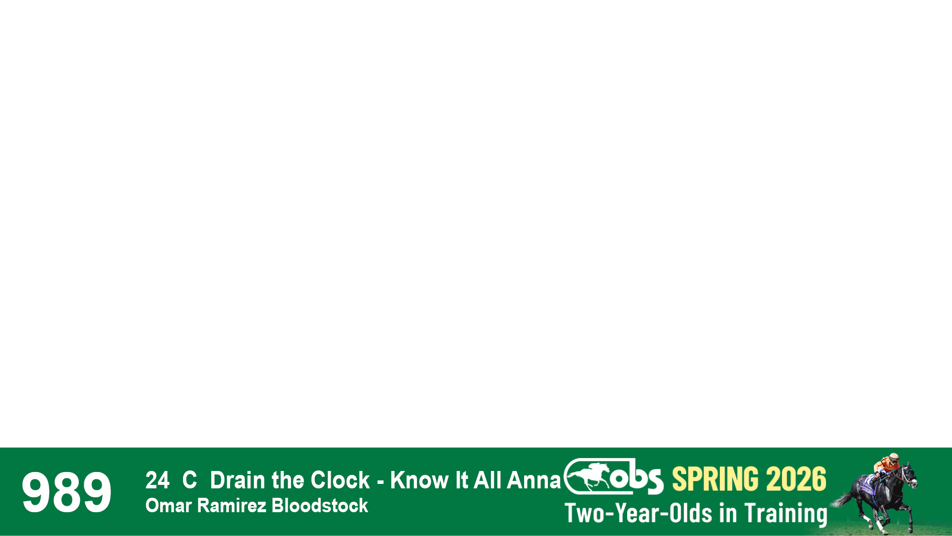 | 1143 | Slate | Lower-Third | 2/2/2024 | C | Drain the Clock | Moment to Dream | Niall Brennan Stables, Agent VIII | 1148 | 278 | 730 | 664 | |