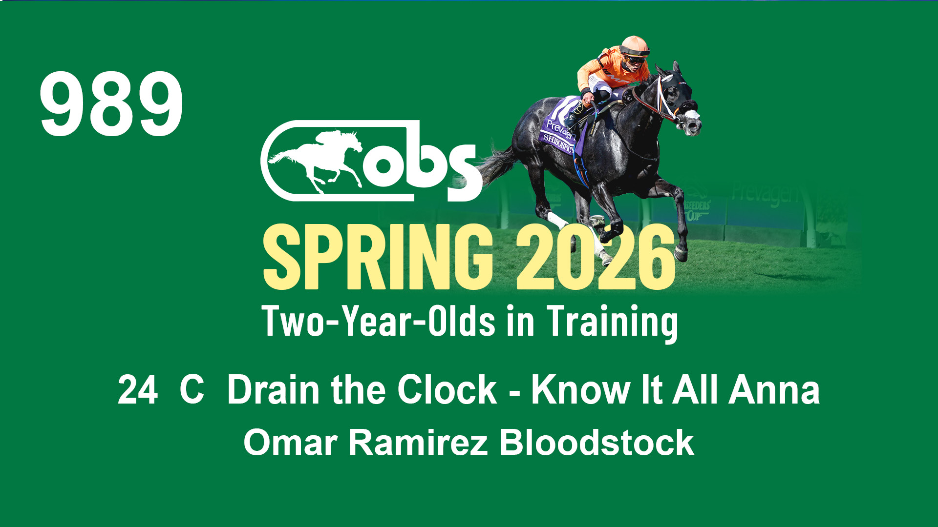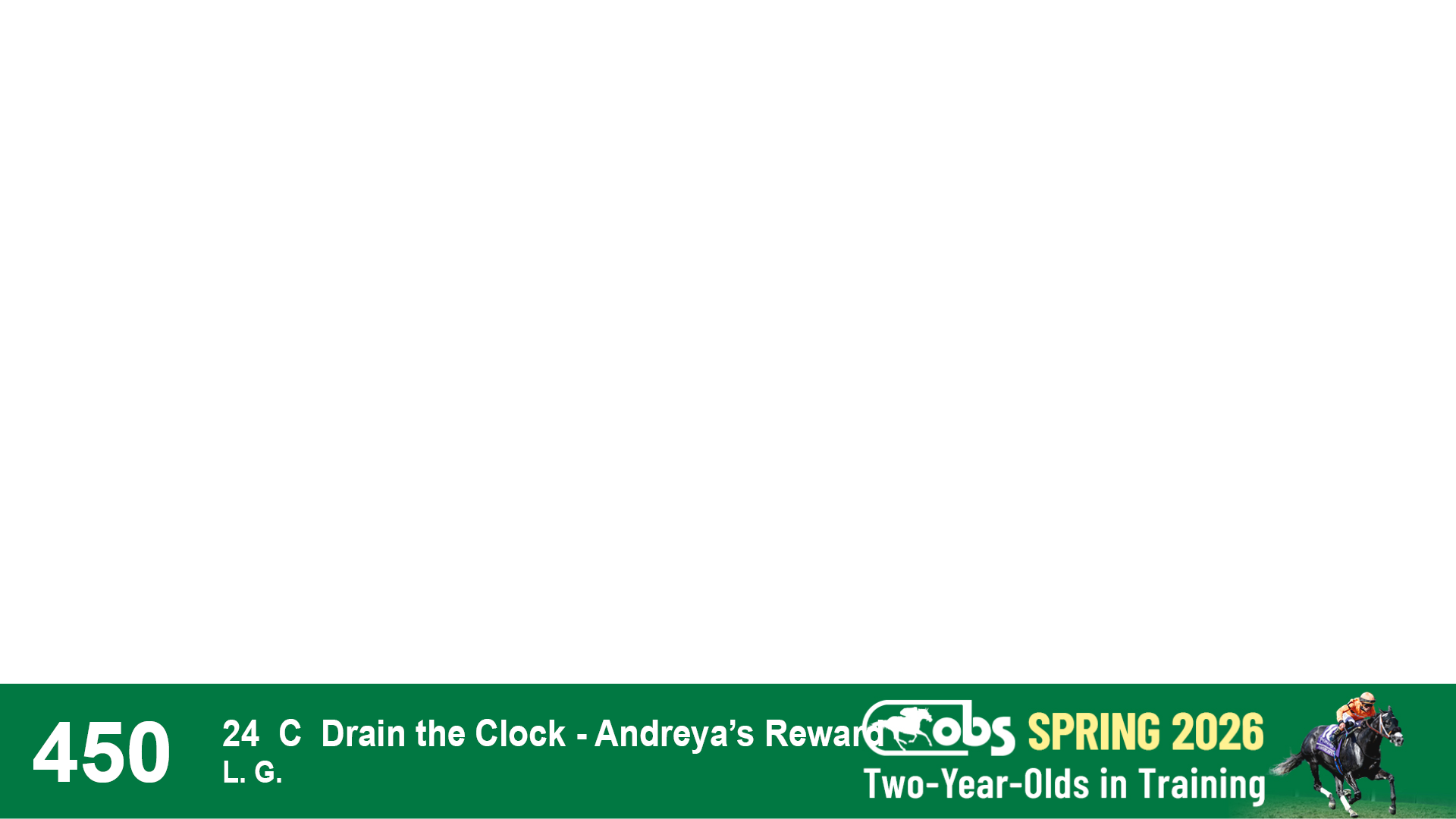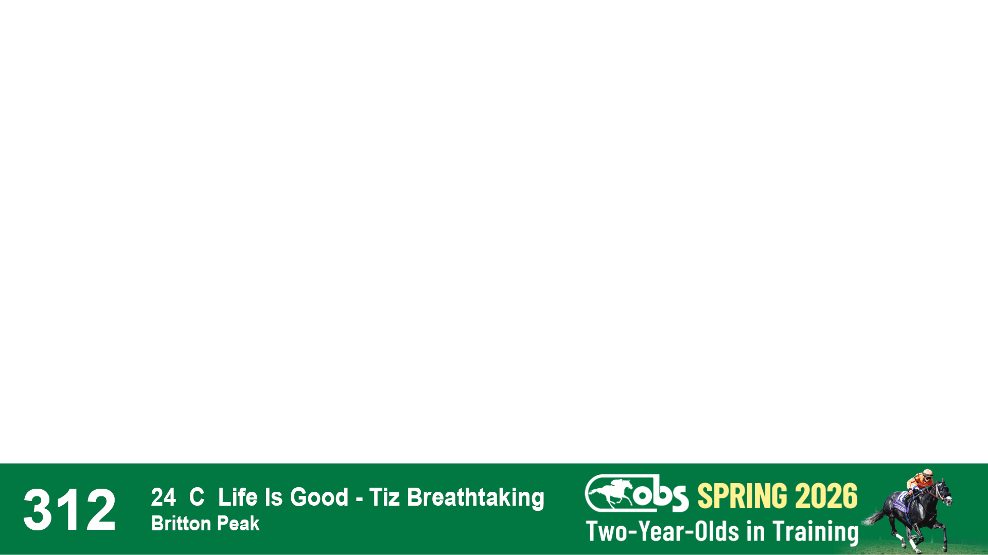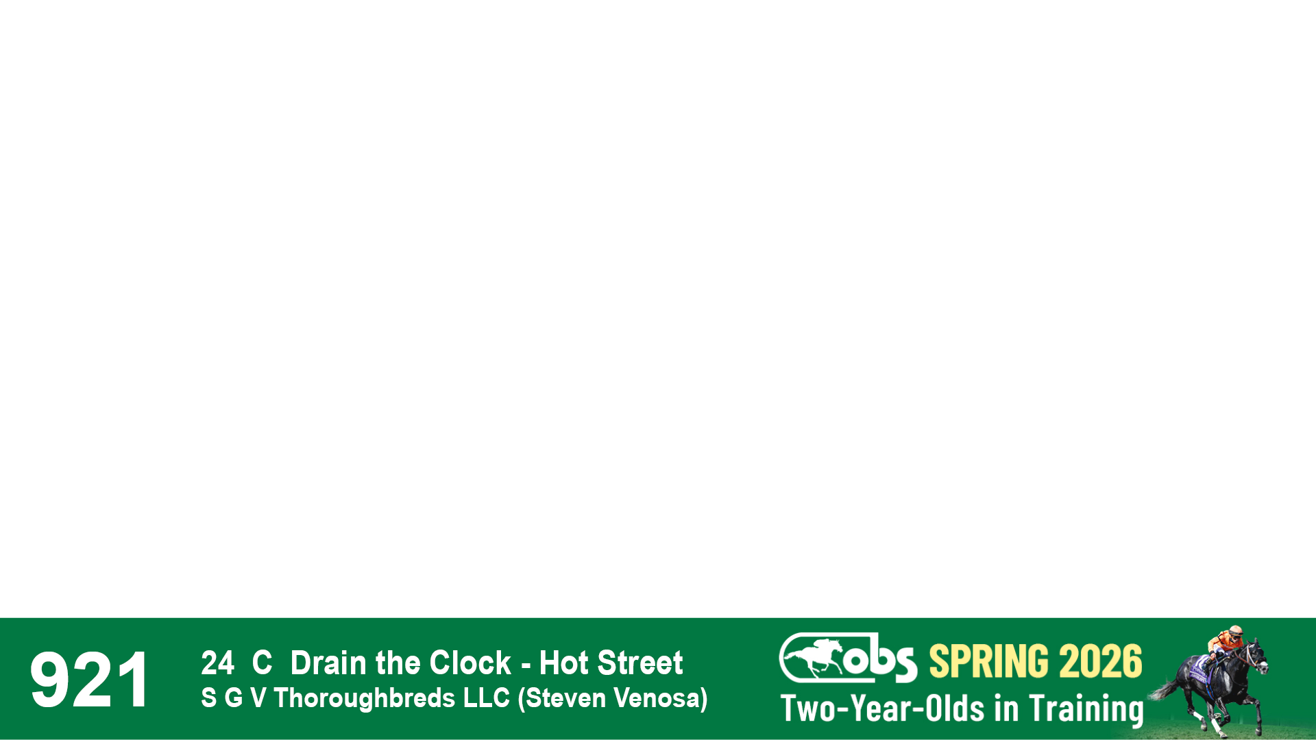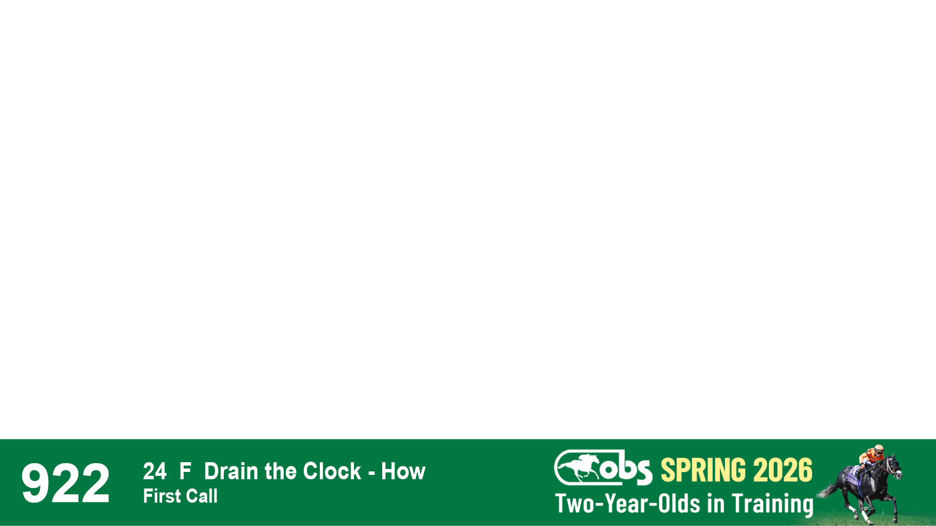 | 1143 | Slate | Lower-Third | 2/2/2024 | C | Drain the Clock | Moment to Dream | Niall Brennan Stables, Agent VIII | 1148 | 278 | 730 | 664 | |