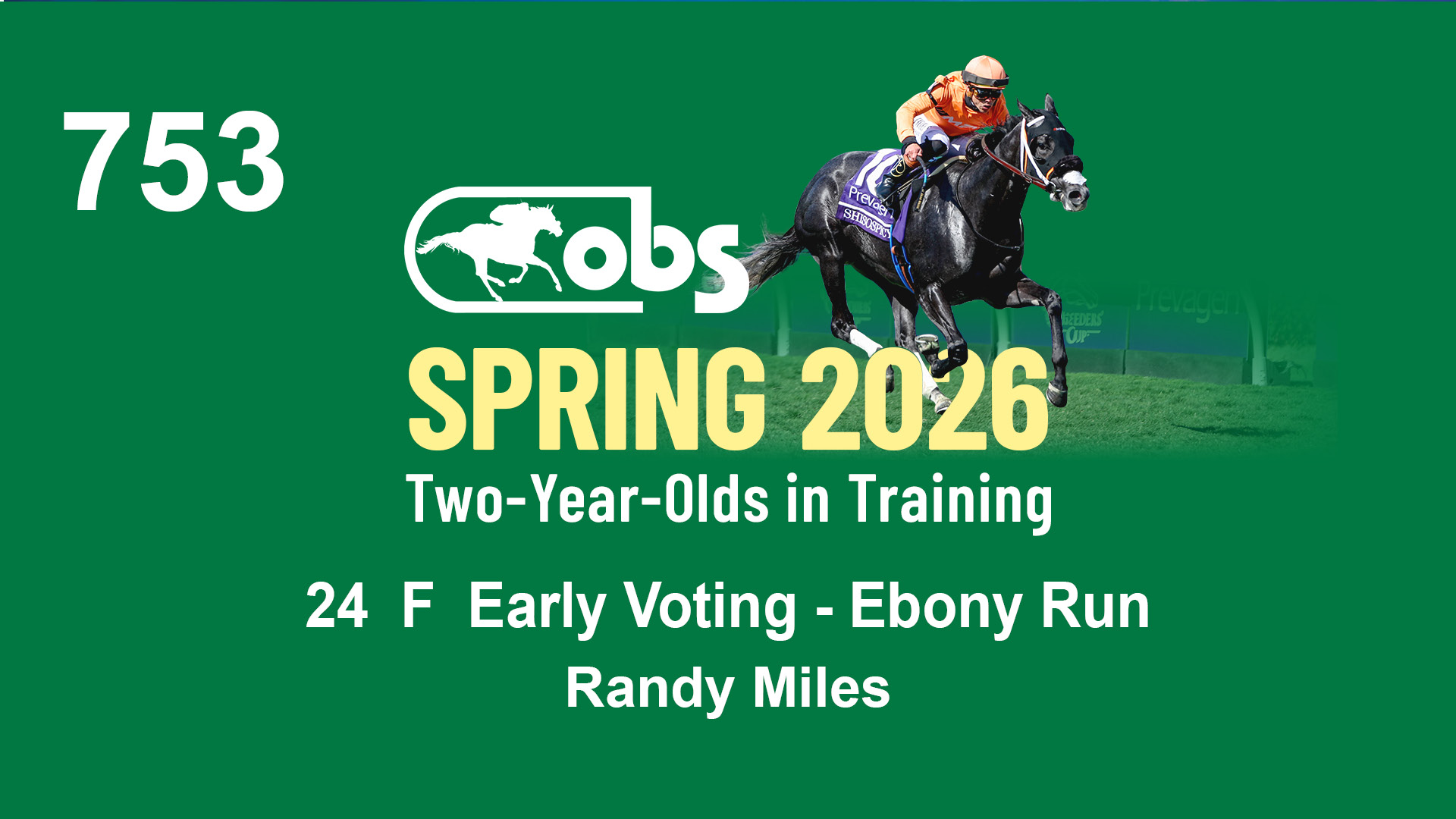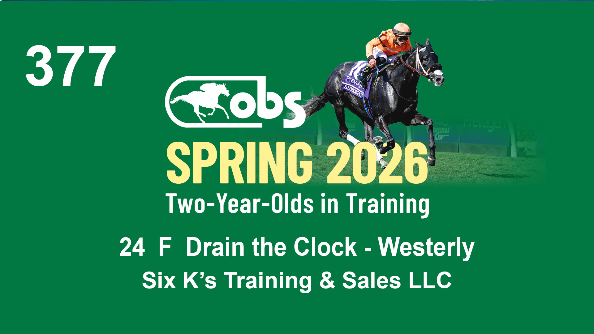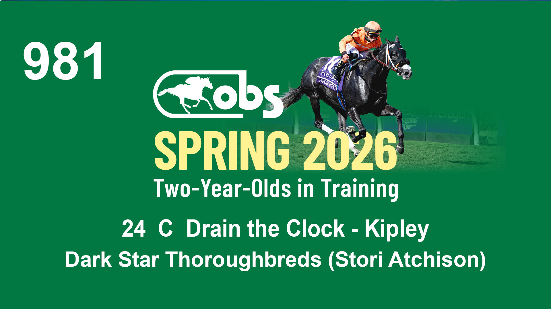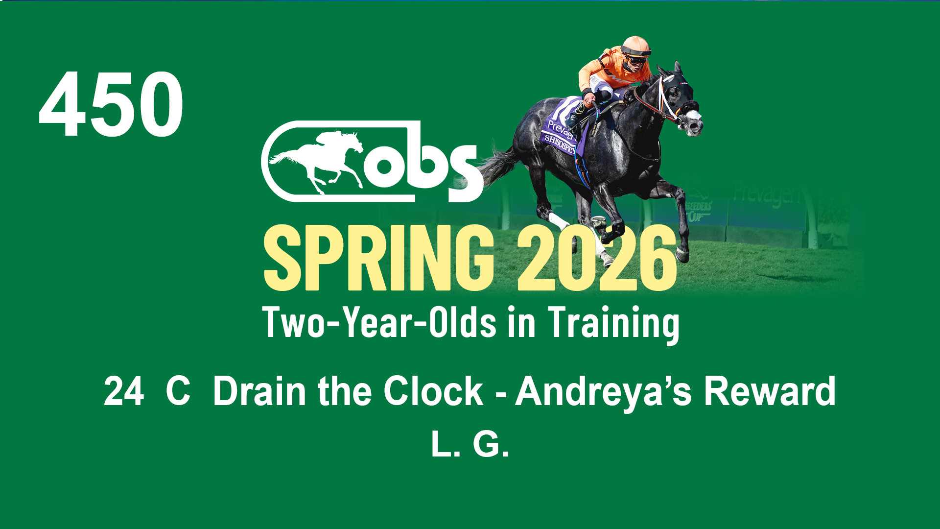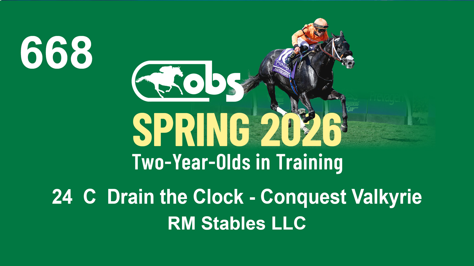 | 1143 | Slate | Lower-Third | 2/2/2024 | C | Drain the Clock | Moment to Dream | Niall Brennan Stables, Agent VIII | 1148 | 278 | 730 | 664 | |