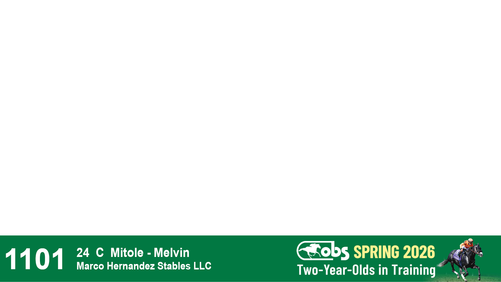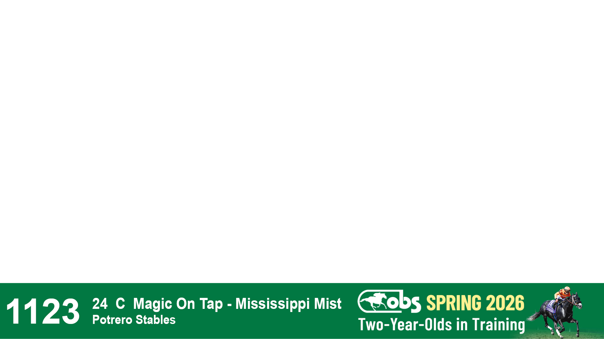 | 1123 | Slate | Lower-Third | 4/19/2024 | C | Mister Joe E | Magic On Tap | Mississippi Mist | Potrero Stables, Agent | 47 | 699 | 710 | 807 |
