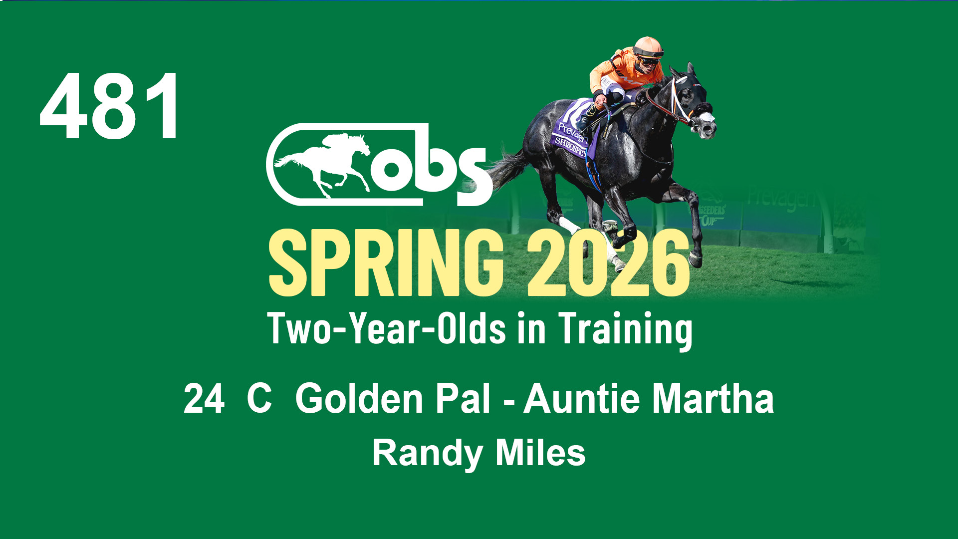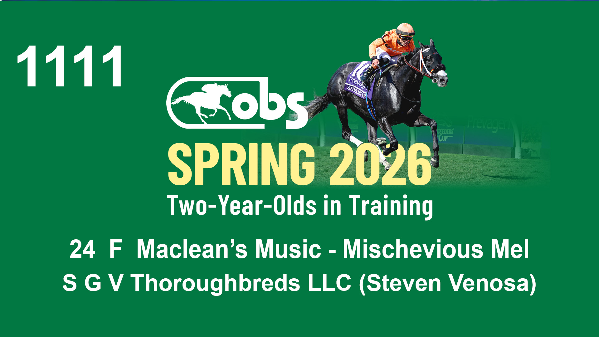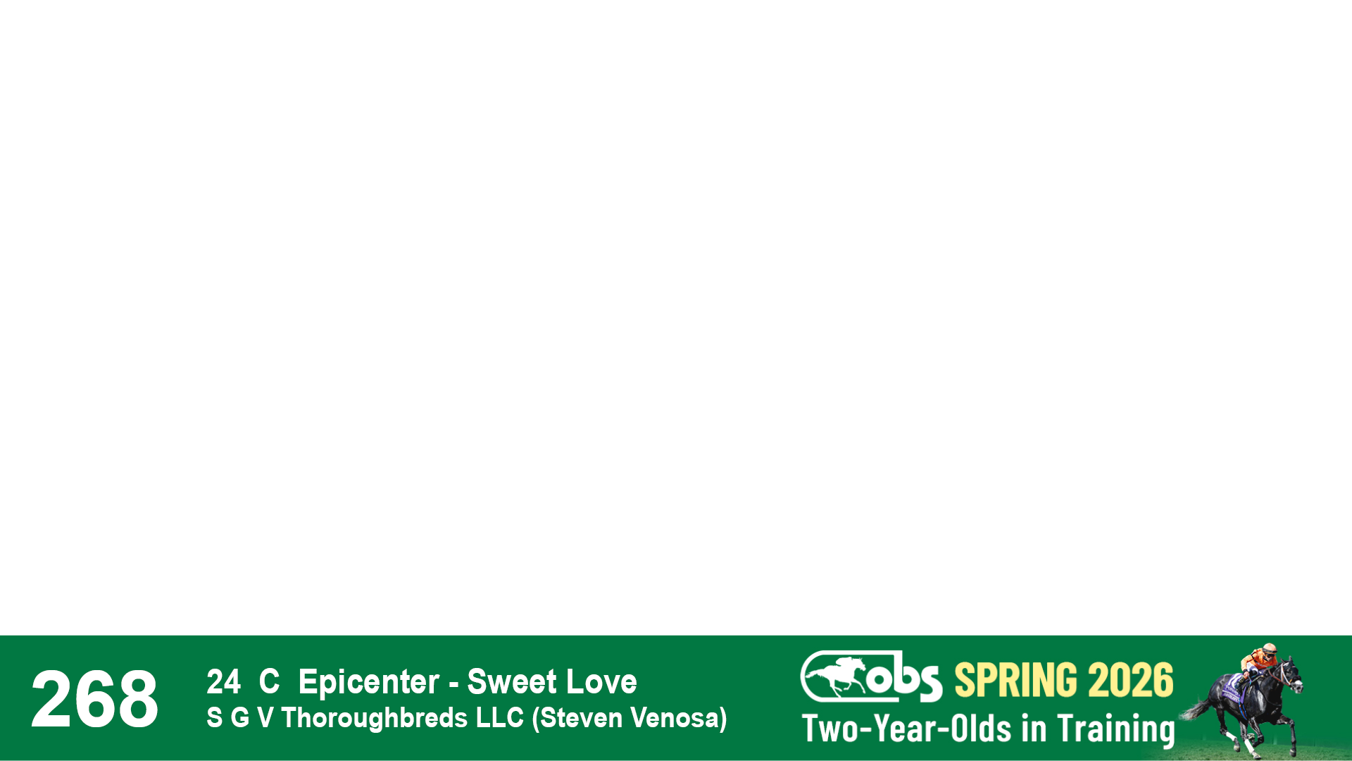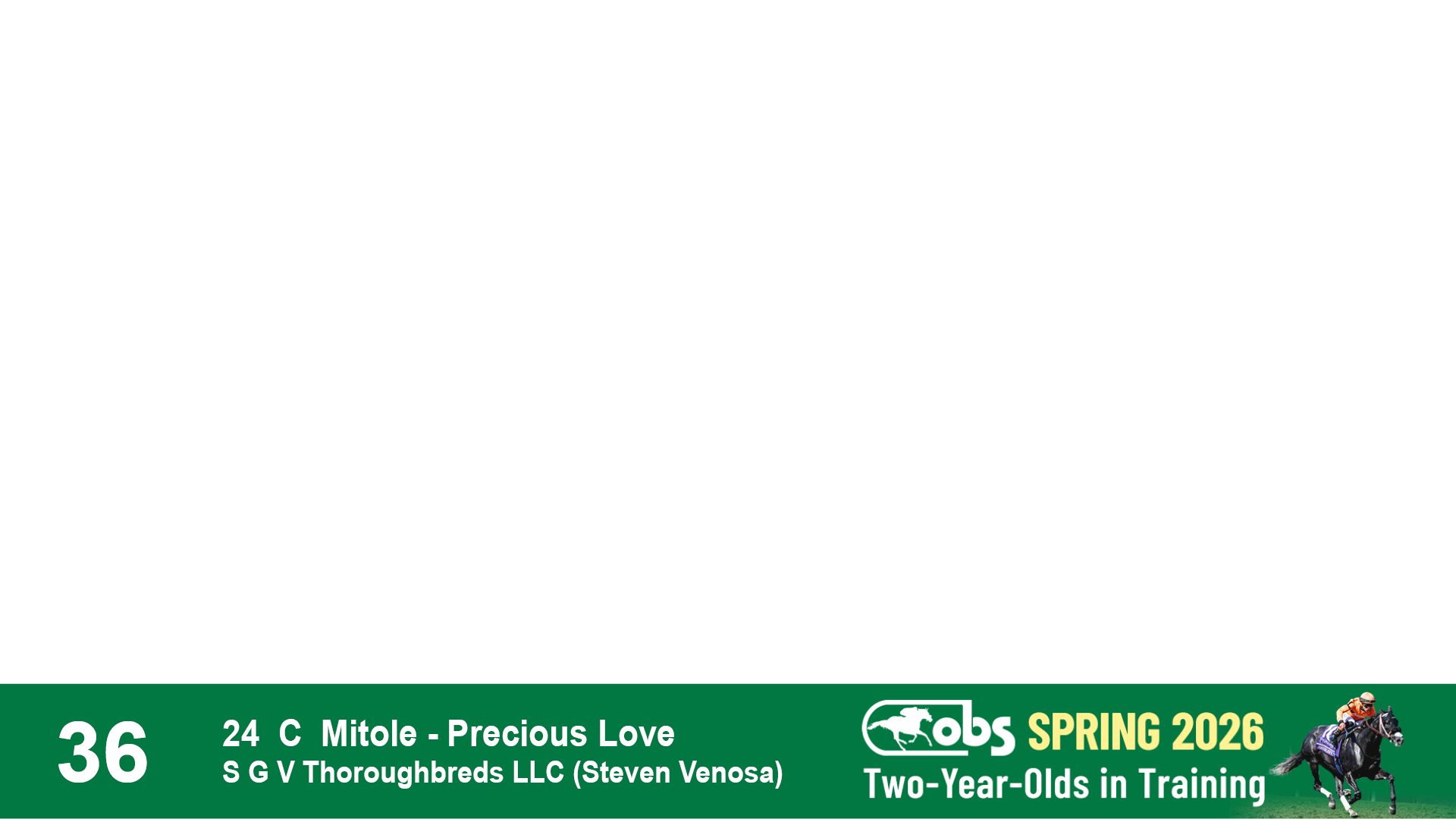 | 36 | Slate | Lower-Third | 4/19/2024 | C | Mitole | Precious Love | S G V Thoroughbreds LLC (Steven Venosa), Agent | 111 | 771 | 843 | 981 | |