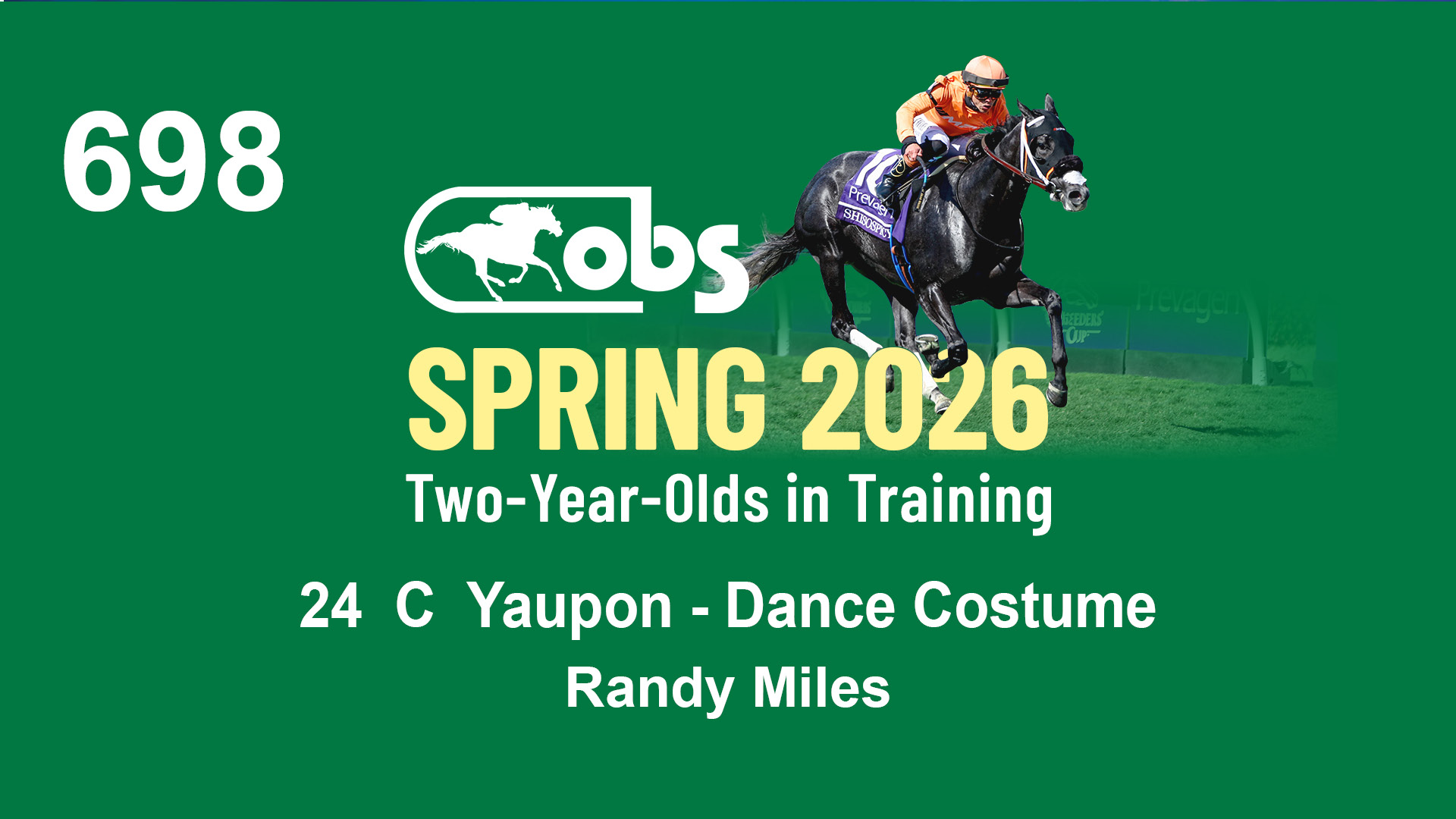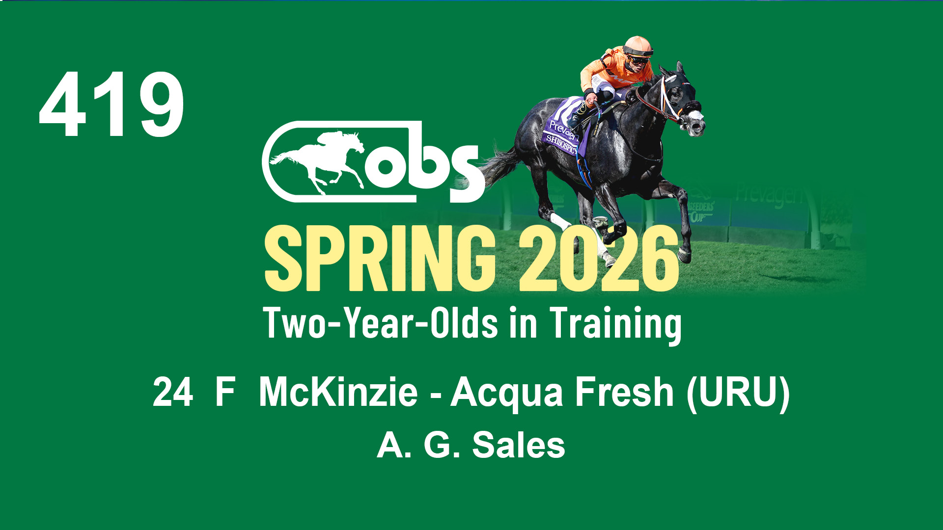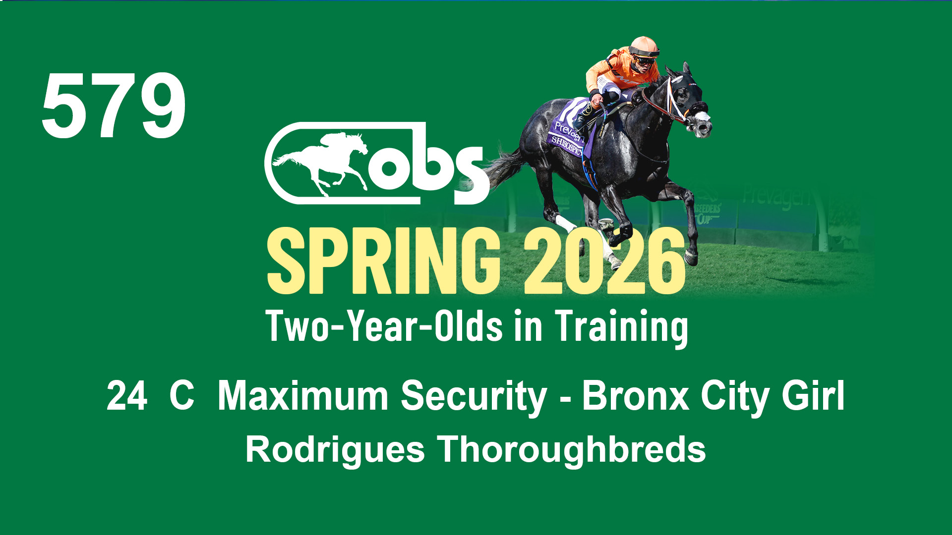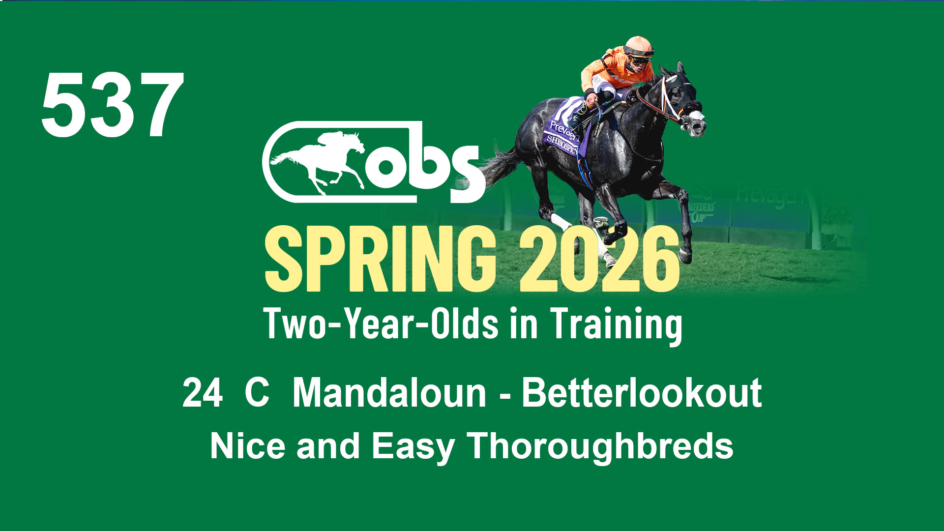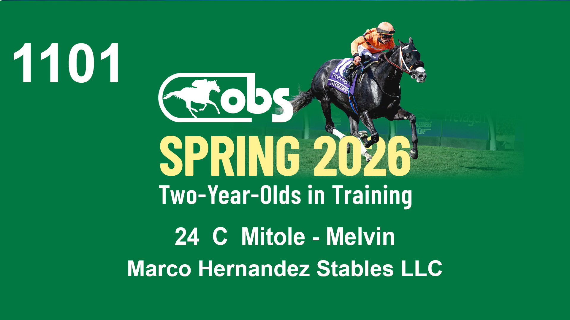 | 36 | Slate | Lower-Third | 4/19/2024 | C | Mitole | Precious Love | S G V Thoroughbreds LLC (Steven Venosa), Agent | 111 | 771 | 843 | 981 | |