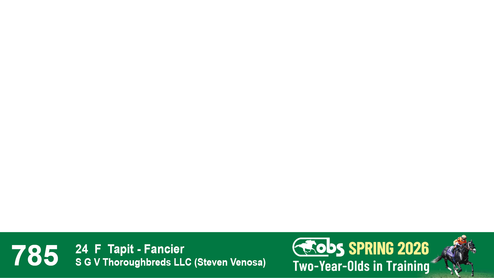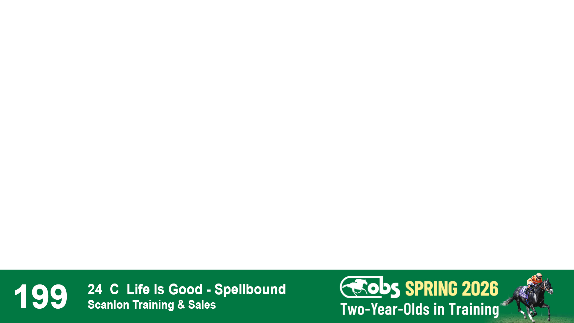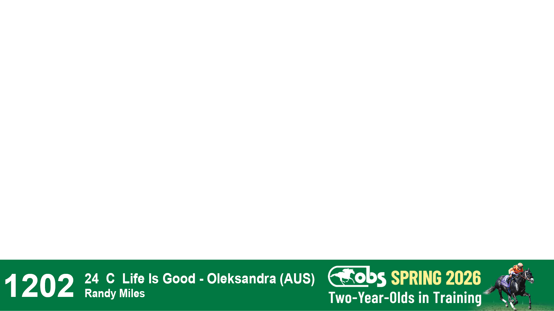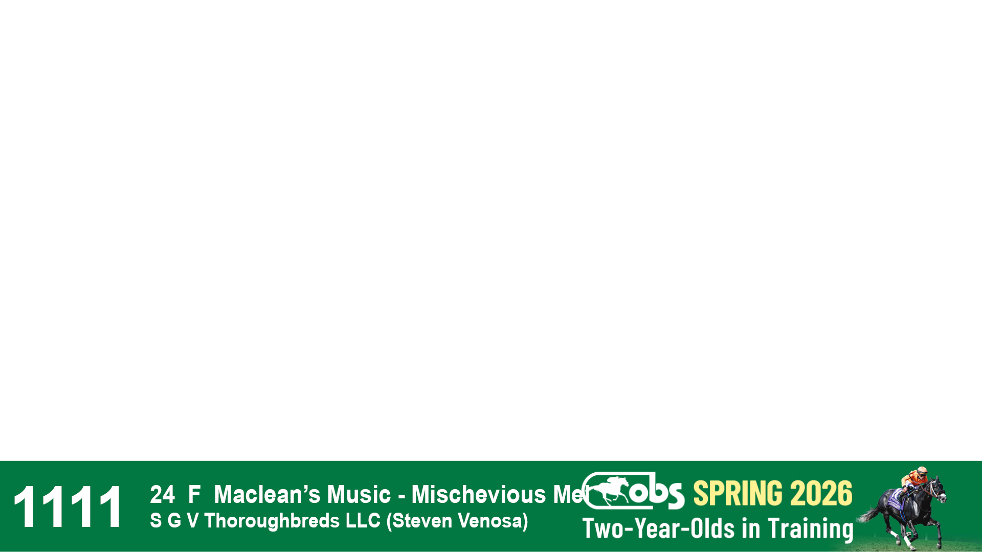 | 1198 | Slate | Lower-Third | 2/26/2024 | F | Life Is Good | Off the Tracks | S G V Thoroughbreds LLC (Steven Venosa), Agent | 1201 | 674 | 785 | 1002 | |