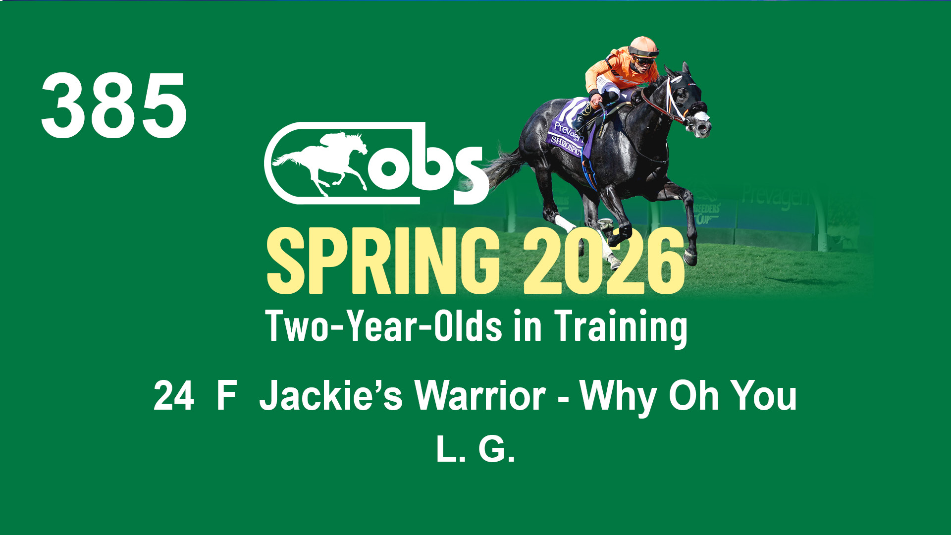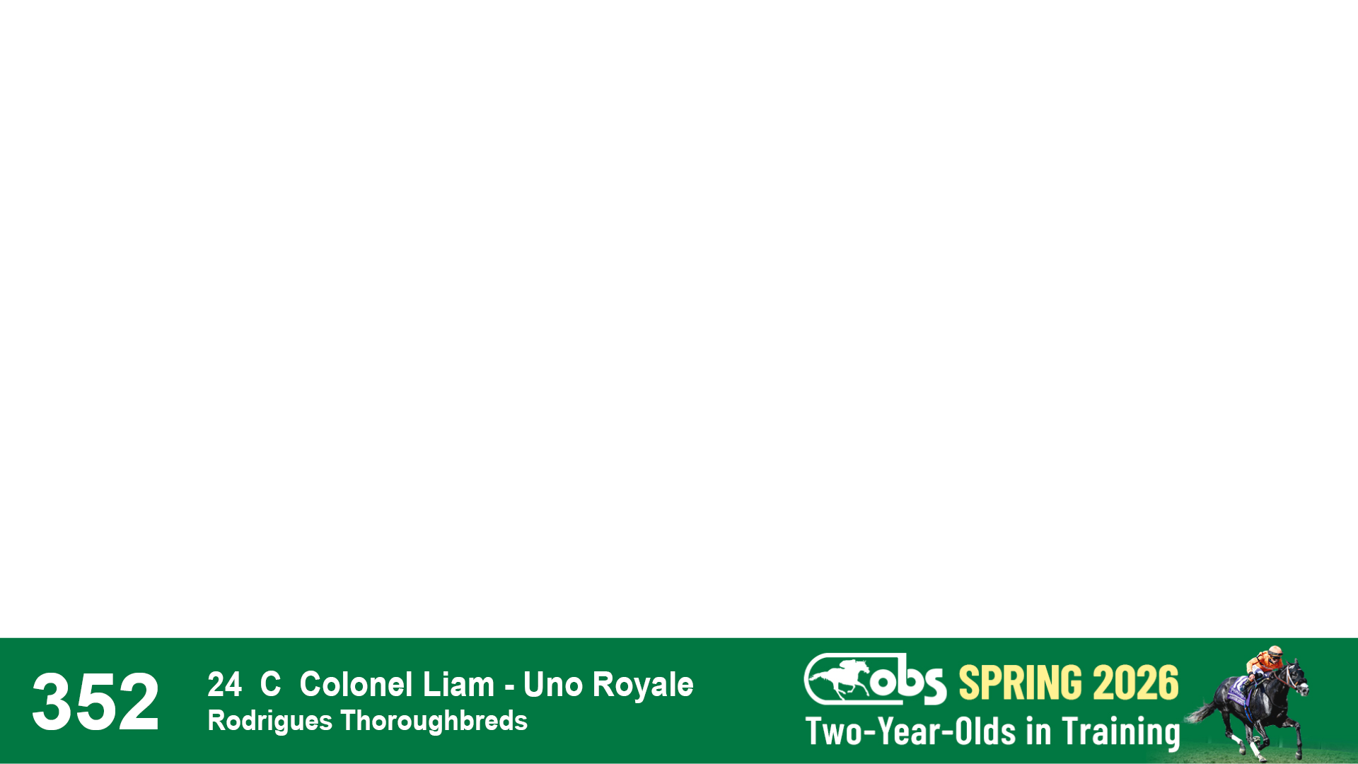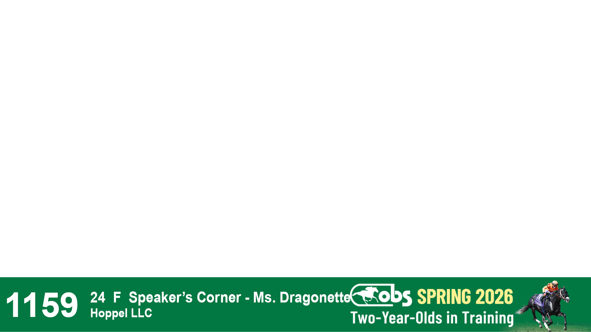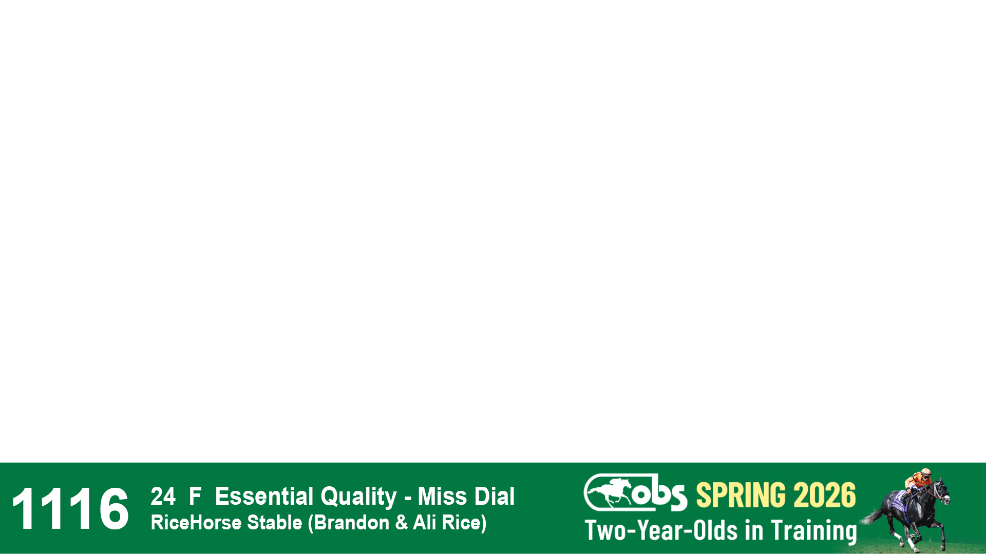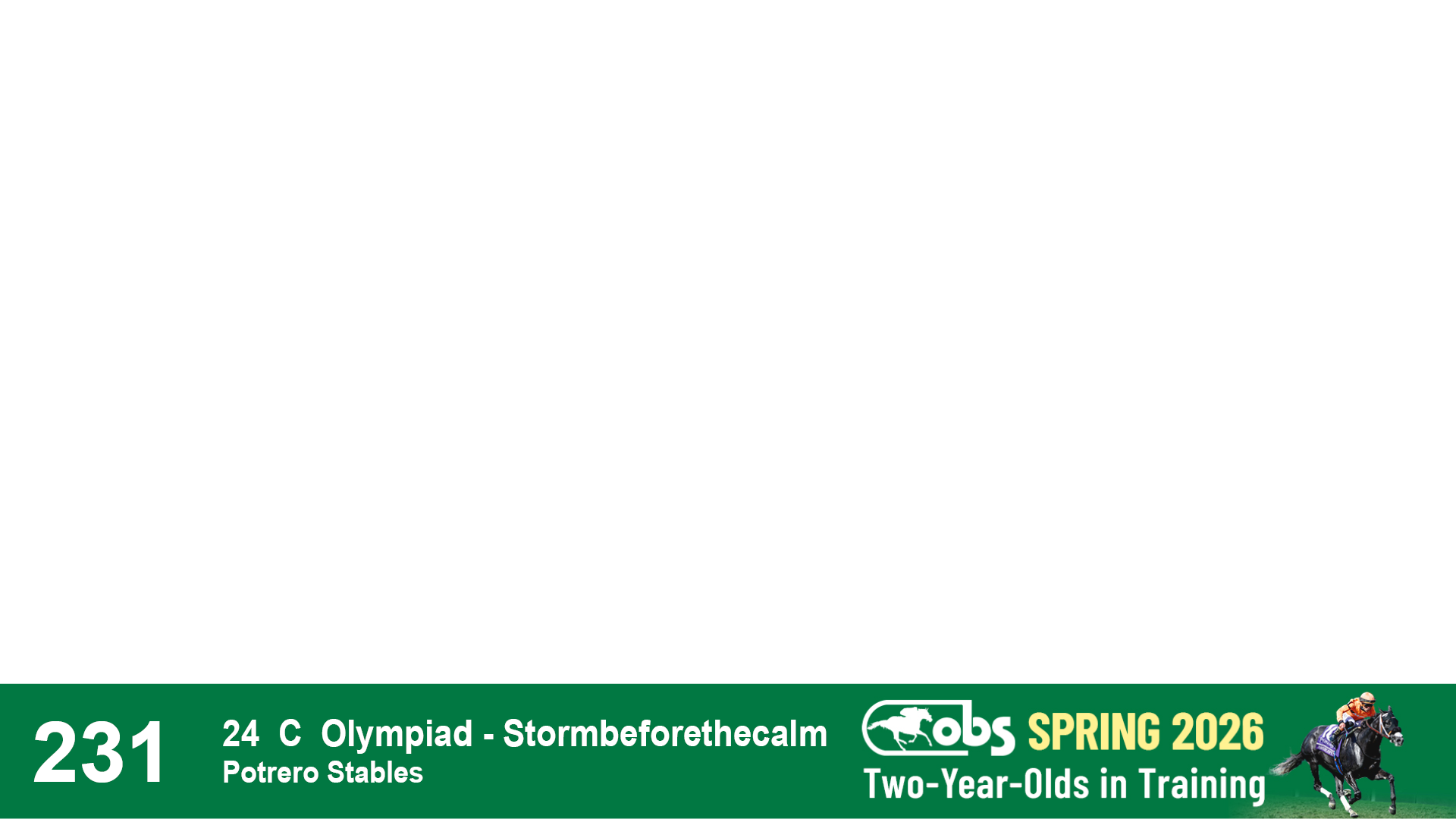 | 1185 | Slate | Lower-Third | 4/9/2024 | C | Olympiad | No Better Terms | Envision Equine, Agent IV | 1188 | 904 | 772 | 229 | |