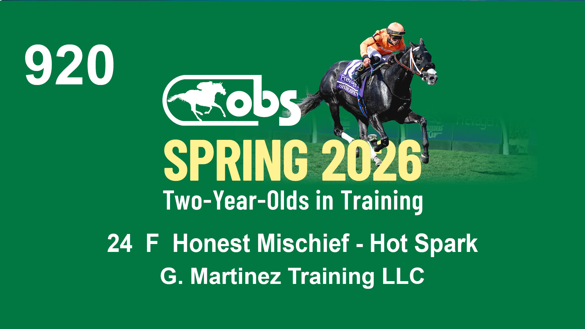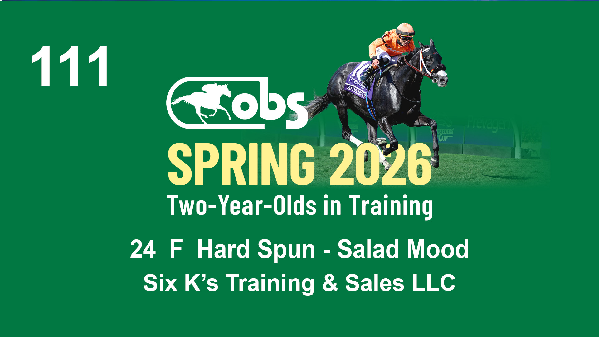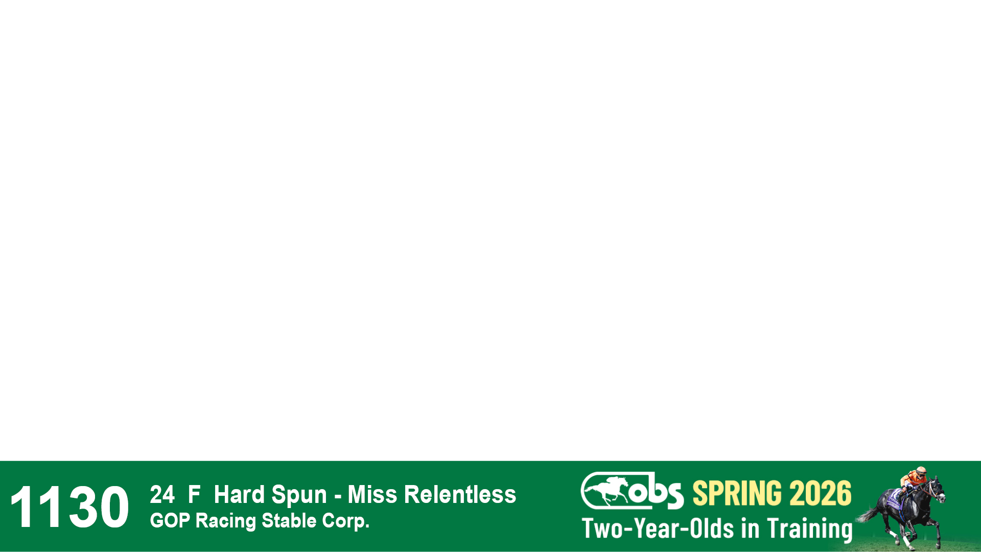 | 1130 | Slate | Lower-Third | 4/27/2024 | F | Hard Spun | Miss Relentless | GOP Racing Stable Corp., Agent II | 1135 | 492 | 717 | 286 | |