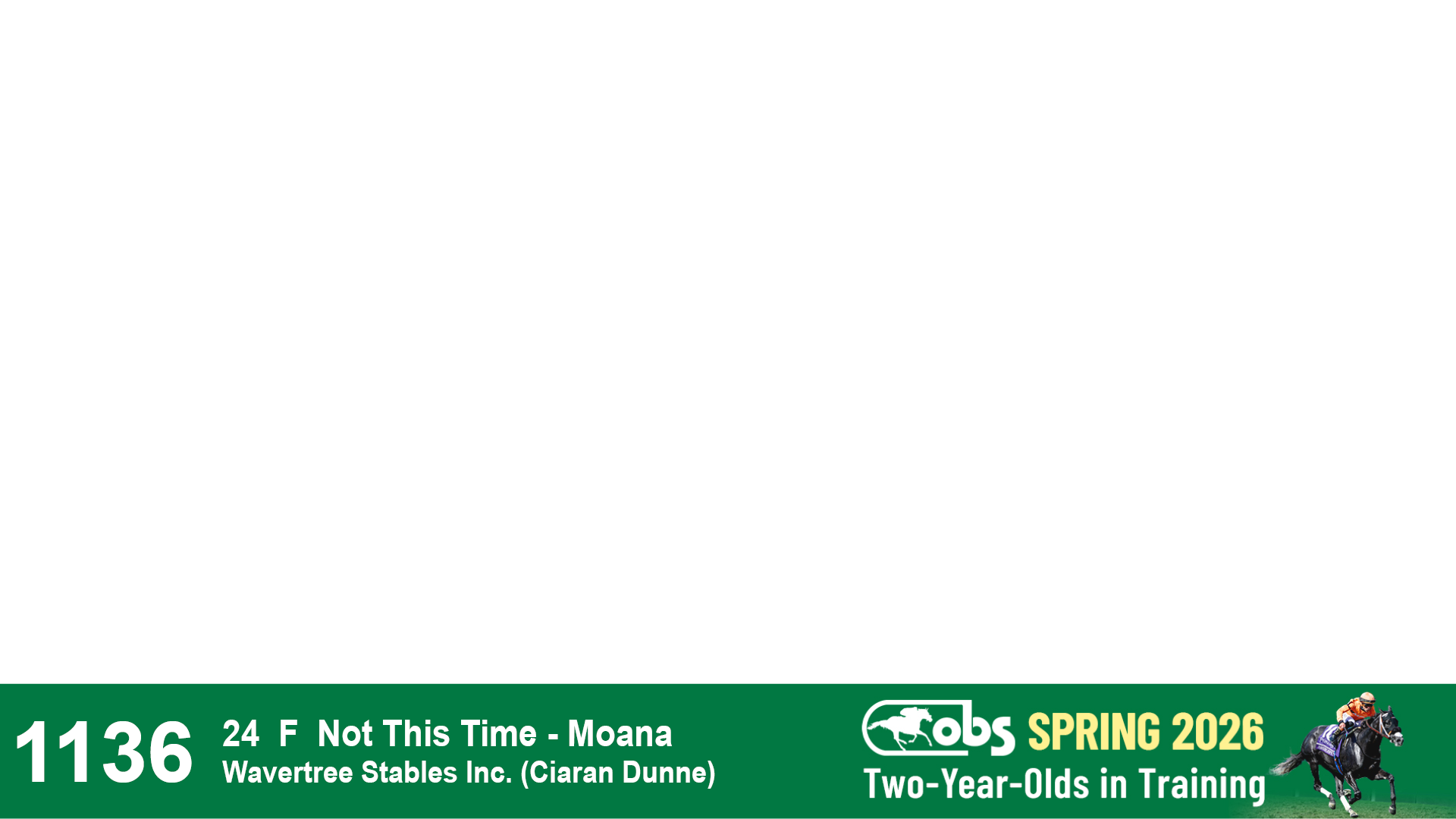 | 1136 | Slate | Lower-Third | 4/14/2024 | F | Not This Time | Moana | Wavertree Stables, Inc. (Ciaran Dunne), Agent XVI | 1141 | 866 | 723 | 1206 | |