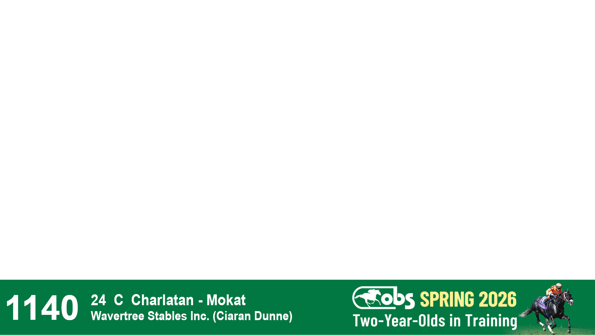 | 1140 | Slate | Lower-Third | 5/5/2024 | C | Charlatan | Mokat | Wavertree Stables, Inc. (Ciaran Dunne), Agent VII | 1145 | 111 | 727 | 1196 | |