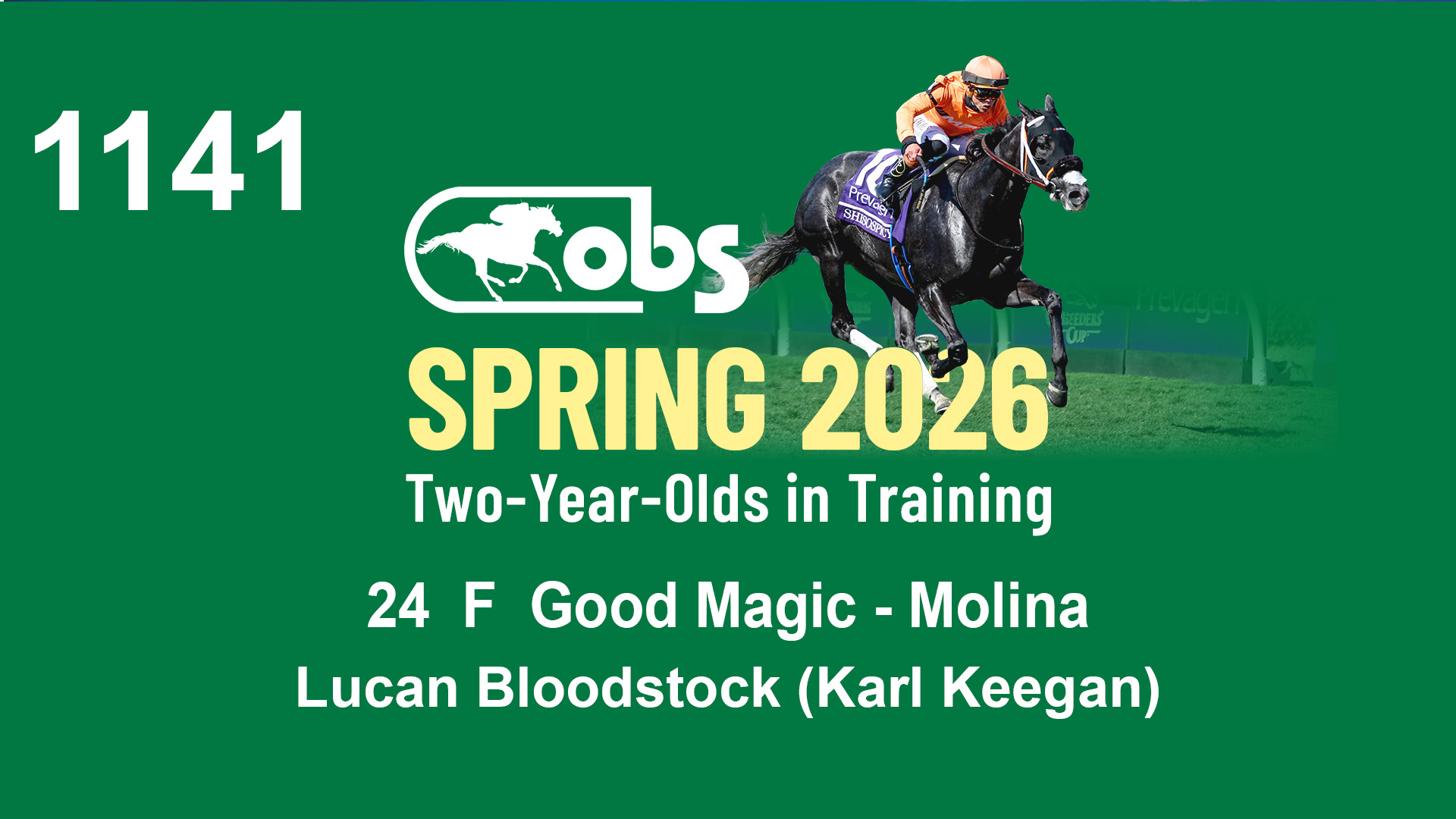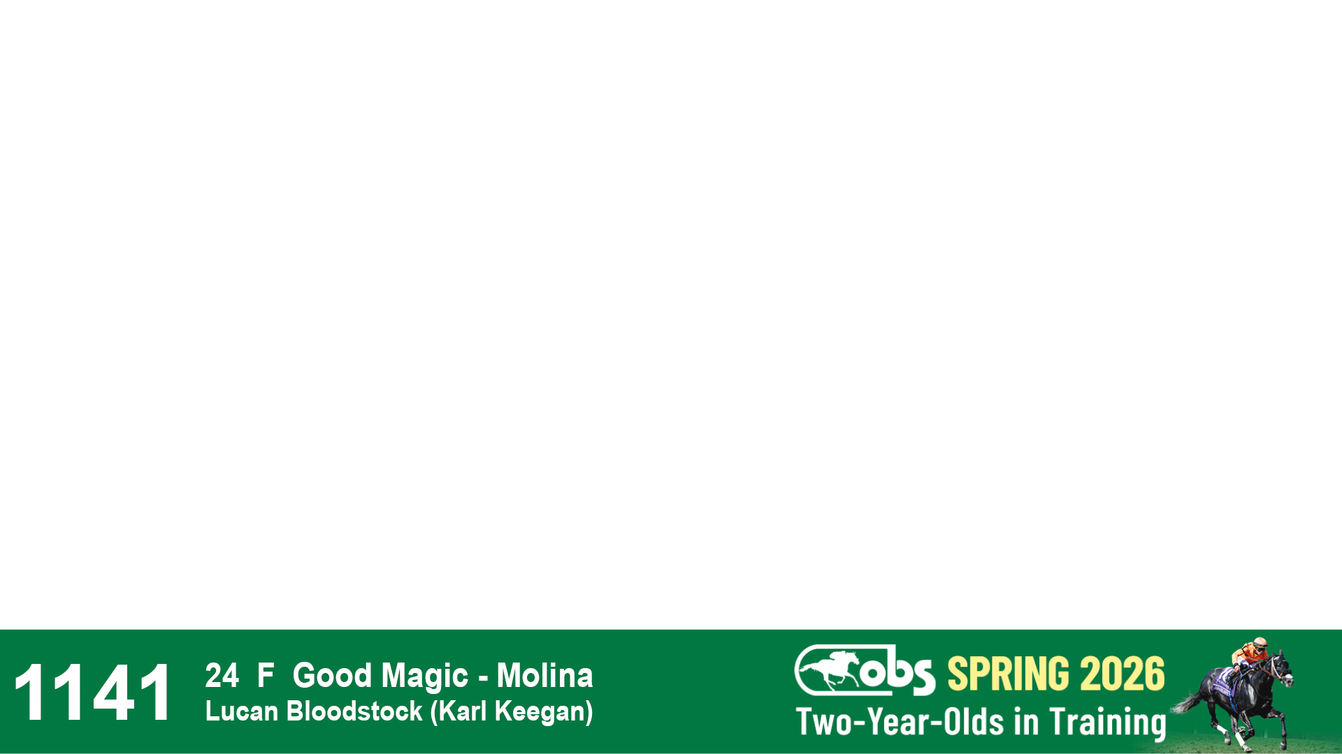| 1141 | Slate | Lower-Third | 1/13/2024 | F | Good Magic | Molina | Lucan Bloodstock (Karl Keegan), Agent | 1146 | 462 | 728 | 569 | |