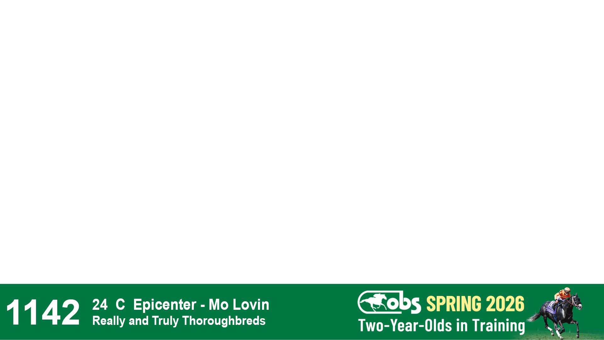 | 1142 | Slate | Lower-Third | 3/28/2024 | C | Epicenter | Mo Lovin | Really and Truly Thoroughbreds | 1147 | 341 | 729 | 878 | |
