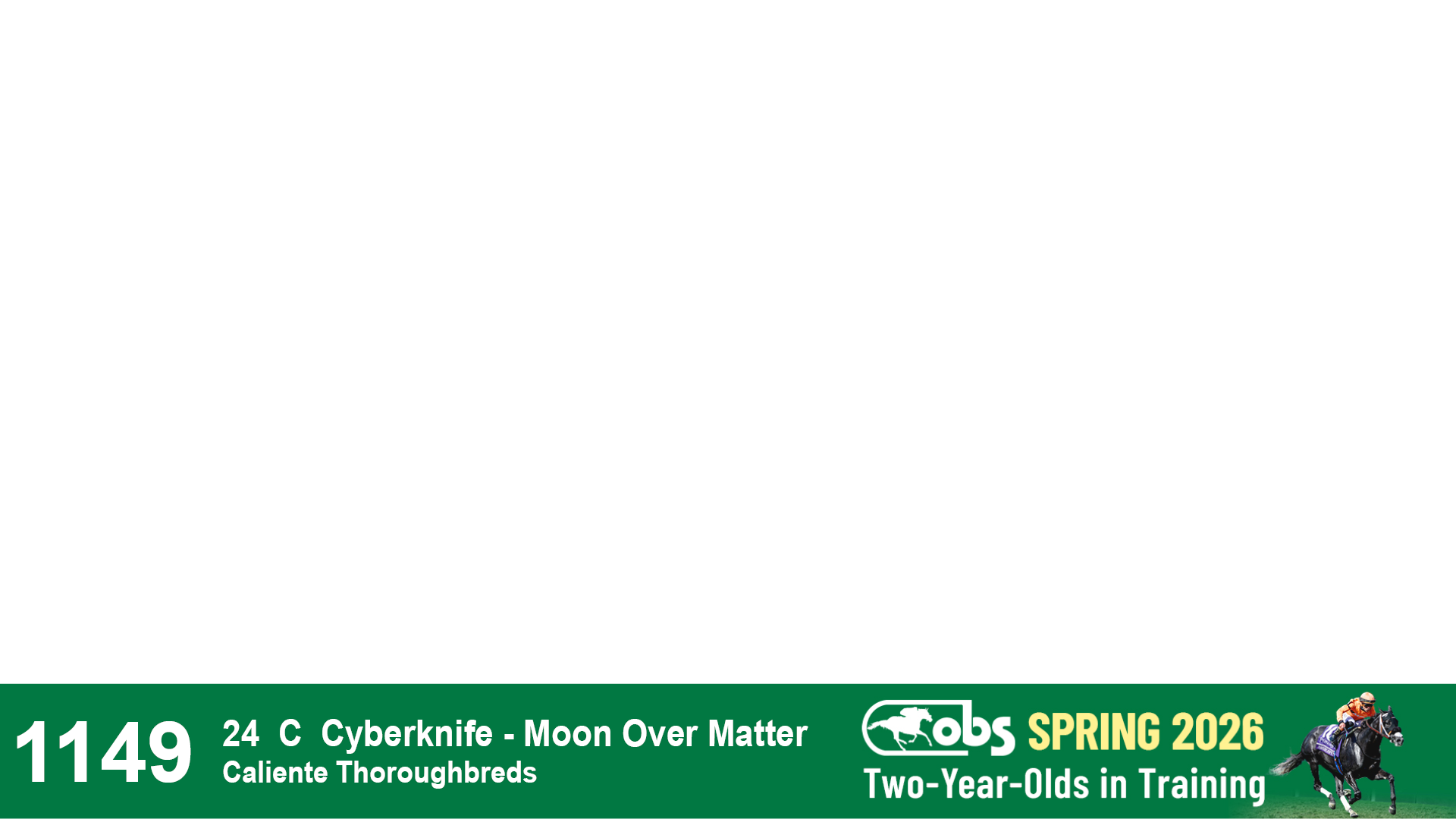 | 1149 | Slate | Lower-Third | 4/28/2024 | C | Cyberknife | Moon Over Matter | Caliente Thoroughbreds, Agent III | 1154 | 236 | 736 | 91 | |