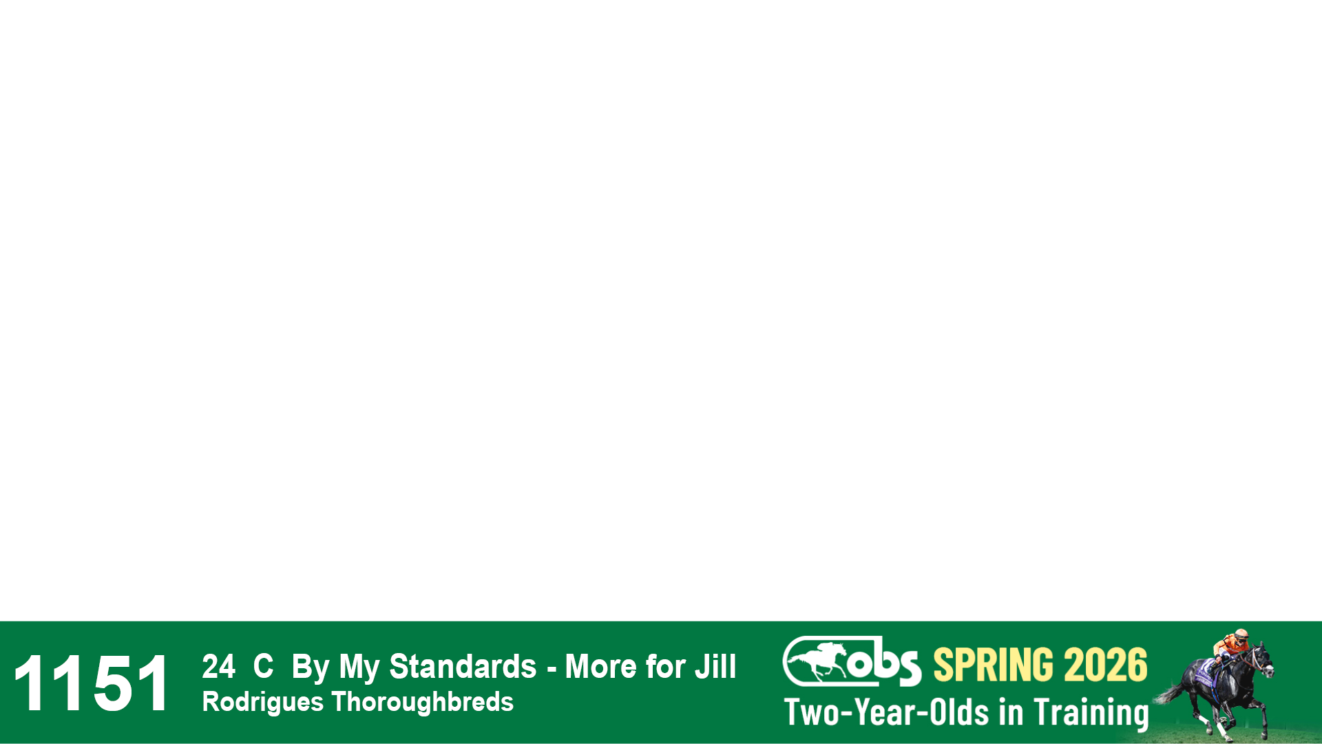 | 1151 | Slate | Lower-Third | 4/4/2024 | C | By My Standards | More for Jill | Rodrigues Thoroughbreds, Agent | 1156 | 73 | 738 | 908 | |