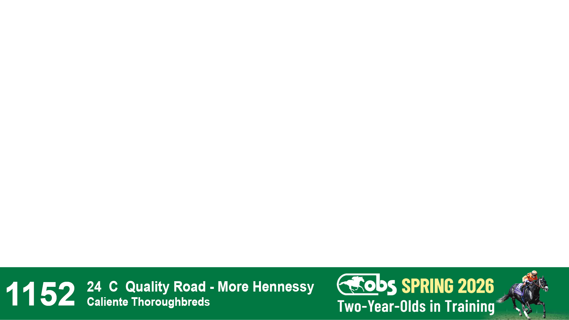 | 1152 | Slate | Lower-Third | 4/5/2024 | C | Quality Road | More Hennessy | Caliente Thoroughbreds, Agent I | 1157 | 973 | 739 | 84 | |