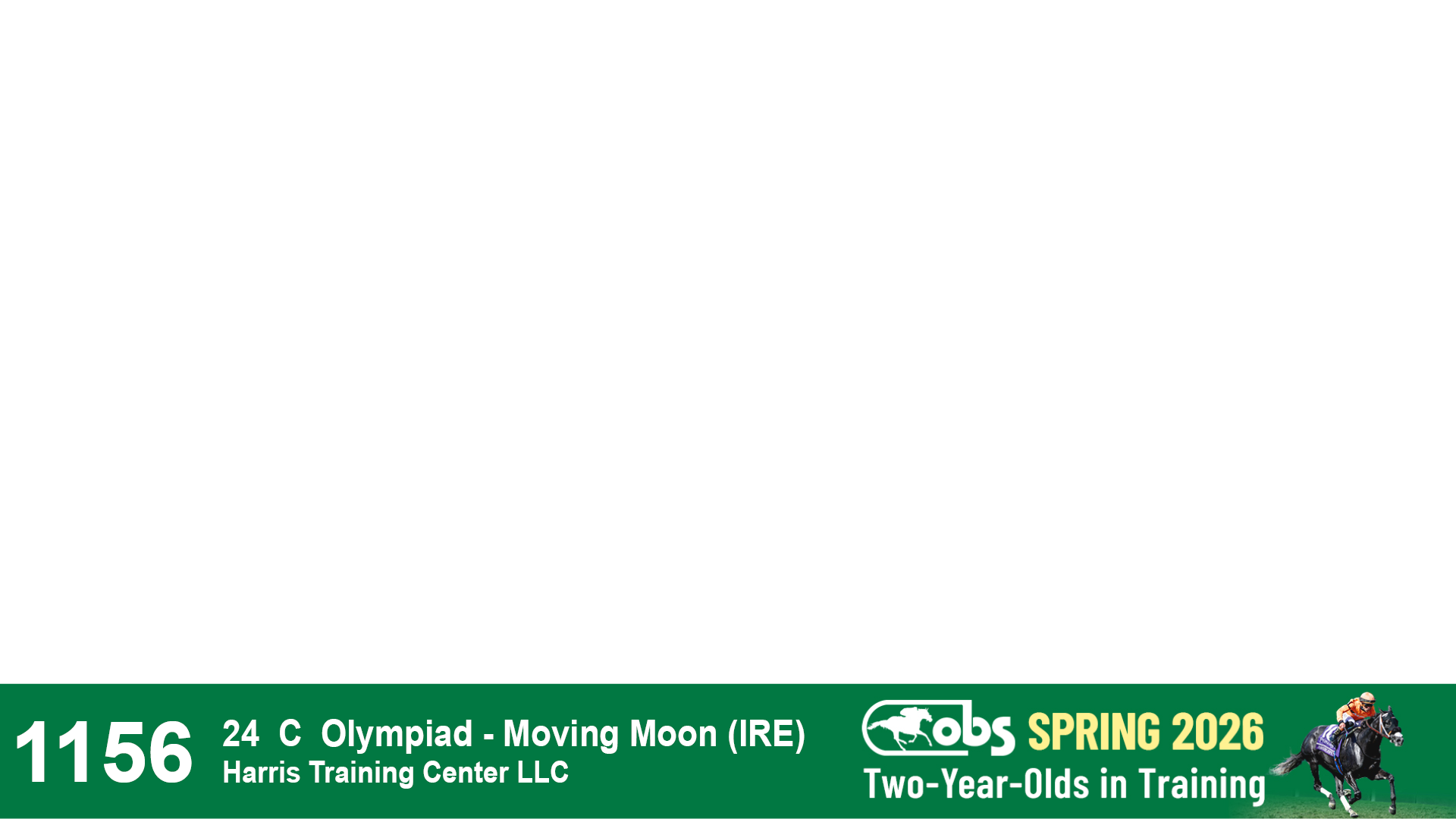 | 1156 | Slate | Lower-Third | 4/15/2024 | C | Olympiad | Moving Moon (IRE) | Harris Training Center LLC, Agent I | 1161 | 902 | 743 | 360 | |