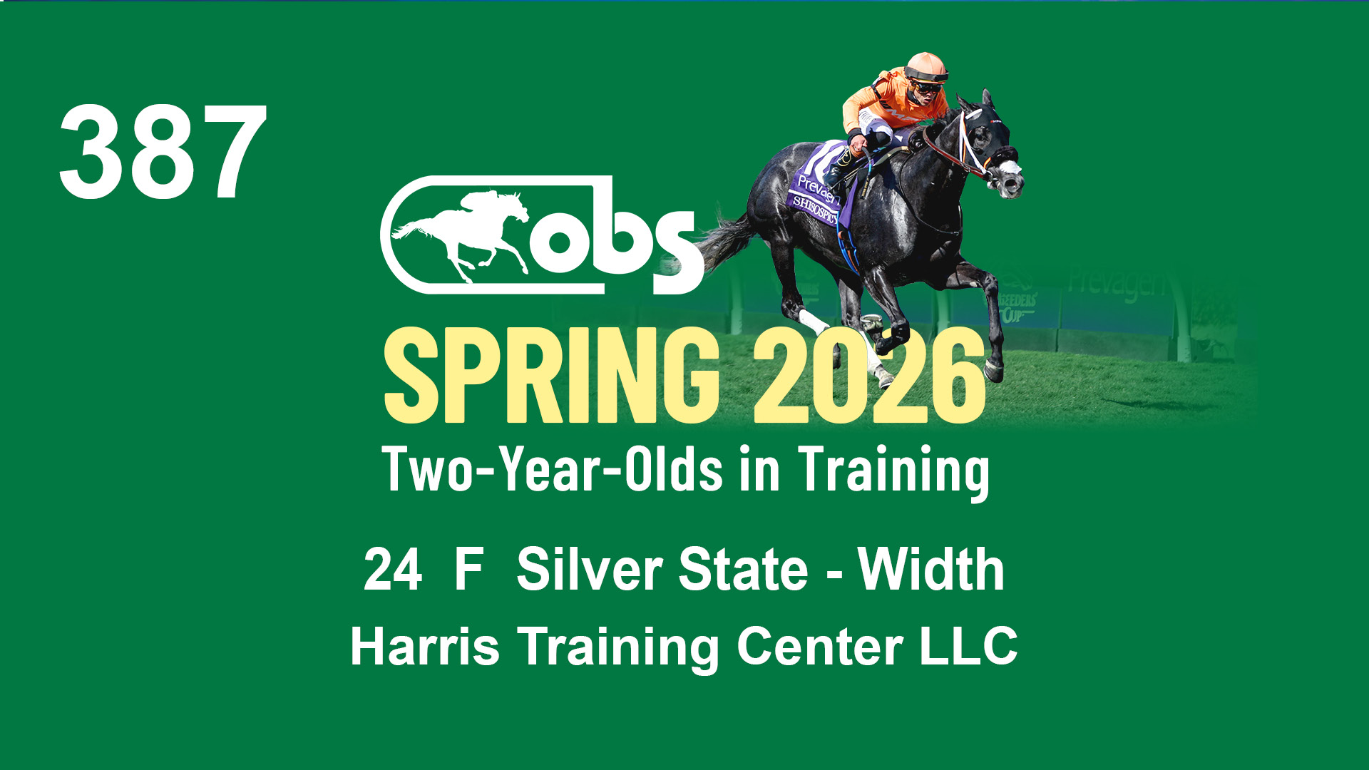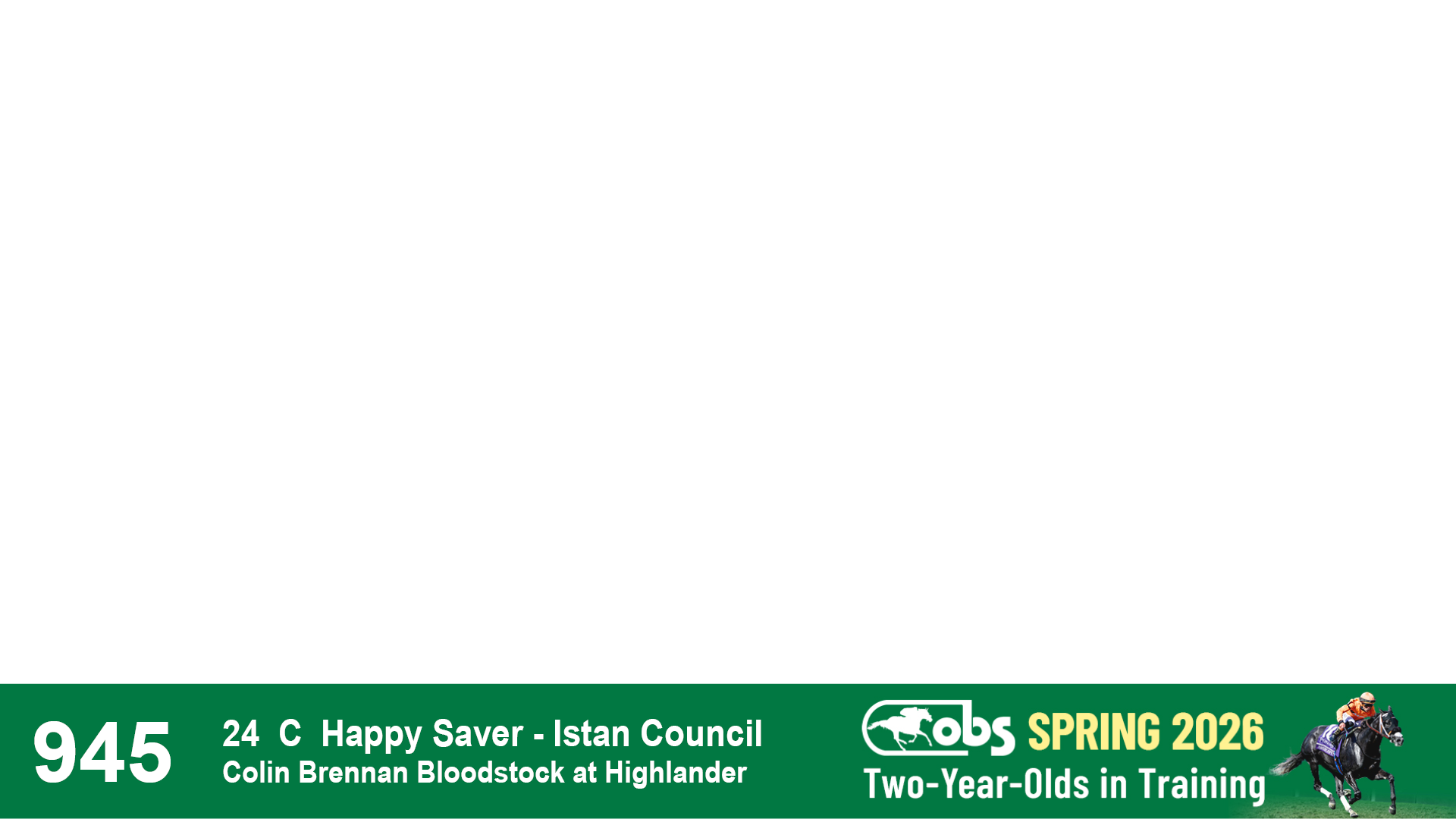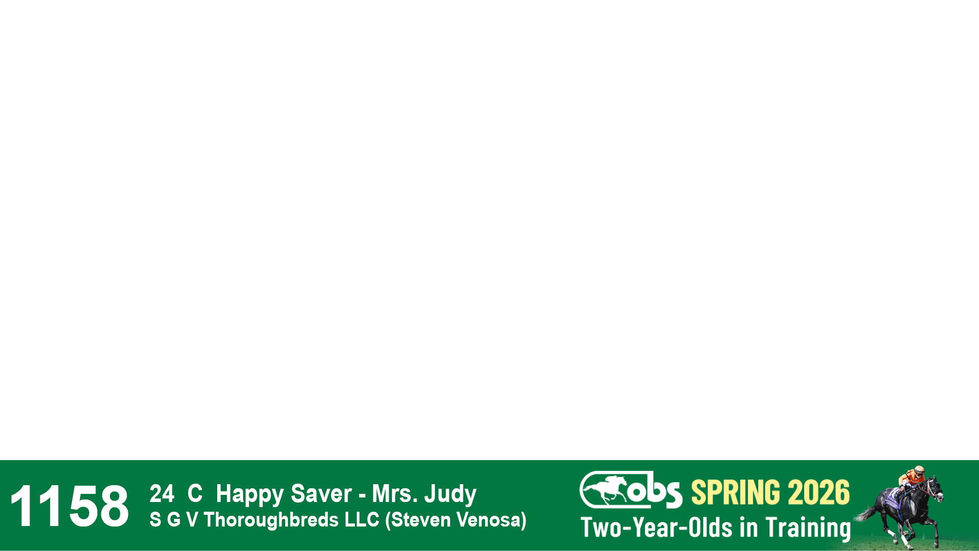 | 1158 | Slate | Lower-Third | 4/29/2024 | C | Happy Saver | Mrs. Judy | S G V Thoroughbreds LLC (Steven Venosa), Agent | 1163 | 479 | 745 | 1001 | |