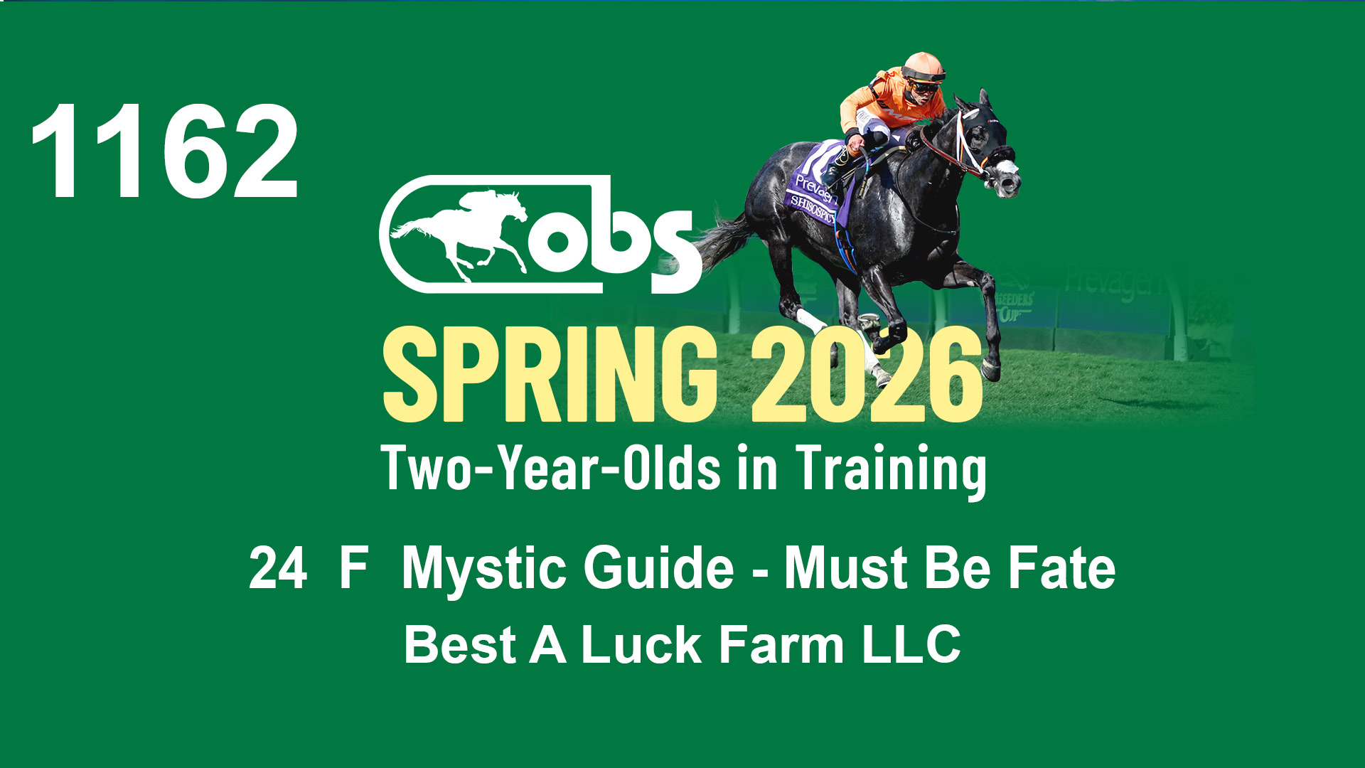 | 1162 | Slate | Lower-Third | 3/12/2024 | F | Mystic Guide | Must Be Fate | Best A Luck Farm LLC | 1167 | 832 | 749 | 35 | |