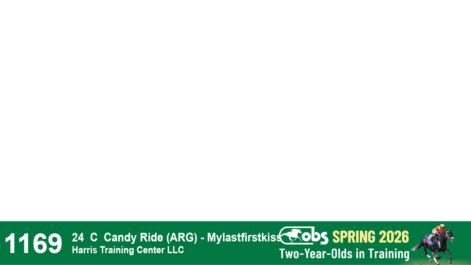 | 1169 | Slate | Lower-Third | 5/9/2024 | C | Candy Ride (ARG) | Mylastfirstkiss | Harris Training Center LLC, Agent V | 1173 | 84 | 756 | 374 | |